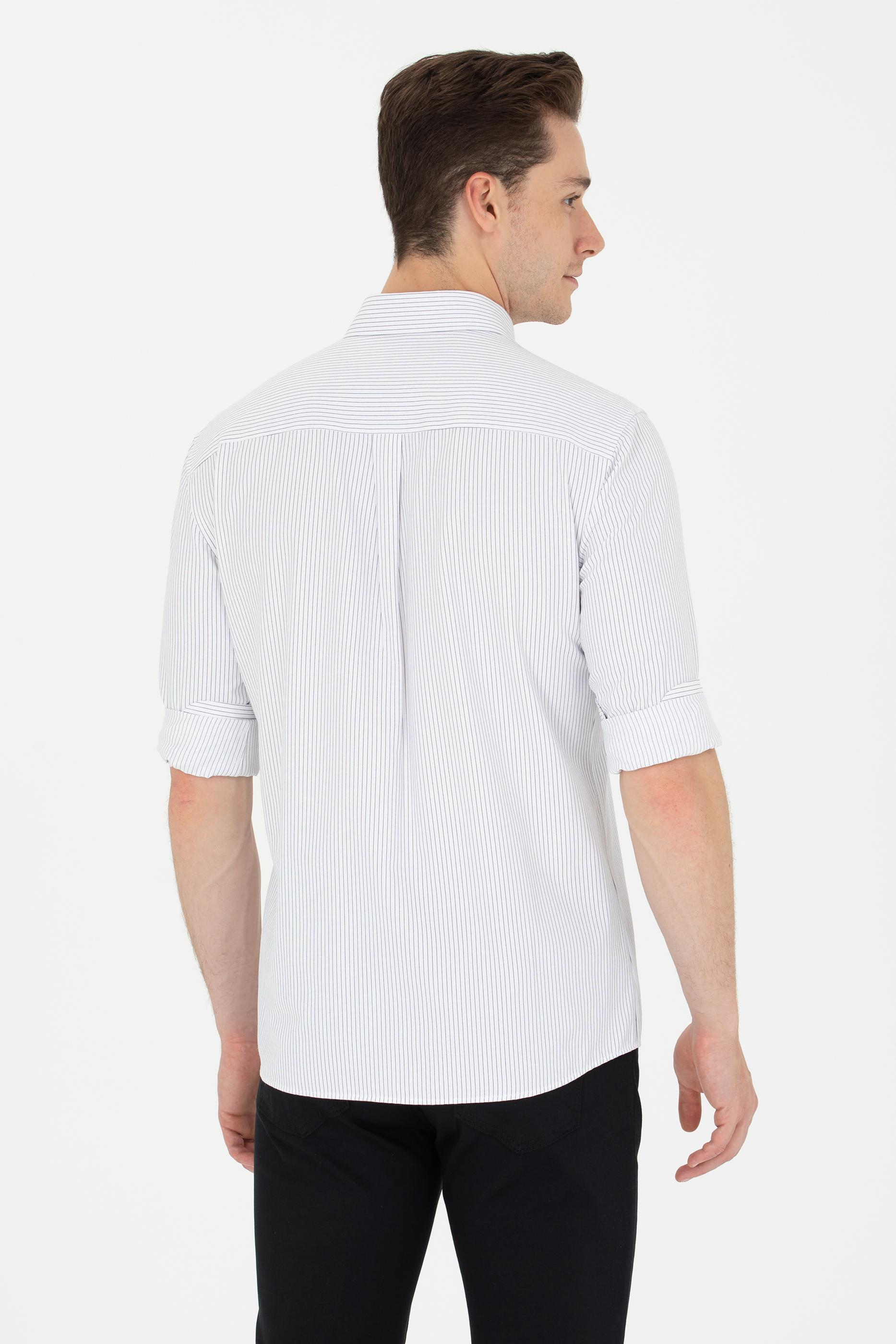 Mikro desenleri sayesinde modern şehir kombinlerine rahatlıkla entegre edebileceğiniz slim fit uzun kollu erkek gömlek modelimiz vücudunuzun formda görüntüsünü destekleyerek hayran bakışları üzerinize çeker.
