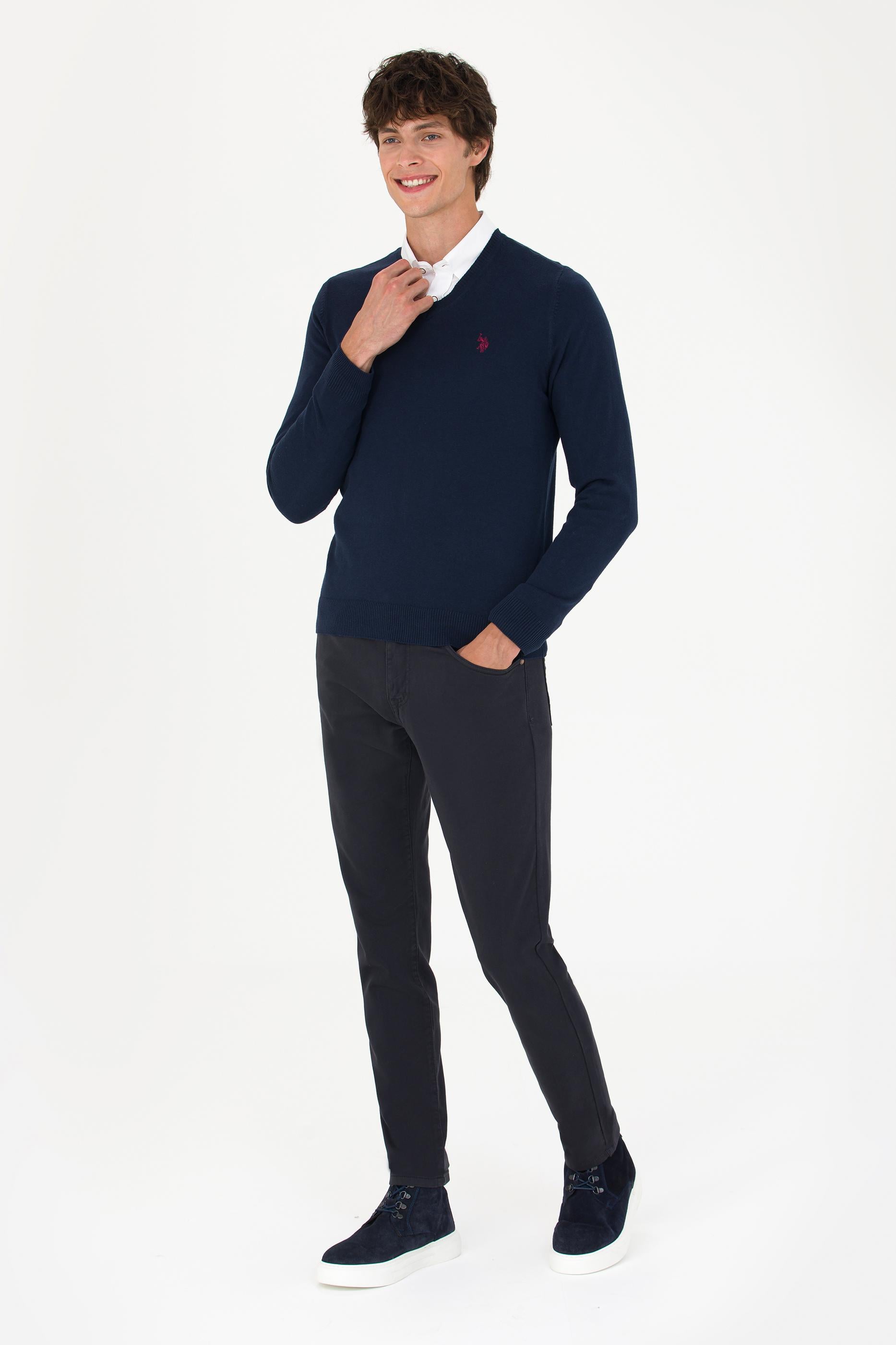 Dilerseniz tek başına dilerseniz gömleklerle birlikte kombinleyebileceğiniz V yaka erkek triko kazak modelimiz, vücudu hafifçe saran slim fit kesimle üretilmektedir. Yumuşacık ve esnek forma sahip, cildin nem dengesini korumaya yardımcı olan %100 pamuk basic erkek triko kazak modelimiz sadece Online’a özel satıştadır.