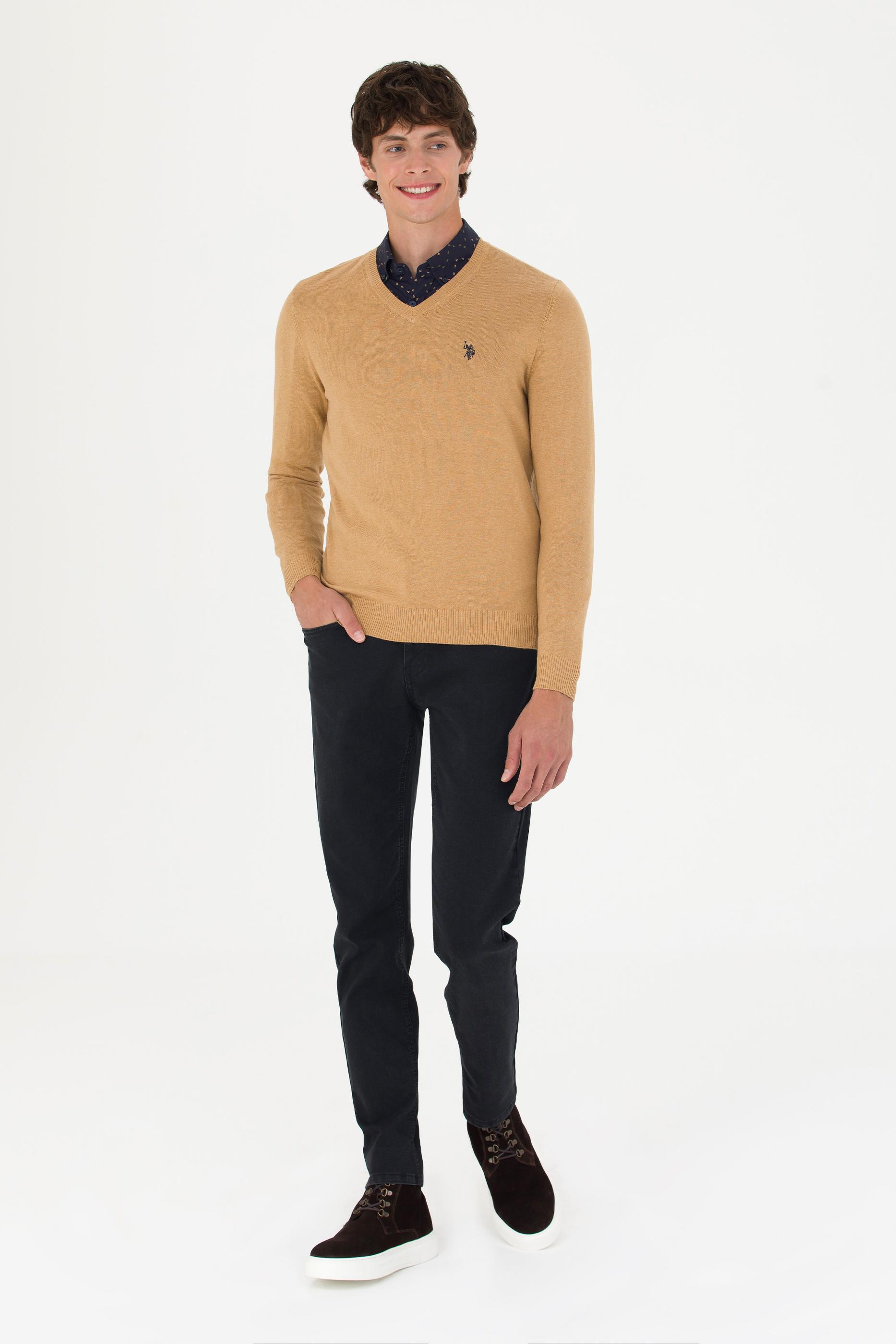 Dilerseniz tek başına dilerseniz gömleklerle birlikte kombinleyebileceğiniz V yaka erkek triko kazak modelimiz, vücudu hafifçe saran slim fit kesimle üretilmektedir.