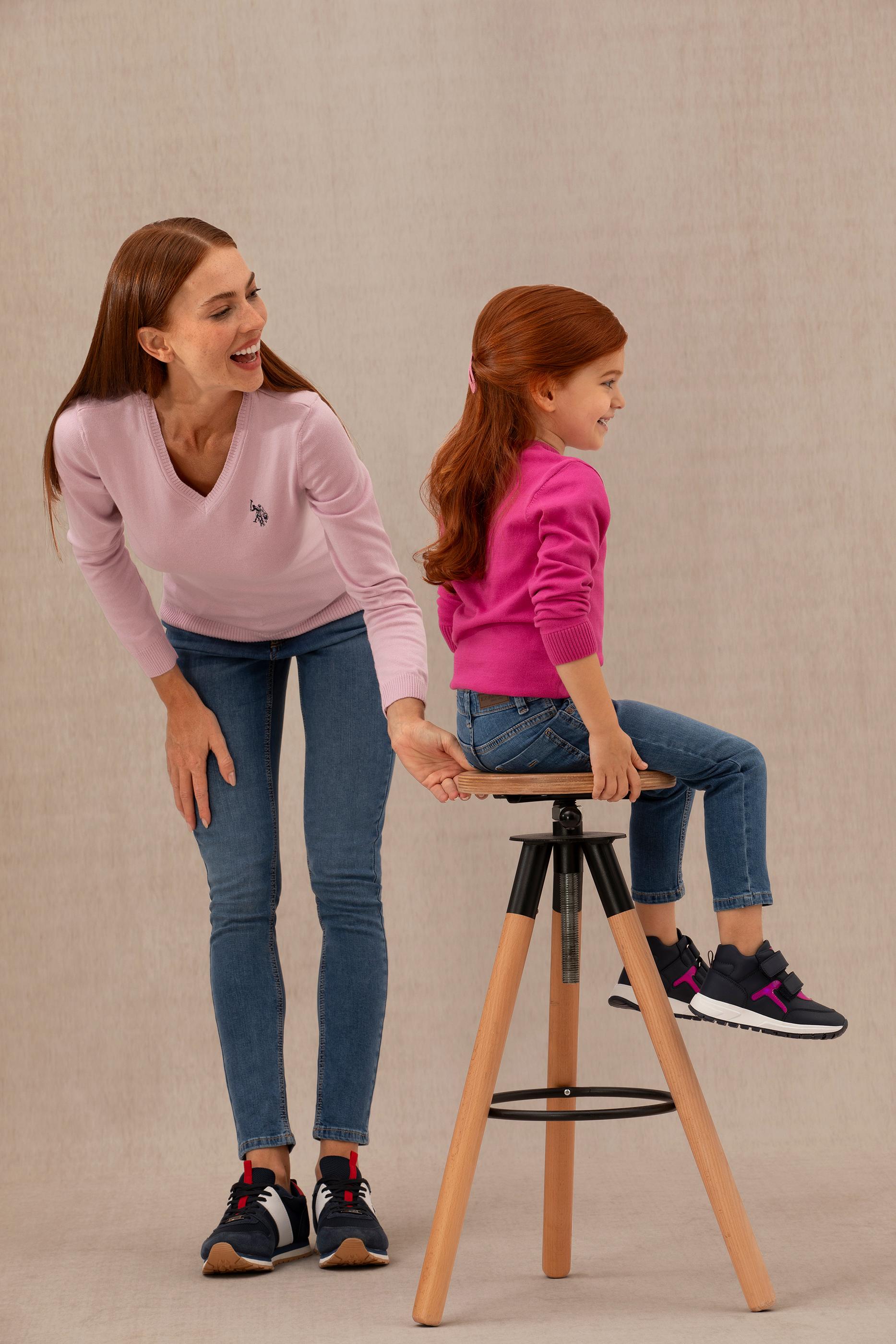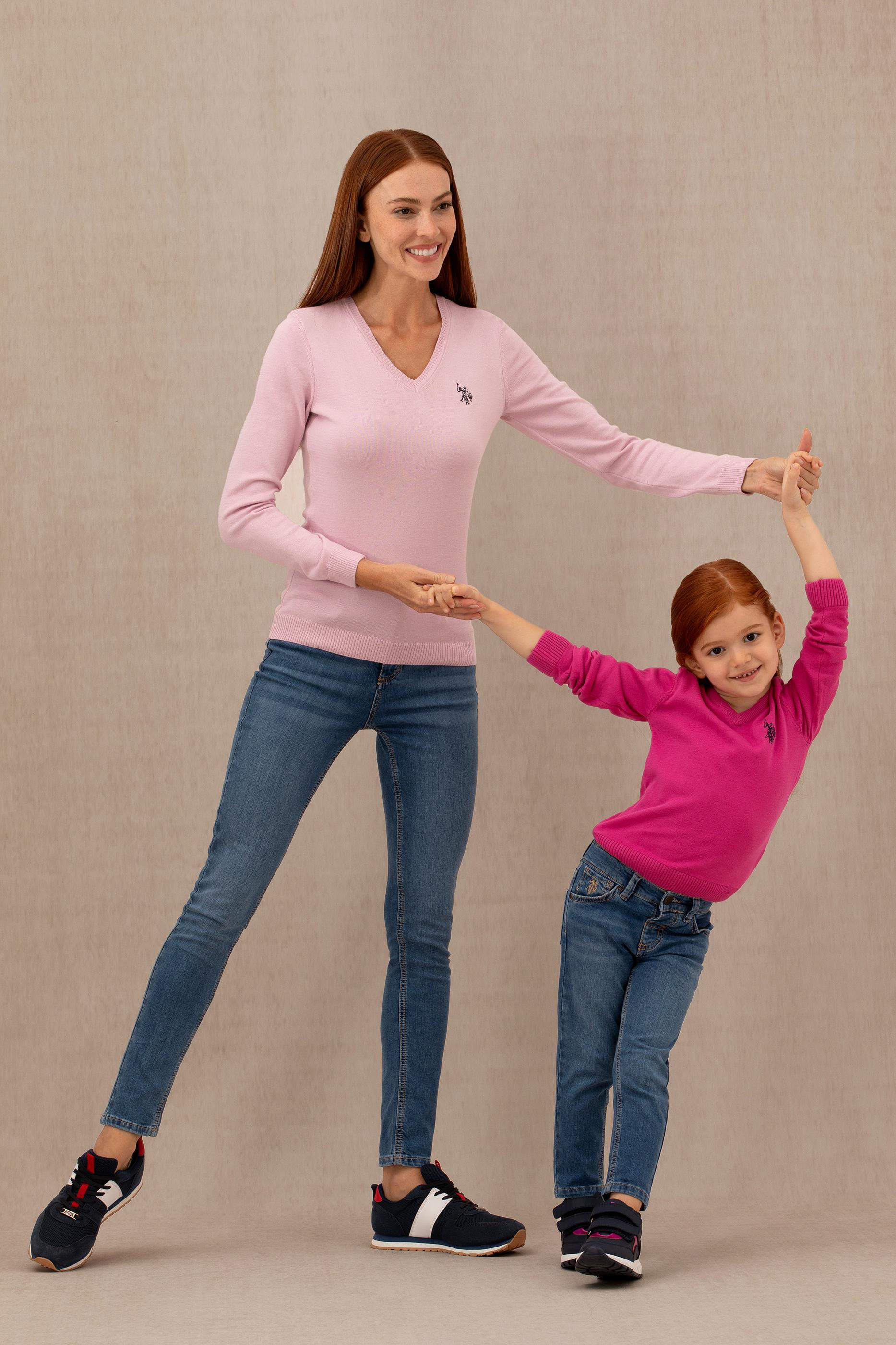 Kız Çocuk Menekşe Basic V Yaka Kazak