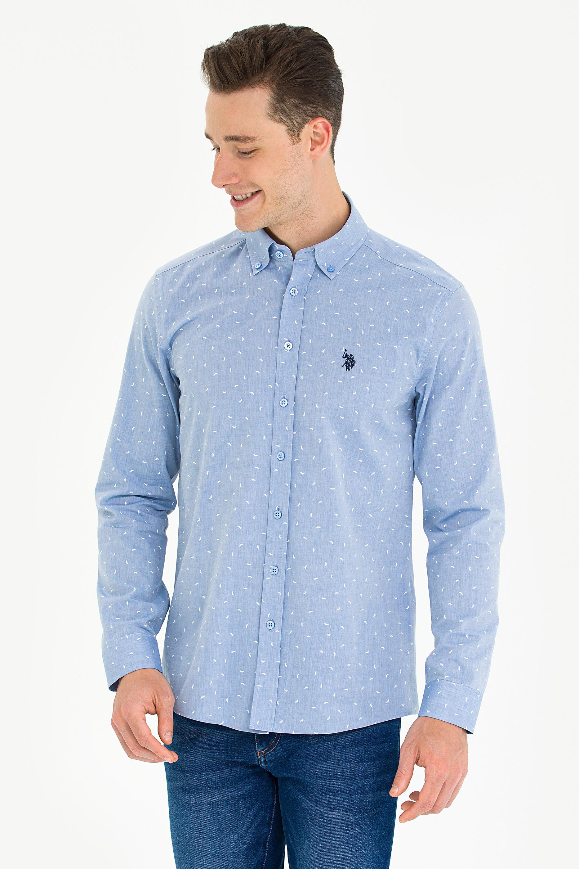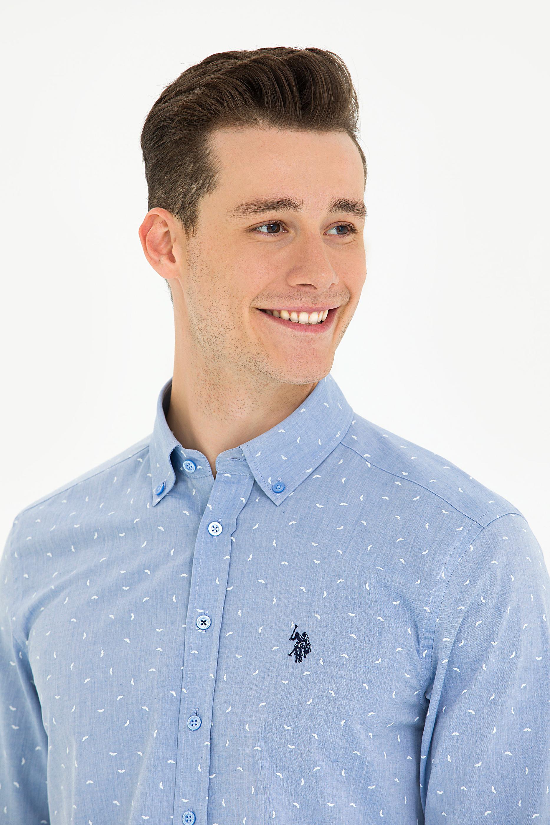 Erkek Mavi Uzun Kollu Gömlek