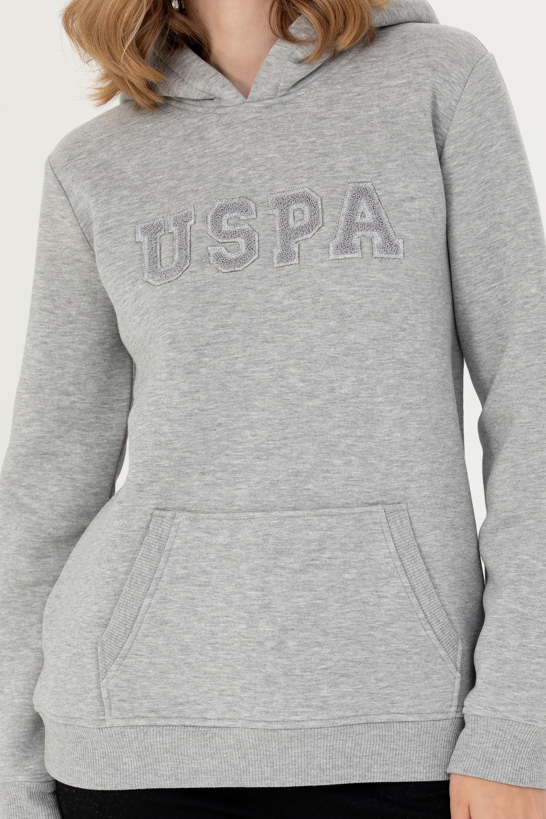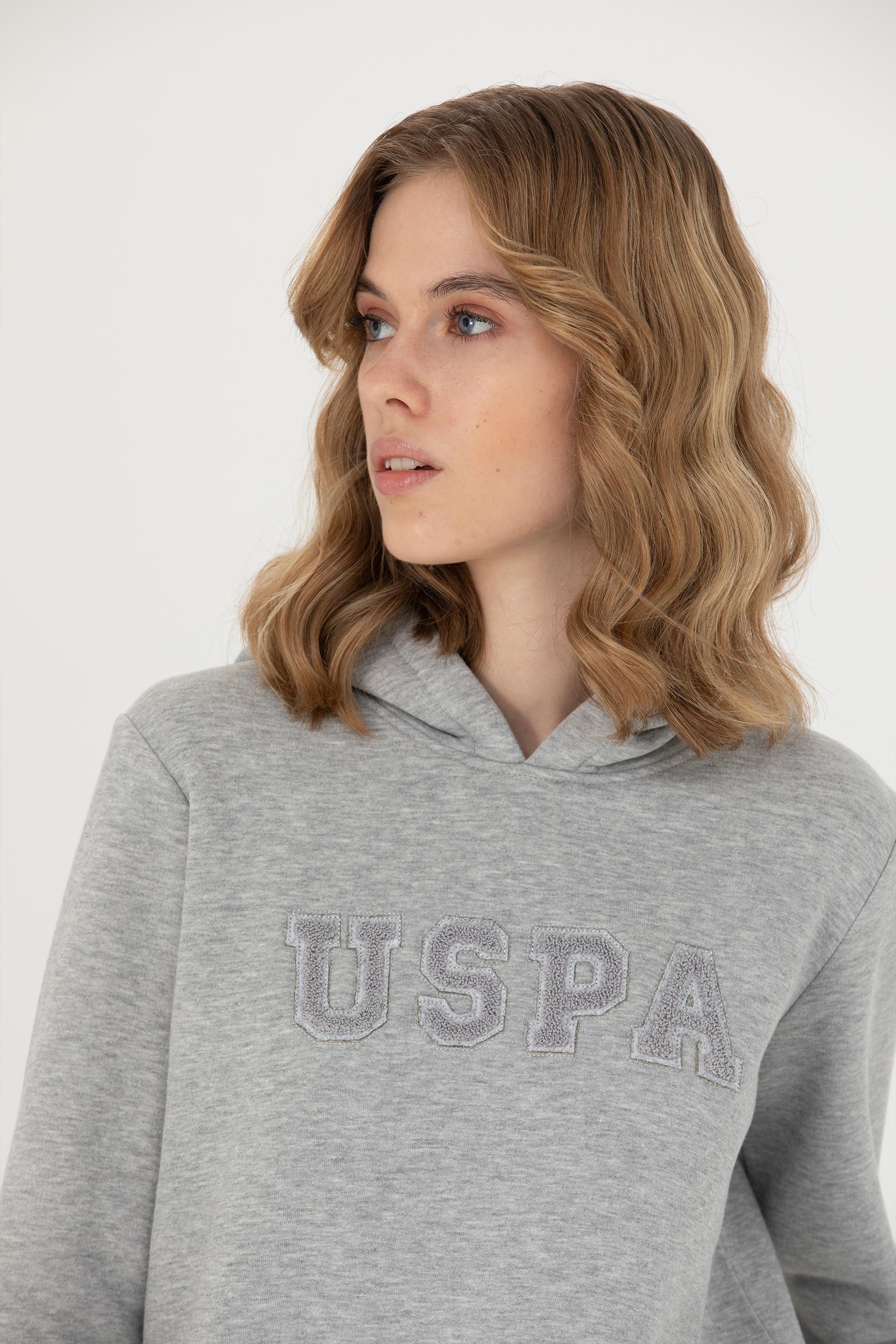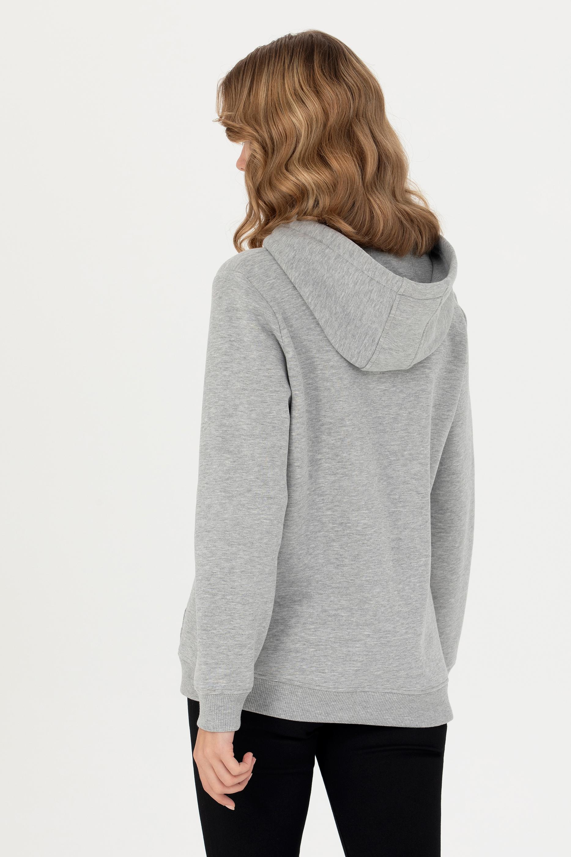 - Kadın Gri Melanj Kapüşonlu Basic Sweatshirt