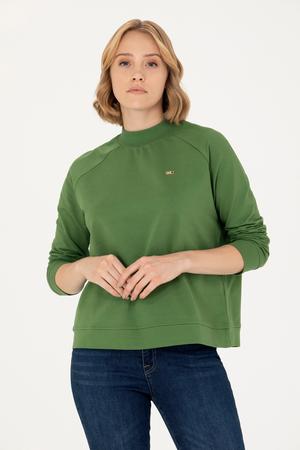 Kadın Yeşil Bisiklet Yaka Sweatshirt