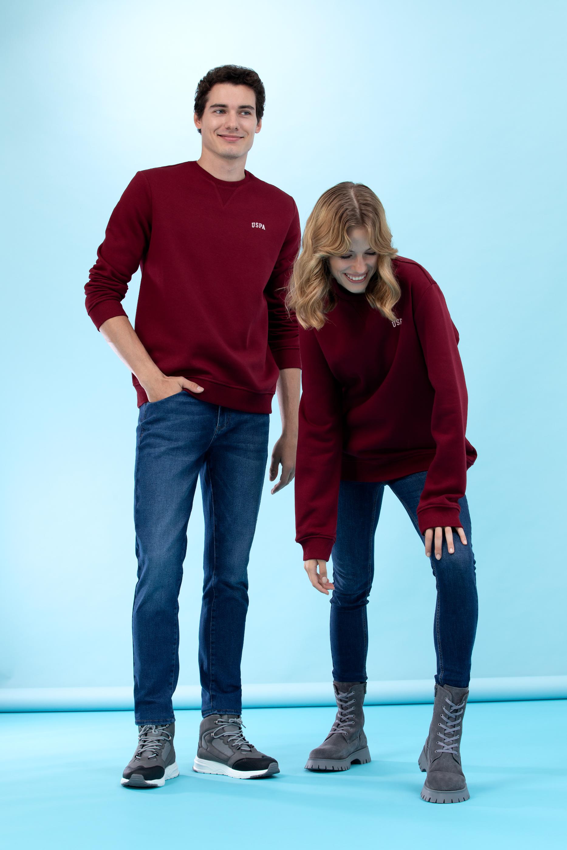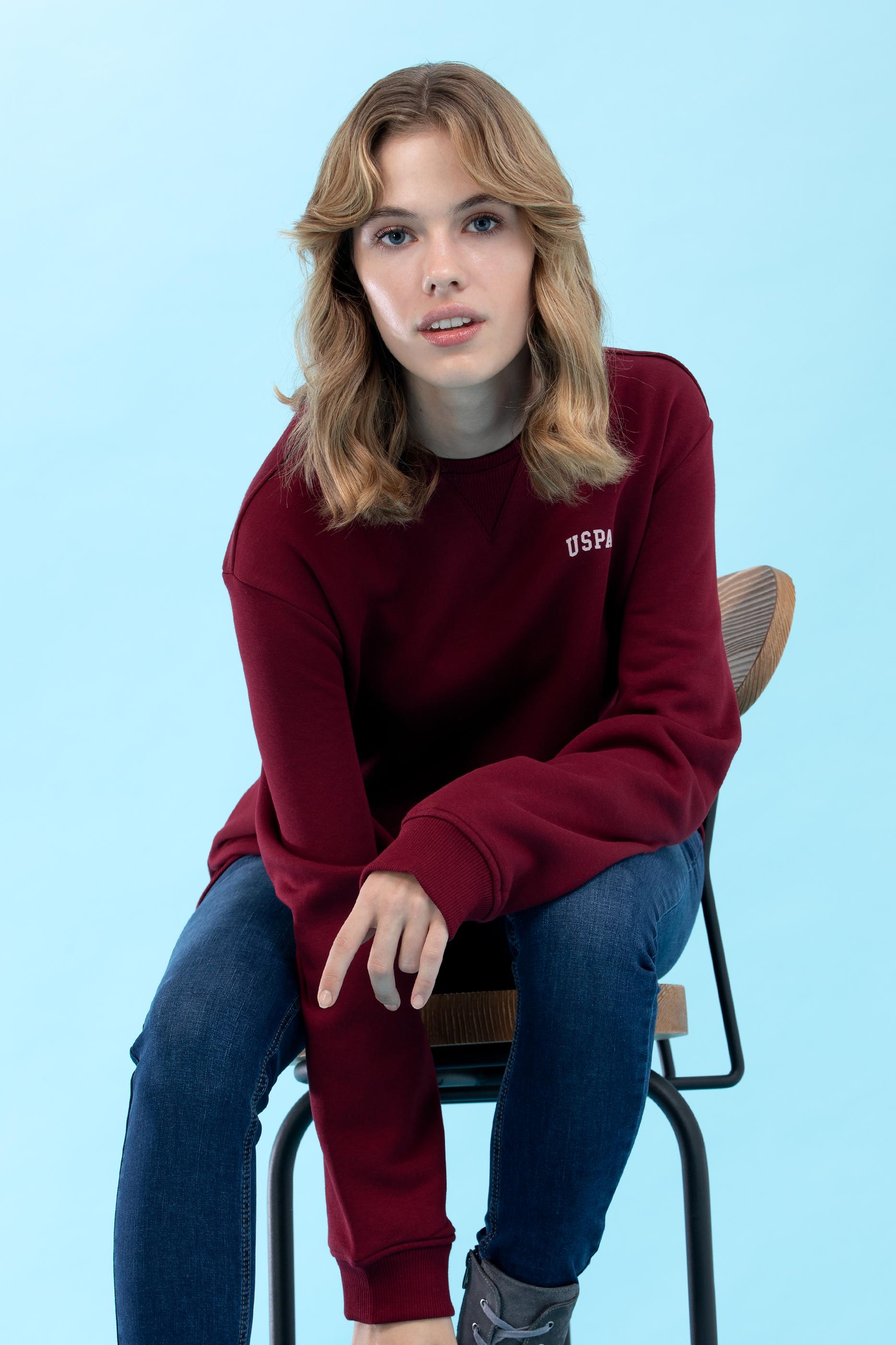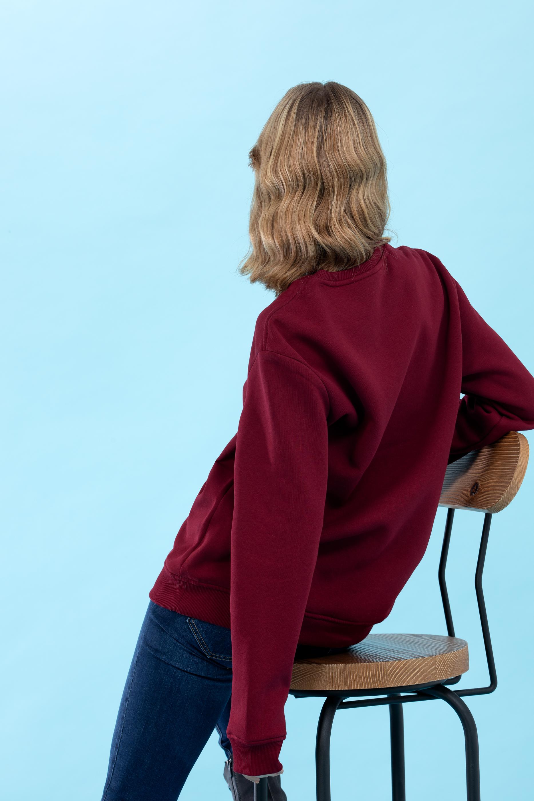 - Bordo Bisiklet Yaka Basic Sweatshirt