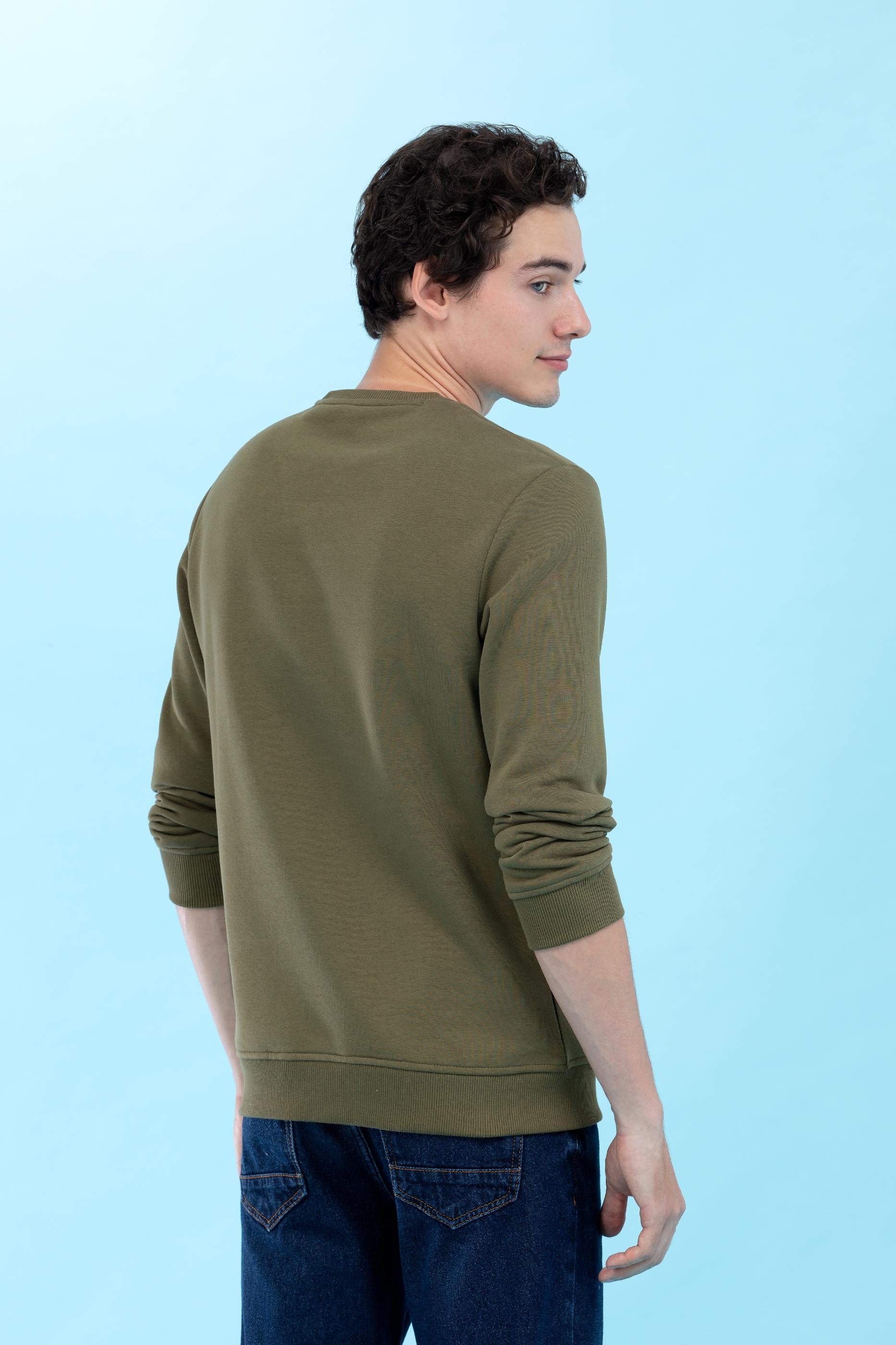 - Haki Bisiklet Yaka Basic Sweatshirt