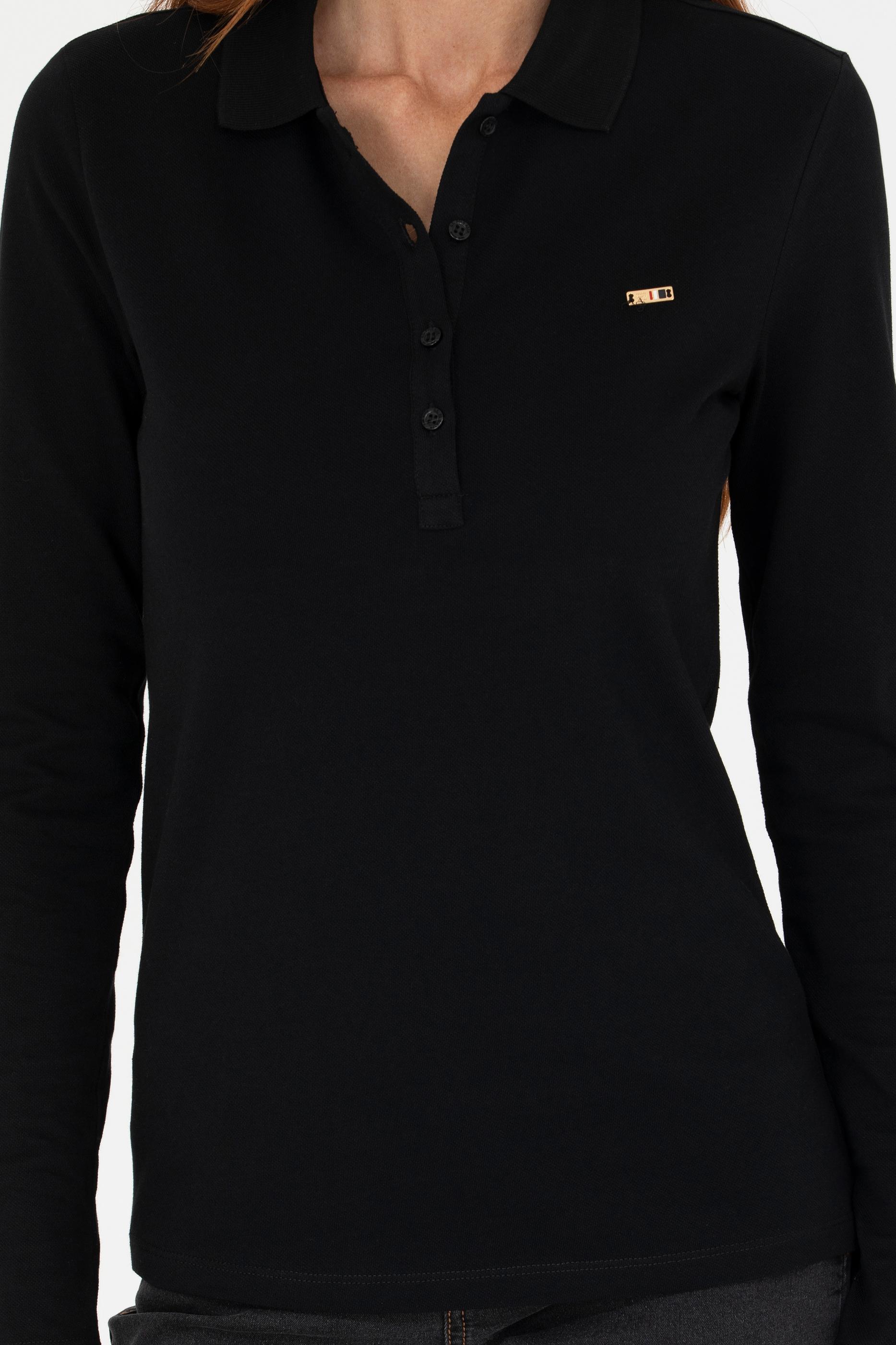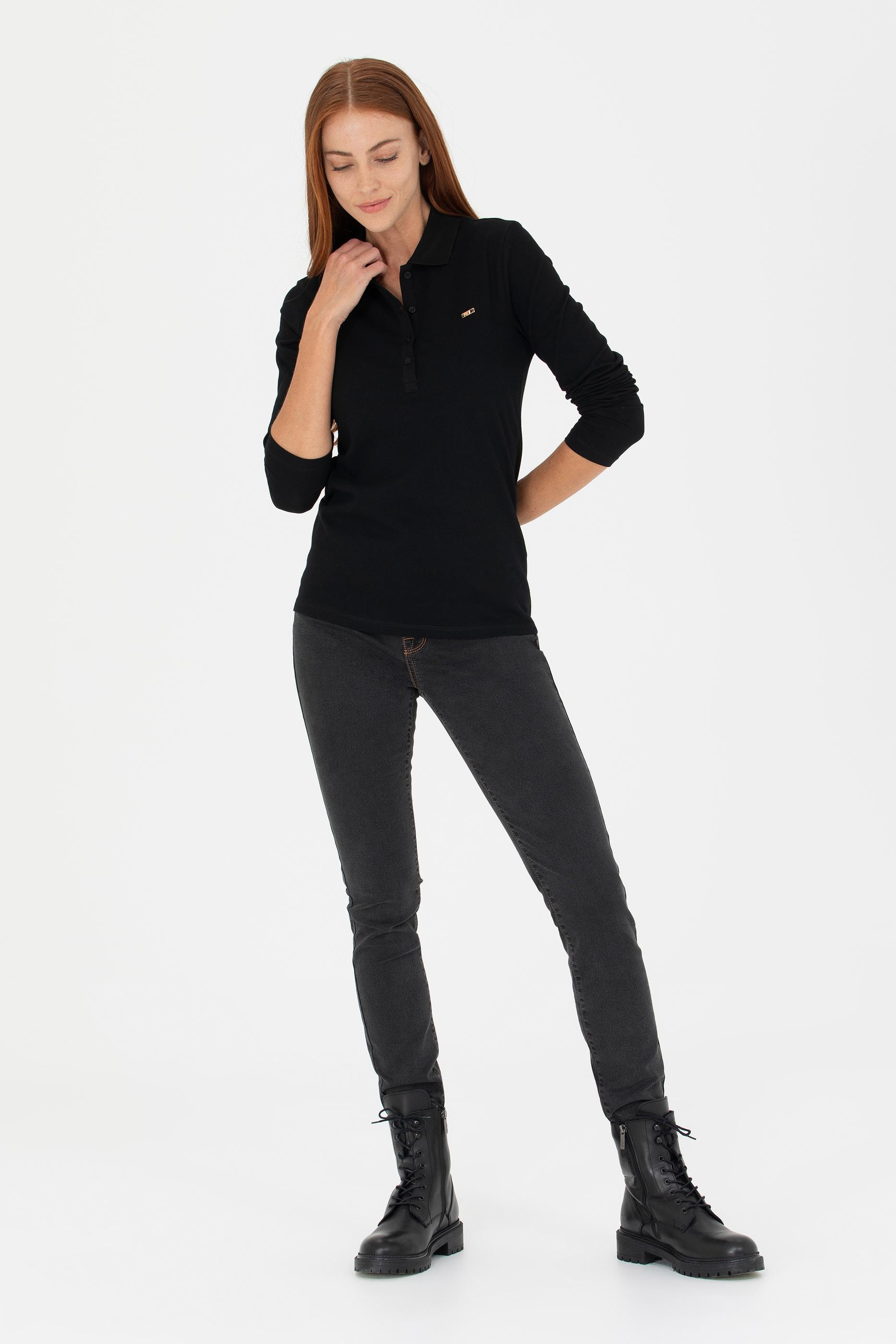 Kadın Siyah Basic Polo Yaka Sweatshirt