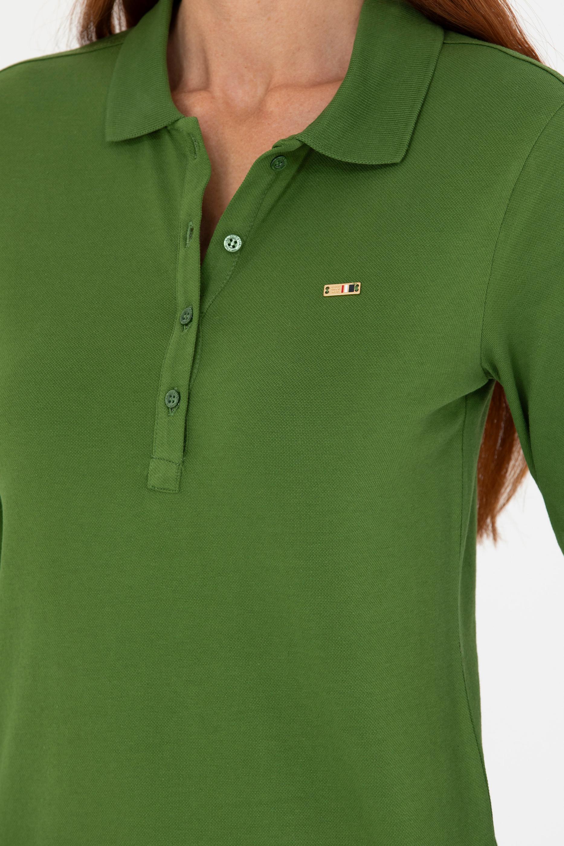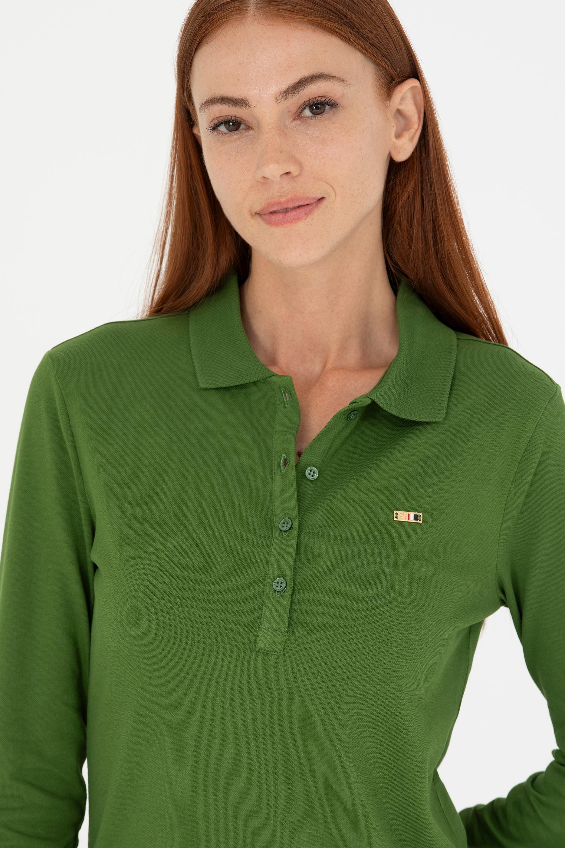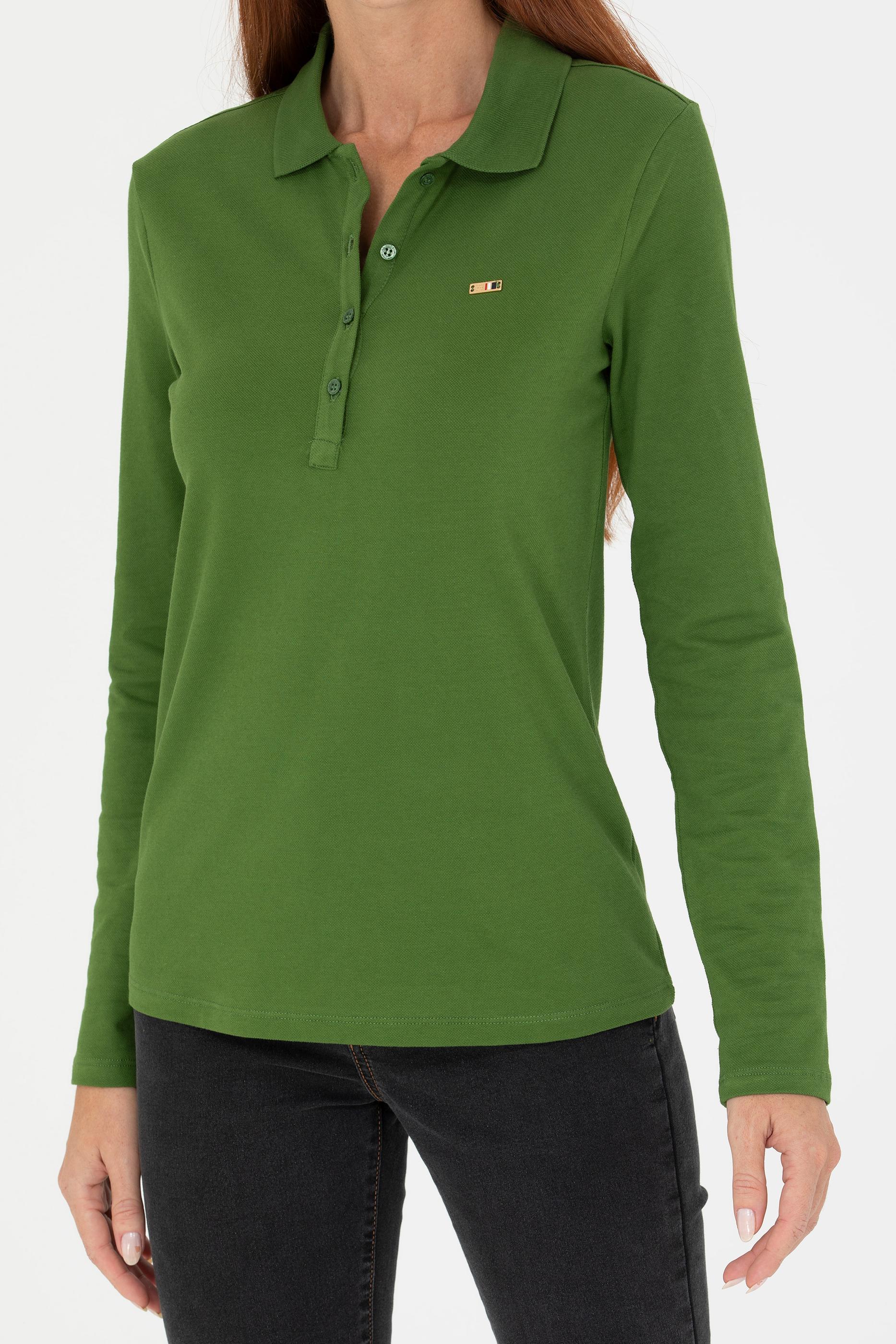 Kadın Yeşil Basic Polo Yaka Sweatshirt