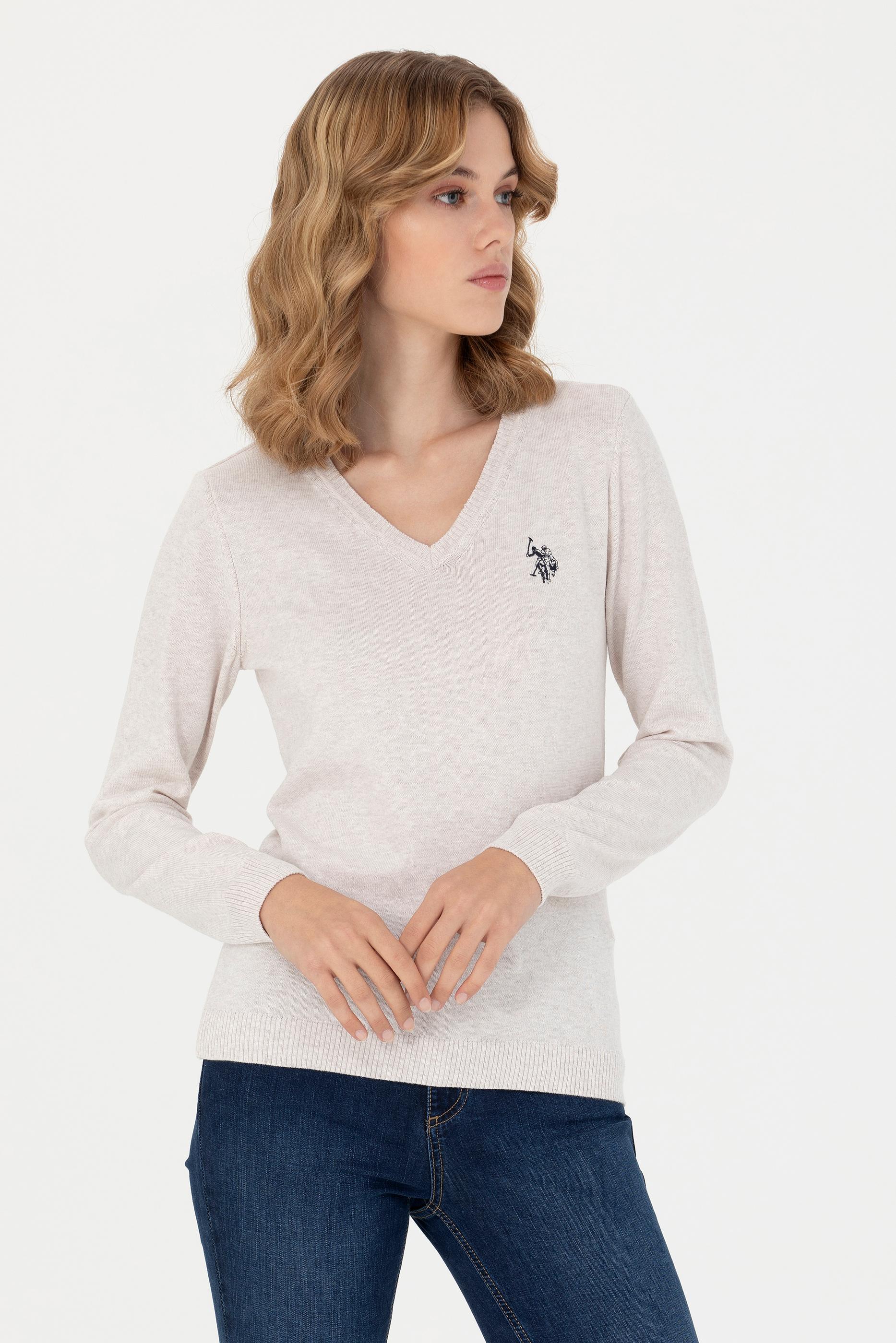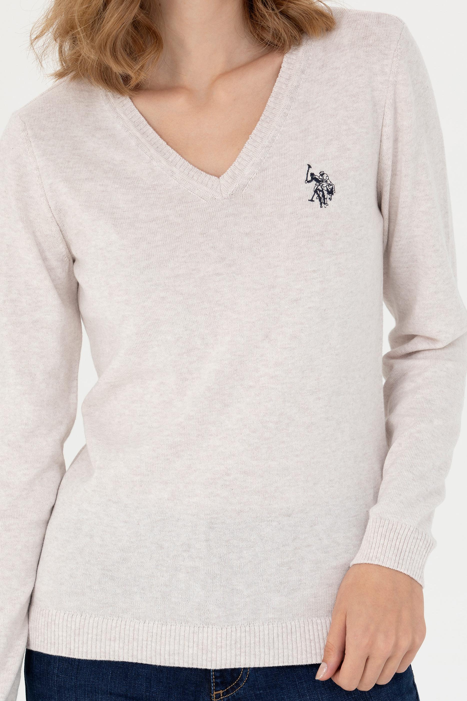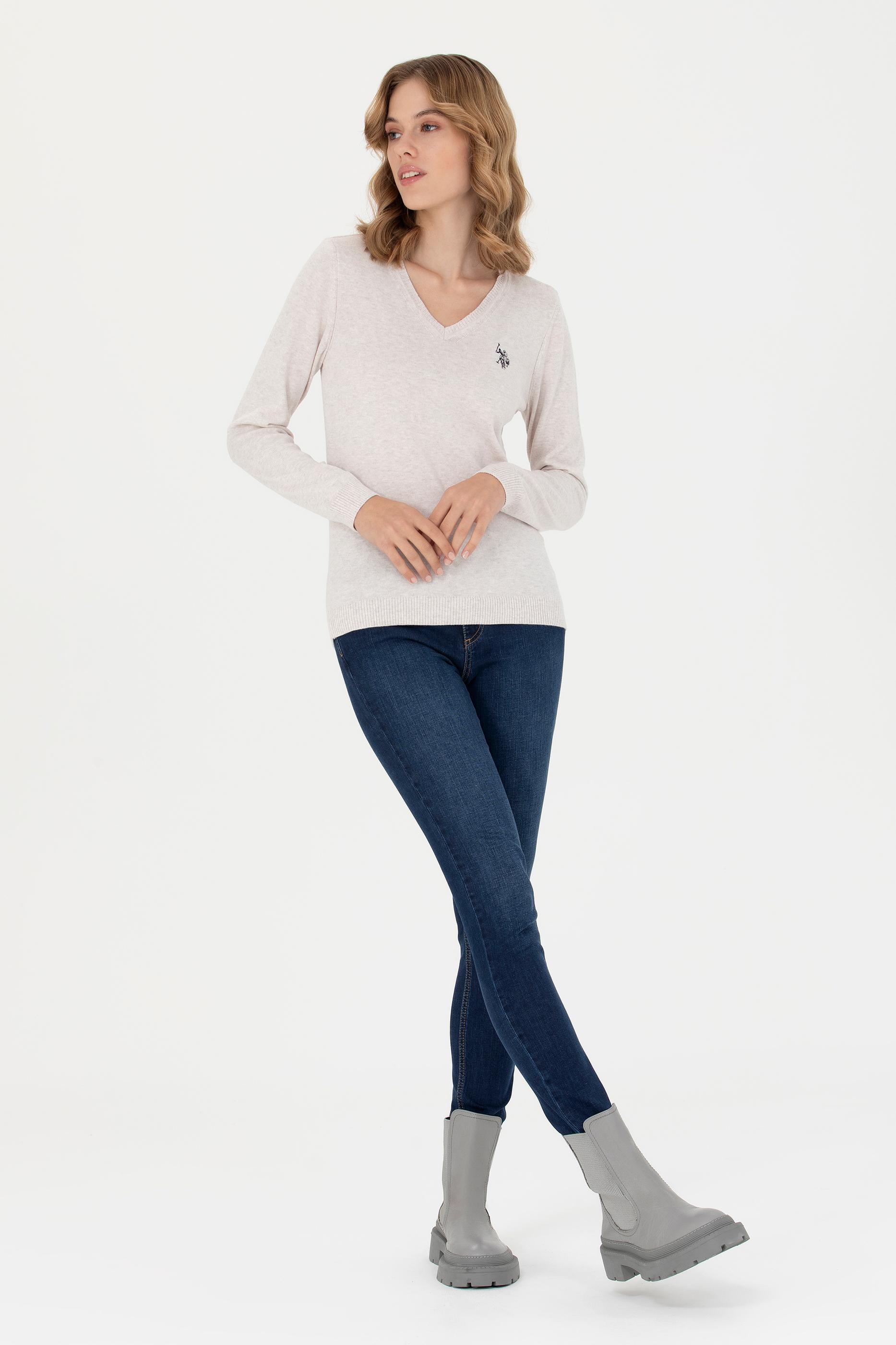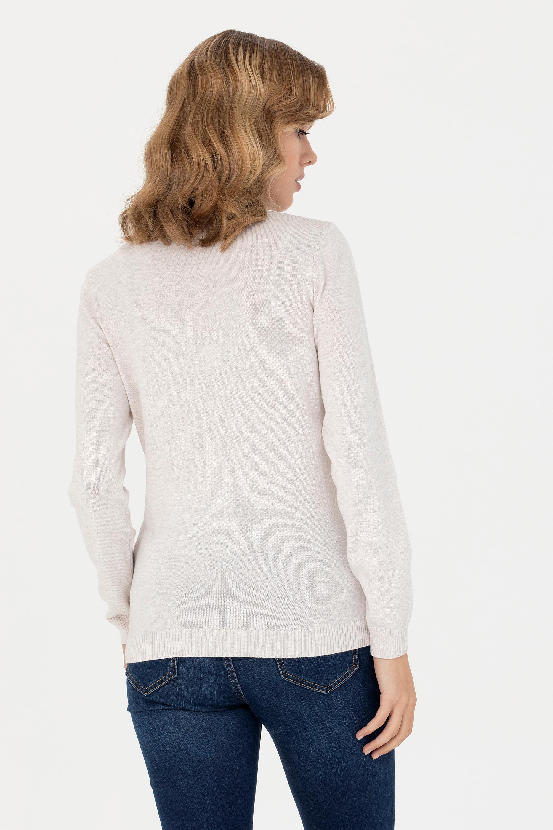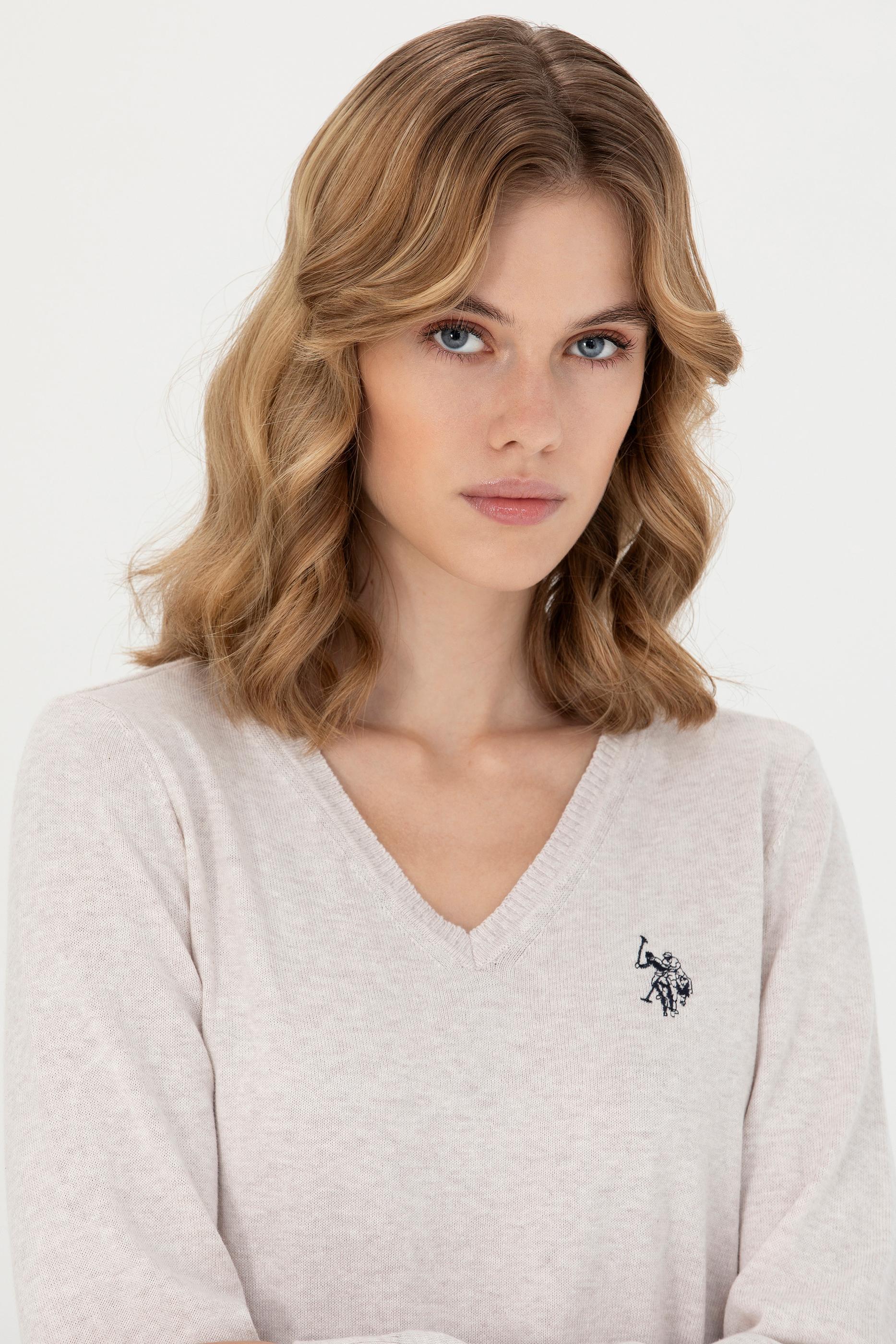 Kadın Taş Melanj V Yaka Basic Kazak