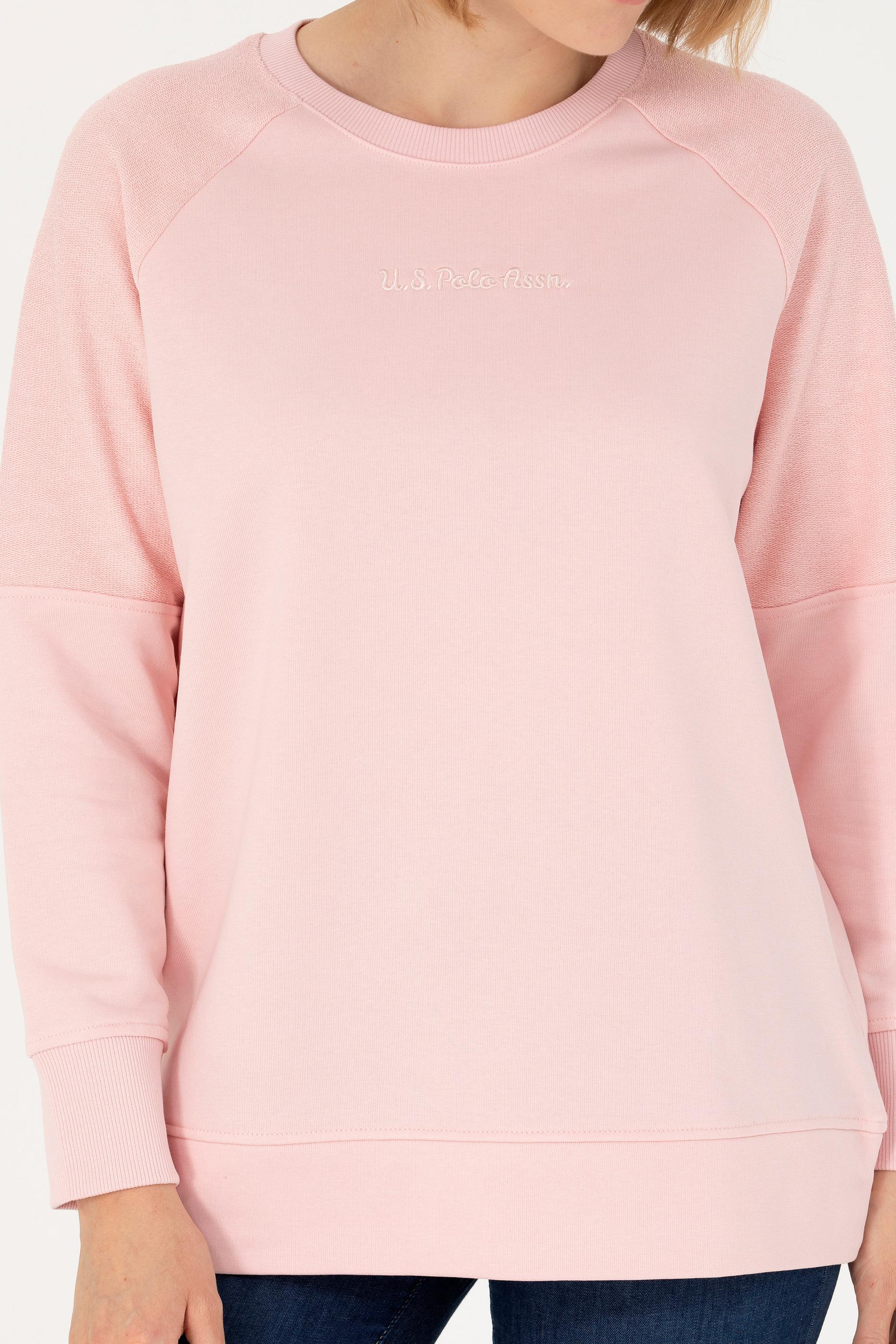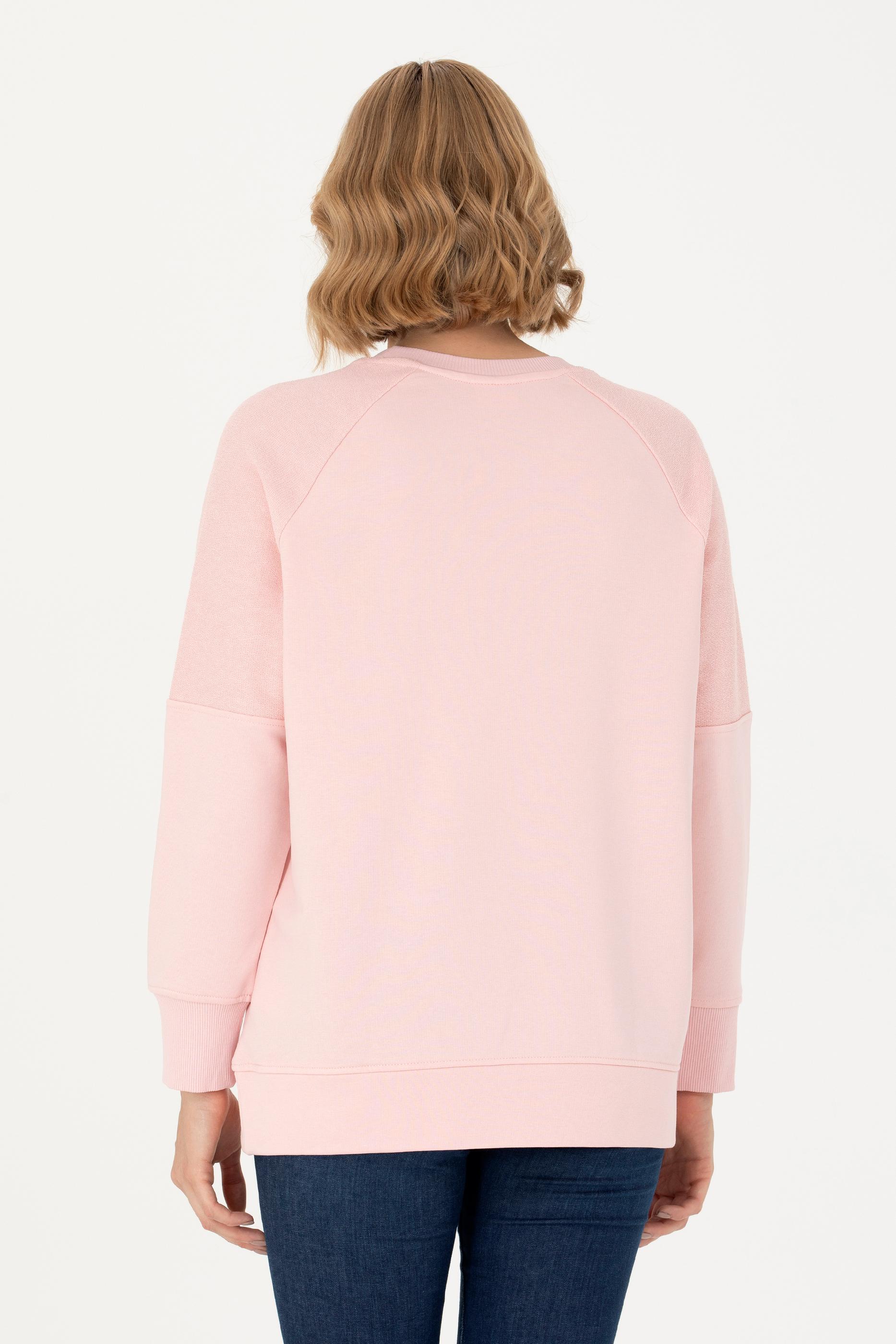 Kadın Toz Pembe Bisiklet Yaka Sweatshirt