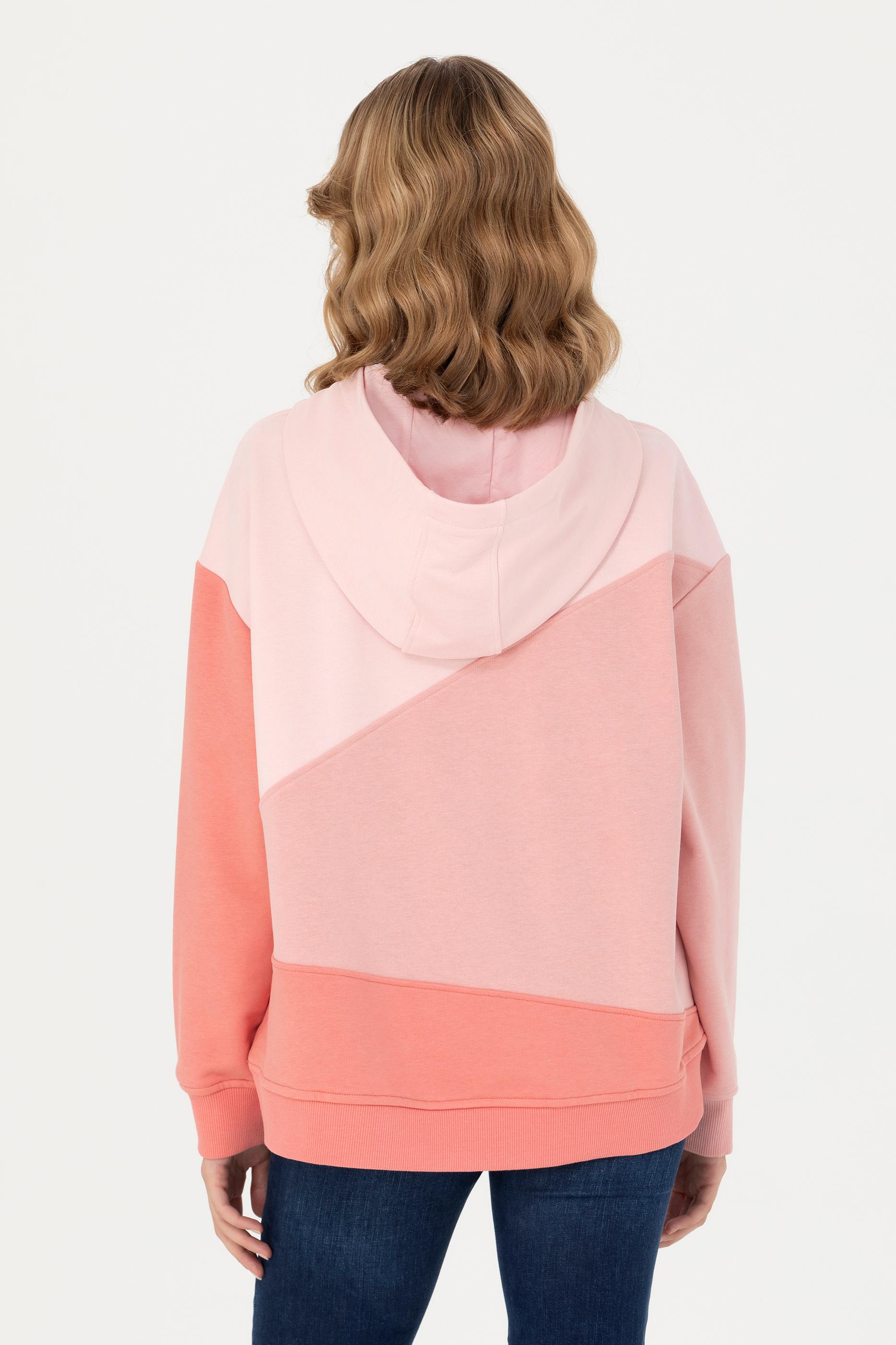 Spor ve casual kombinleri parçalı renkli tasarımı ile özgün hale getirecek kapüşonlu kadın sweatshirt modelimiz sadece Online’a özel satıştadır. Oversize kesime sahip modelimiz, her an konfor arayanların vazgeçilmezlerindendir. Pamuk karışımlı kadın sweatshirt modelimiz, cildin nem dengesini koruyarak gün içinde meydana gelebilecek terlemelere karşı önlem almayı kolaylaştırır.