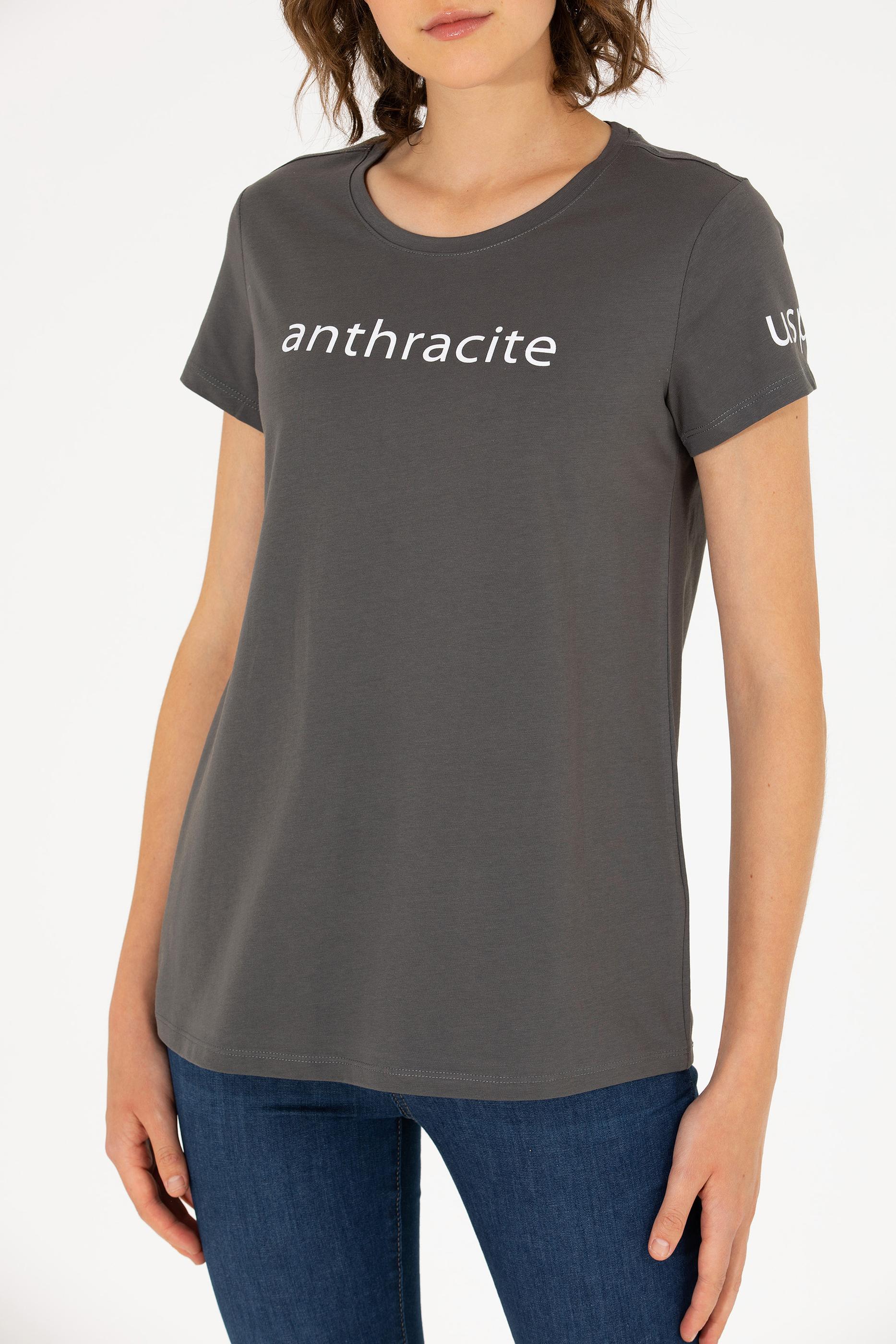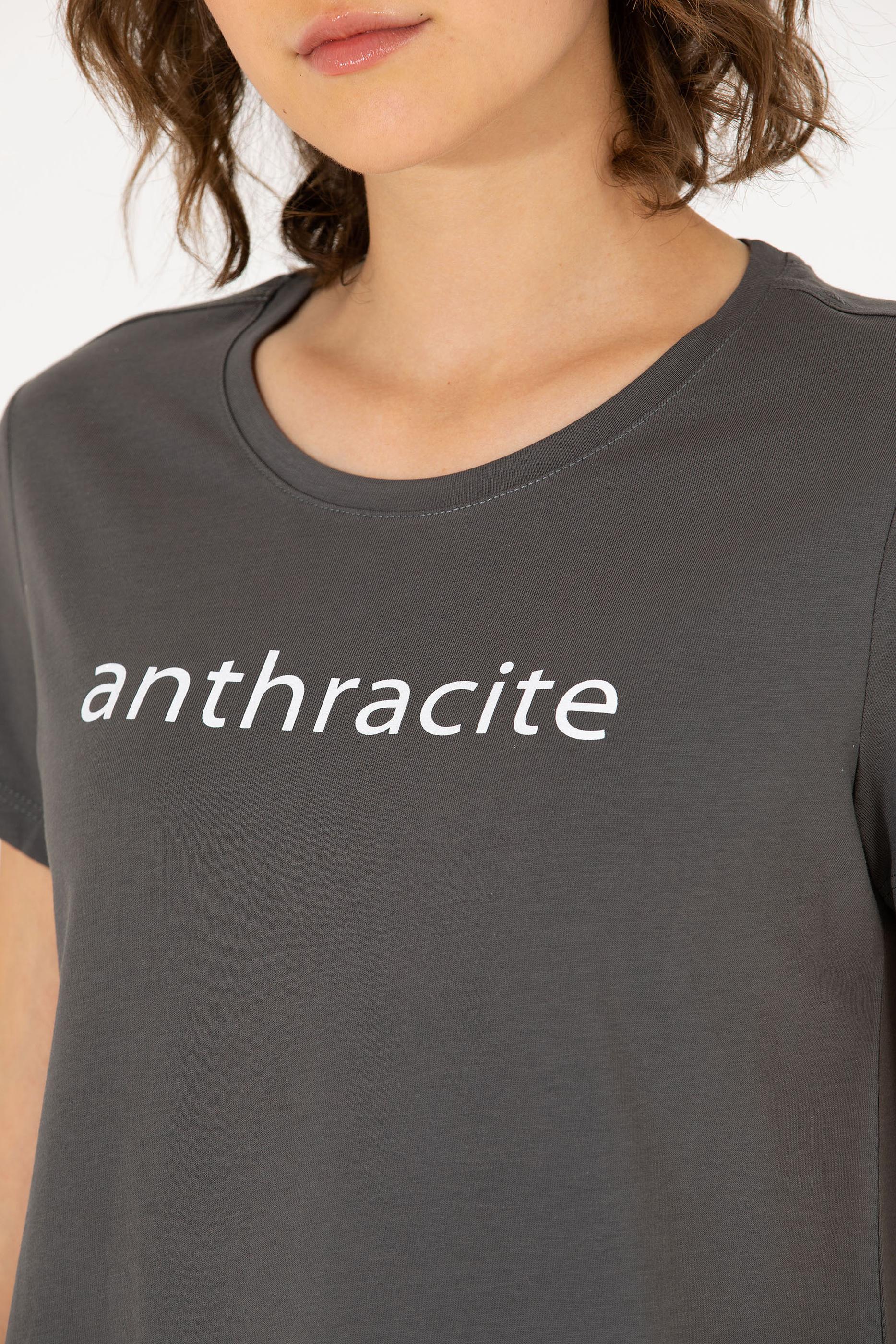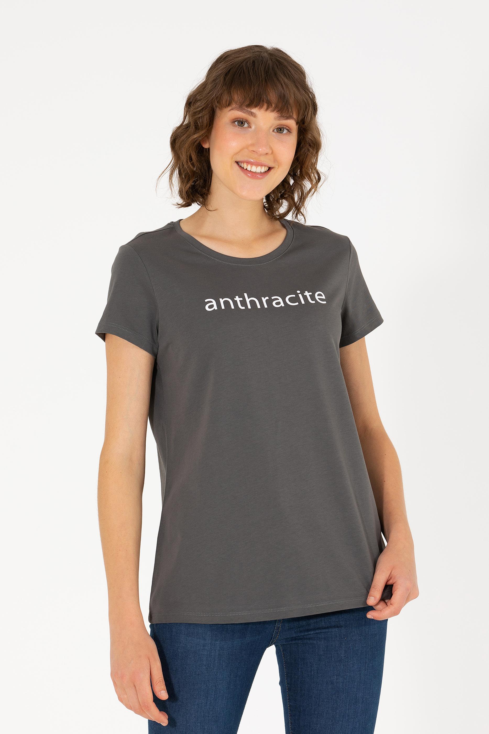Kadın Antrasit Bisiklet Yaka Tişört