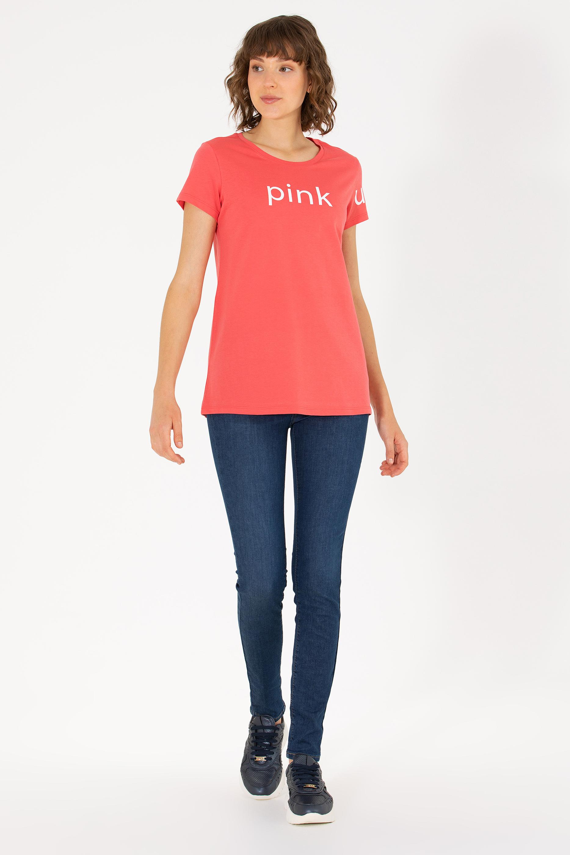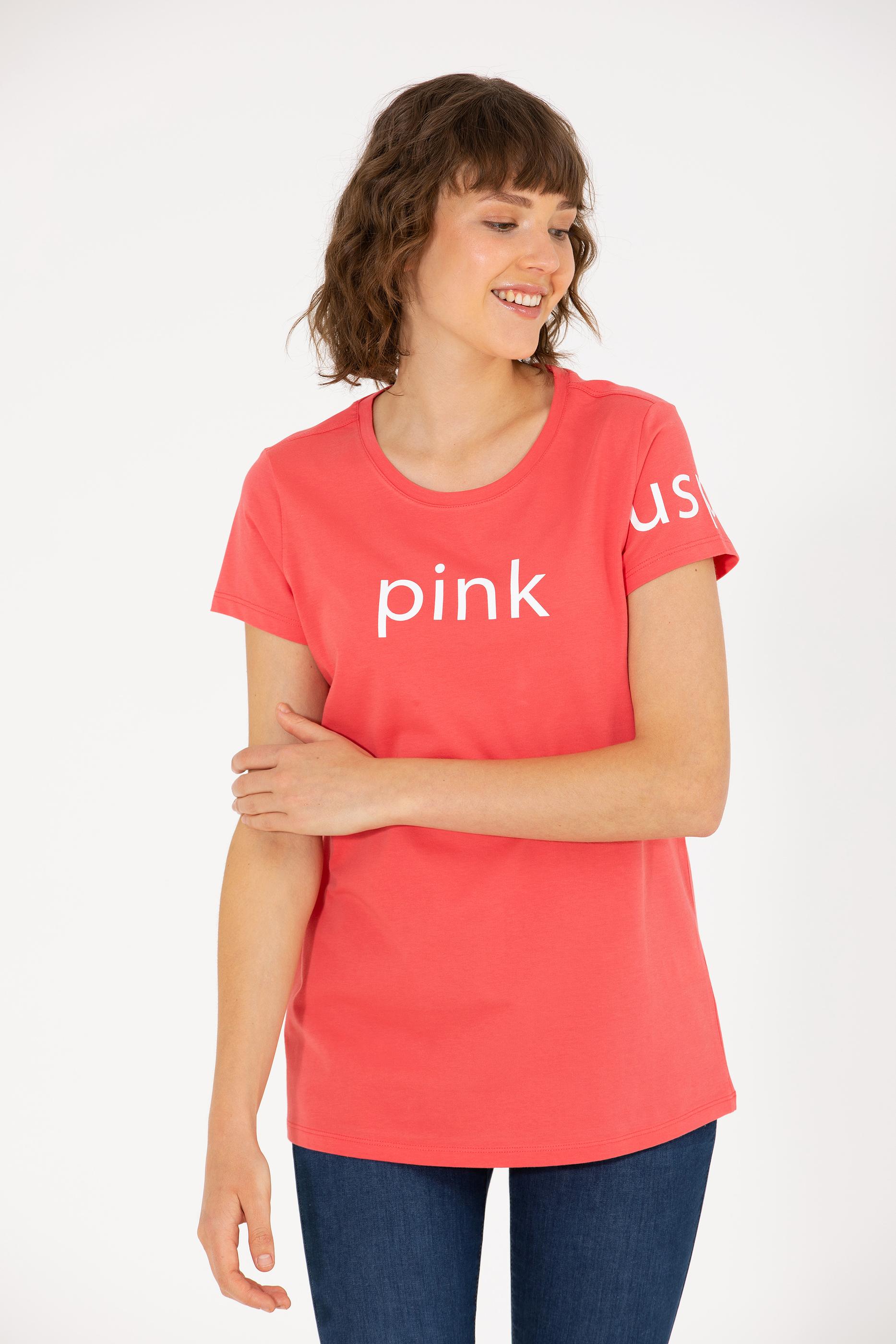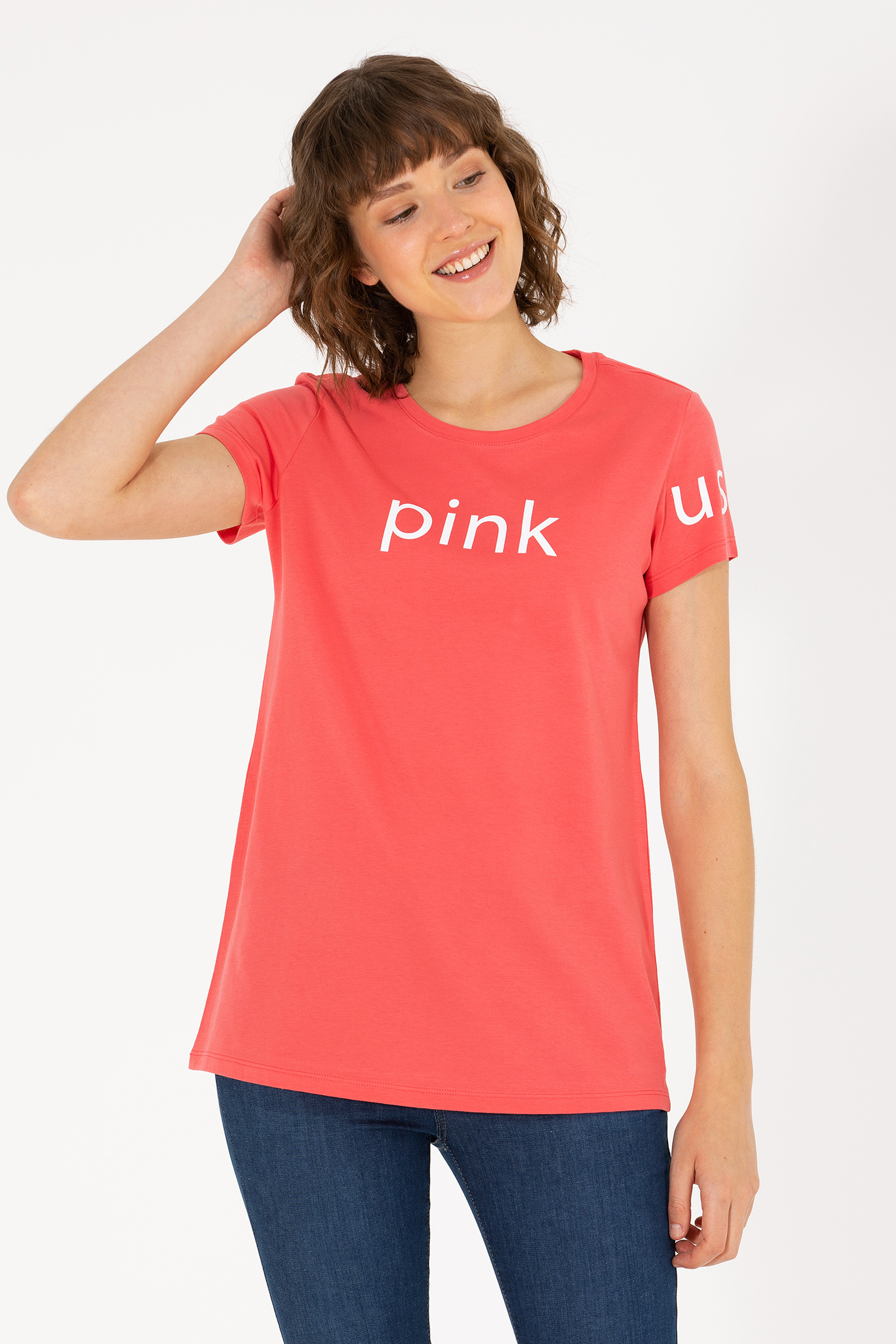 Bisiklet yaka t-shirt kadın moda severlerin casual bir şıklık yakalamak için öncelikli tercihleri arasında geliyor. Farklı tarzlarda kıyafetlerle kombinlenebilen kadın pembe t-shirt modelimiz pembe rengin yalın güzelliğinin doğal kumaşlara yansımış hali olarak meydana geliyor. Tamamen doğal pamuktan üretilen modelin kumaşı sıcak yaz aylarında giymek için serin bir alternatif oluyor. Üzerinde pink yazılı t-shirt modelimiz sade şıklığa vurgu yapıyor.