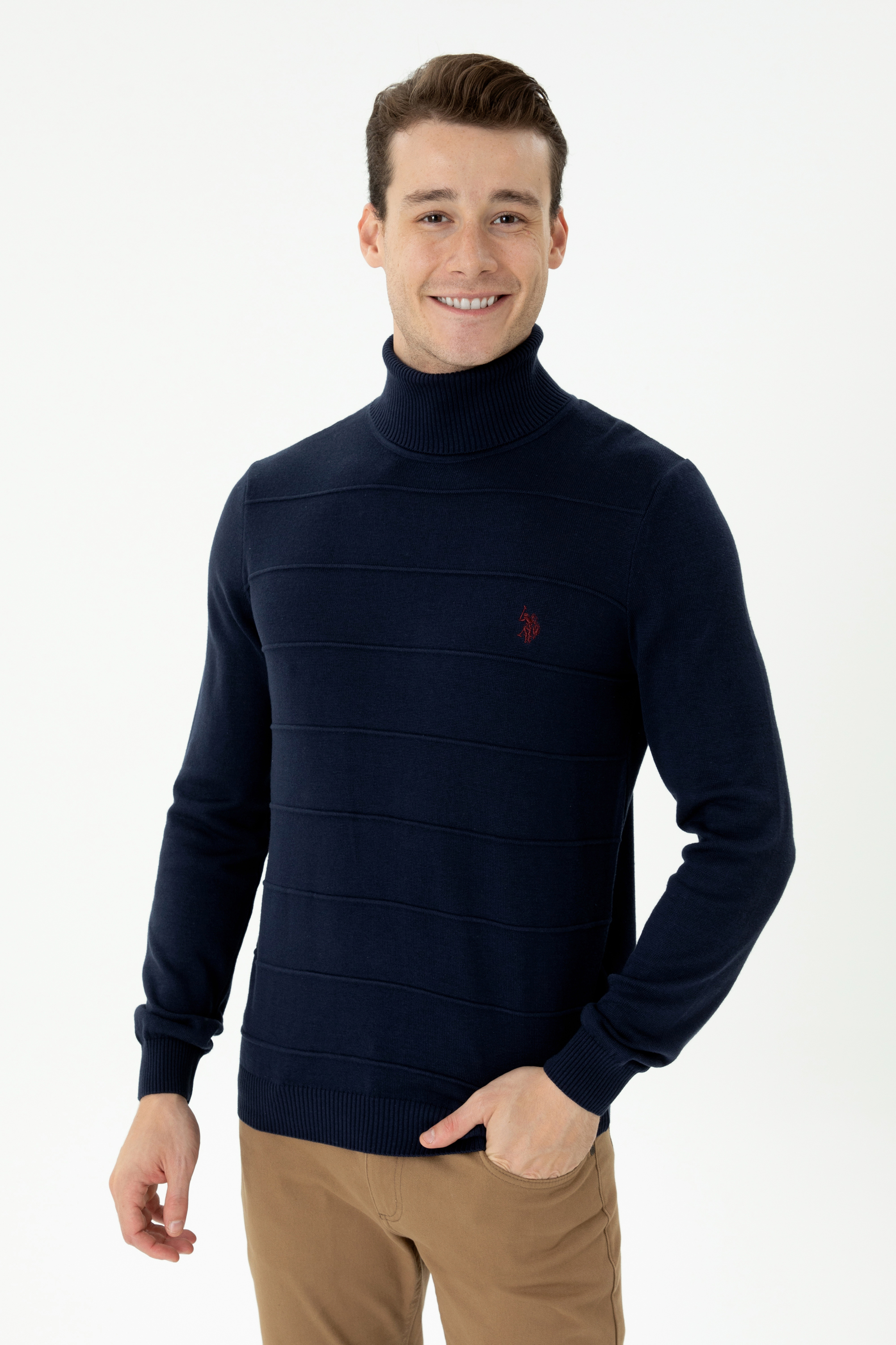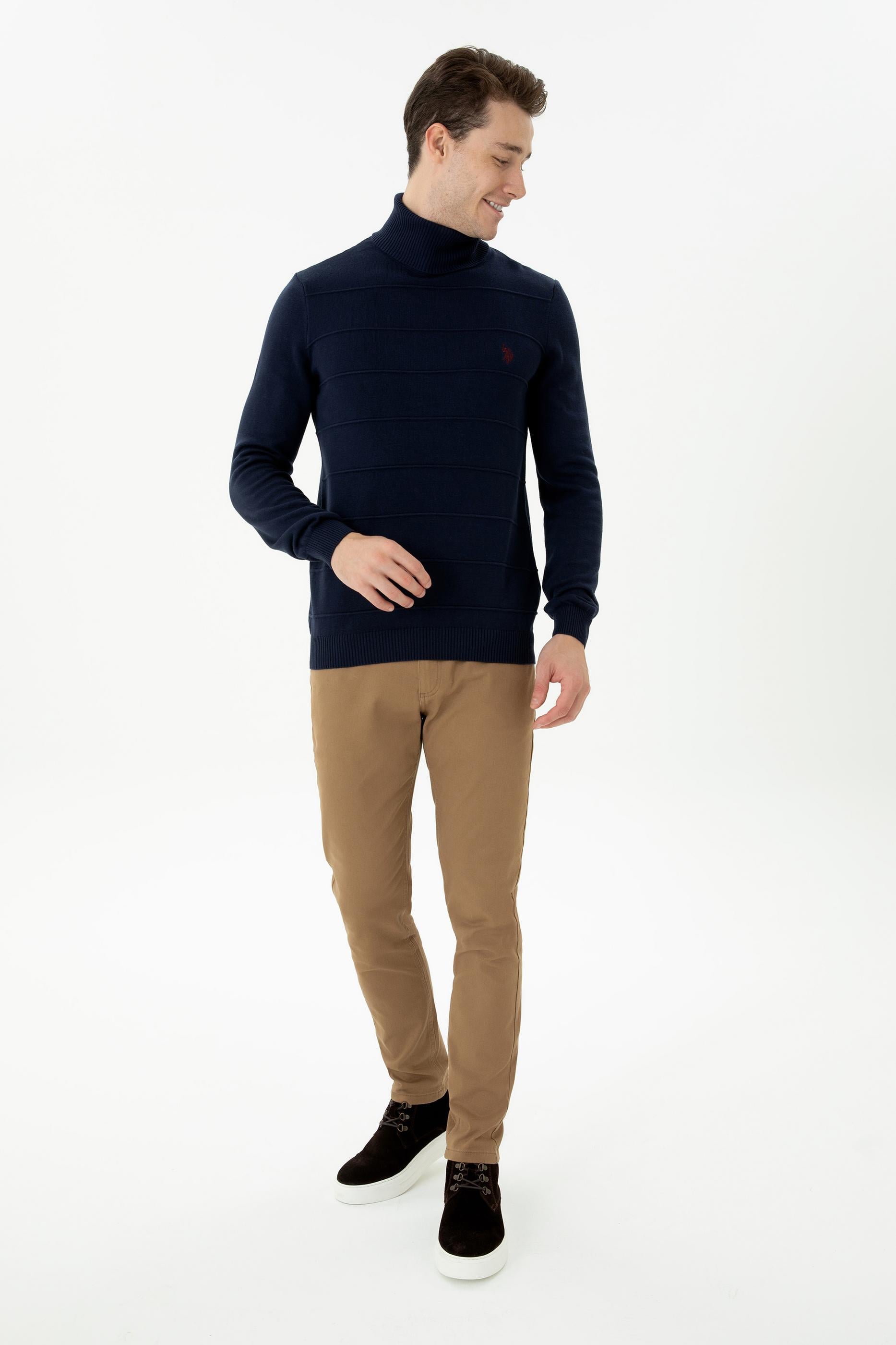 Tam balıkçı yaka formu sayesinde boyun çevrenizi soğuklara karşı koruyan, kış günlerine özel tasarlayacağınız kombinlere şıklık katan erkek triko kazak modelimiz sadece Online’a özel satıştadır. Gardırobunuza benzersiz kalite ayrıcalığı taşıyacak pamuk karışımlı erkek triko kazağımız, vücudu sararak çok daha formda görünmenize yardımcı olacak slim fit kesime sahiptir.