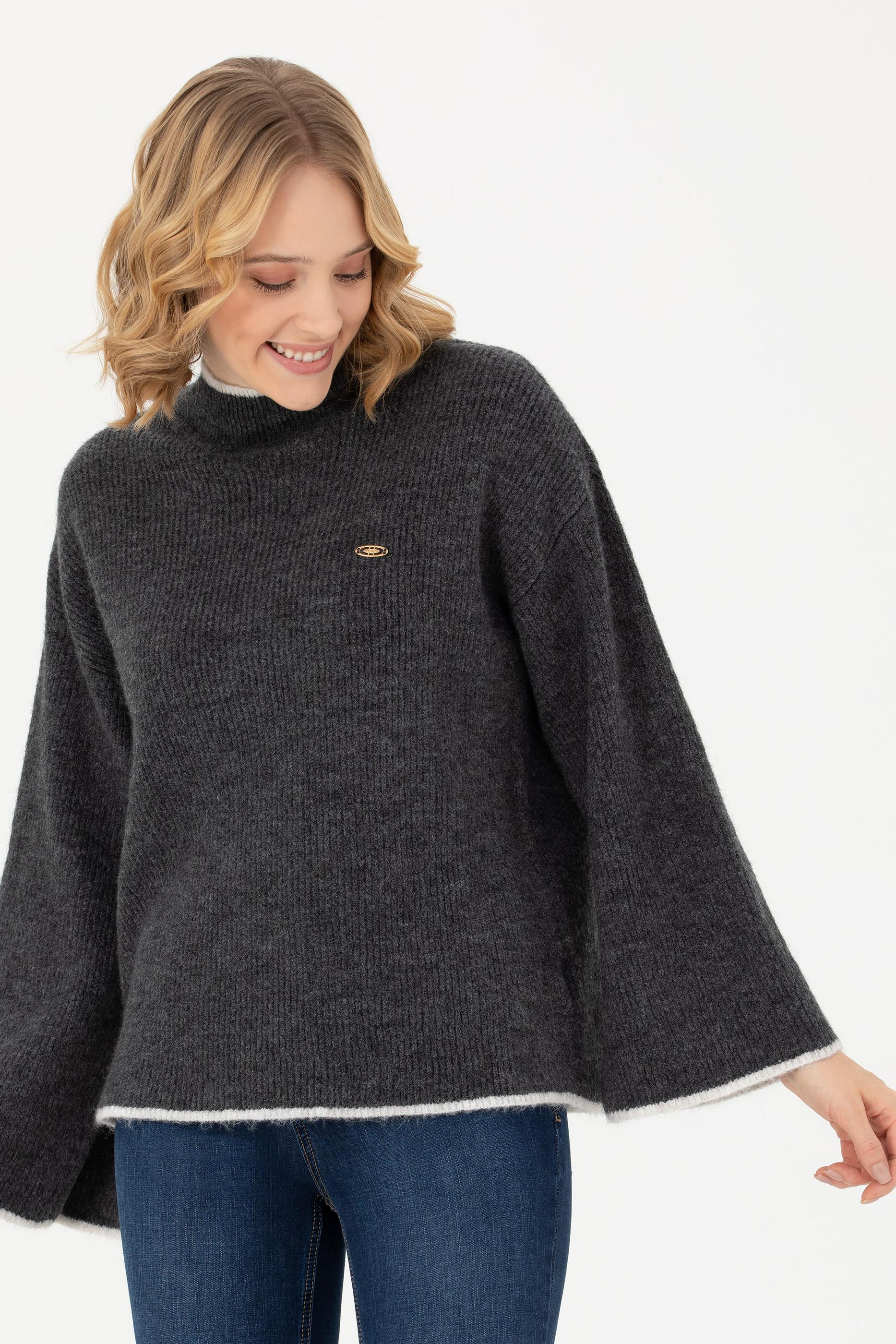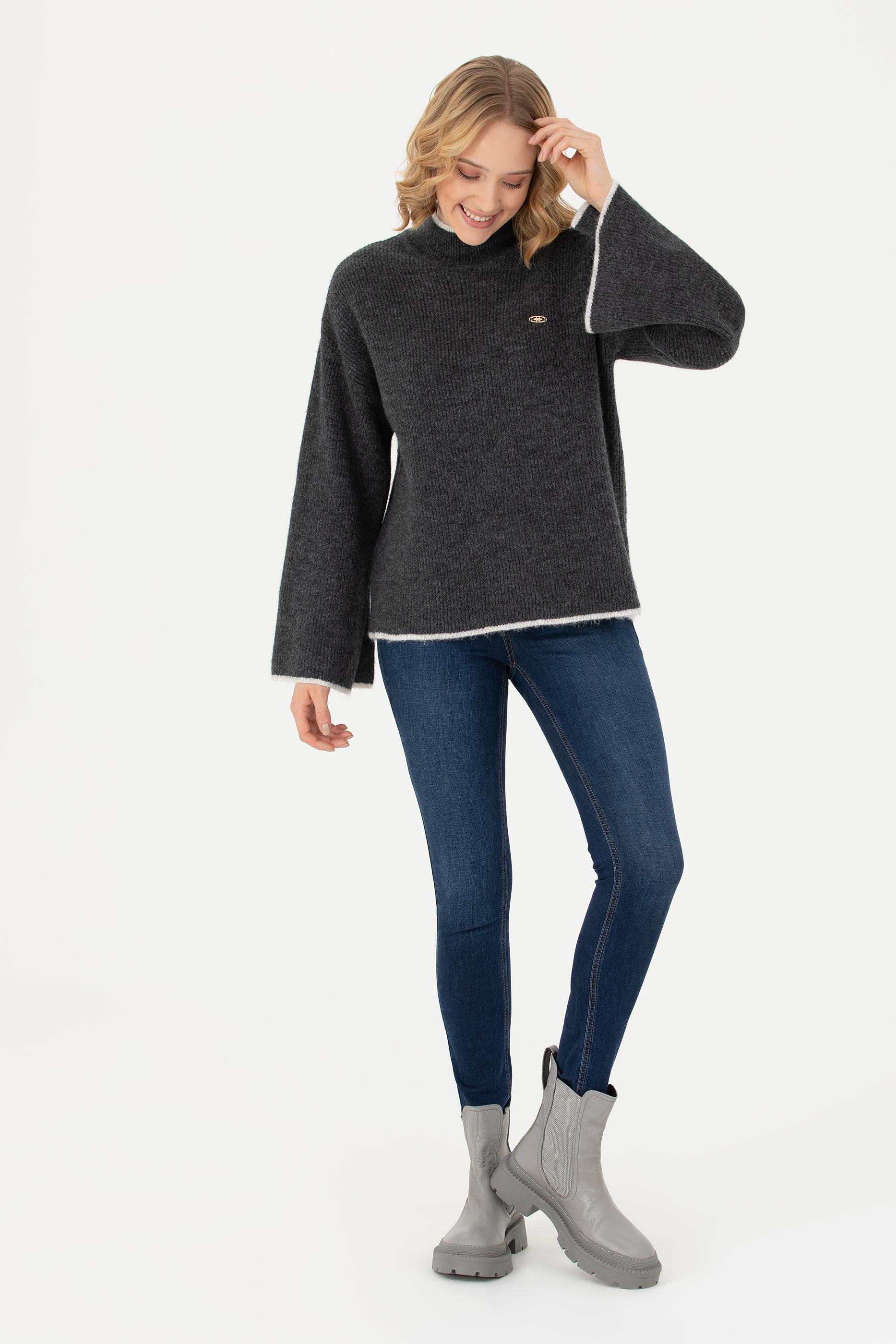 Kadın Antrasit Melanj Kazak