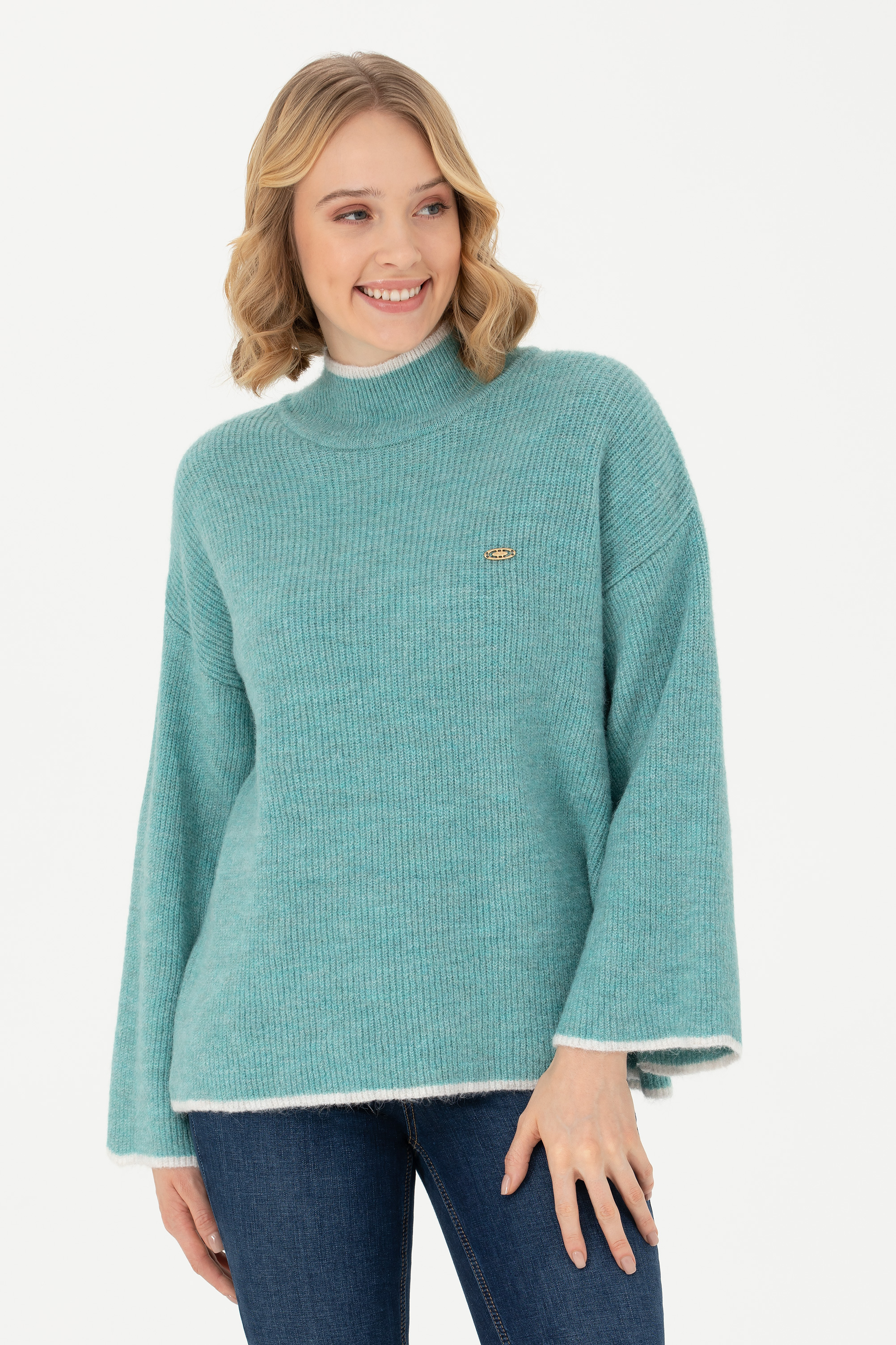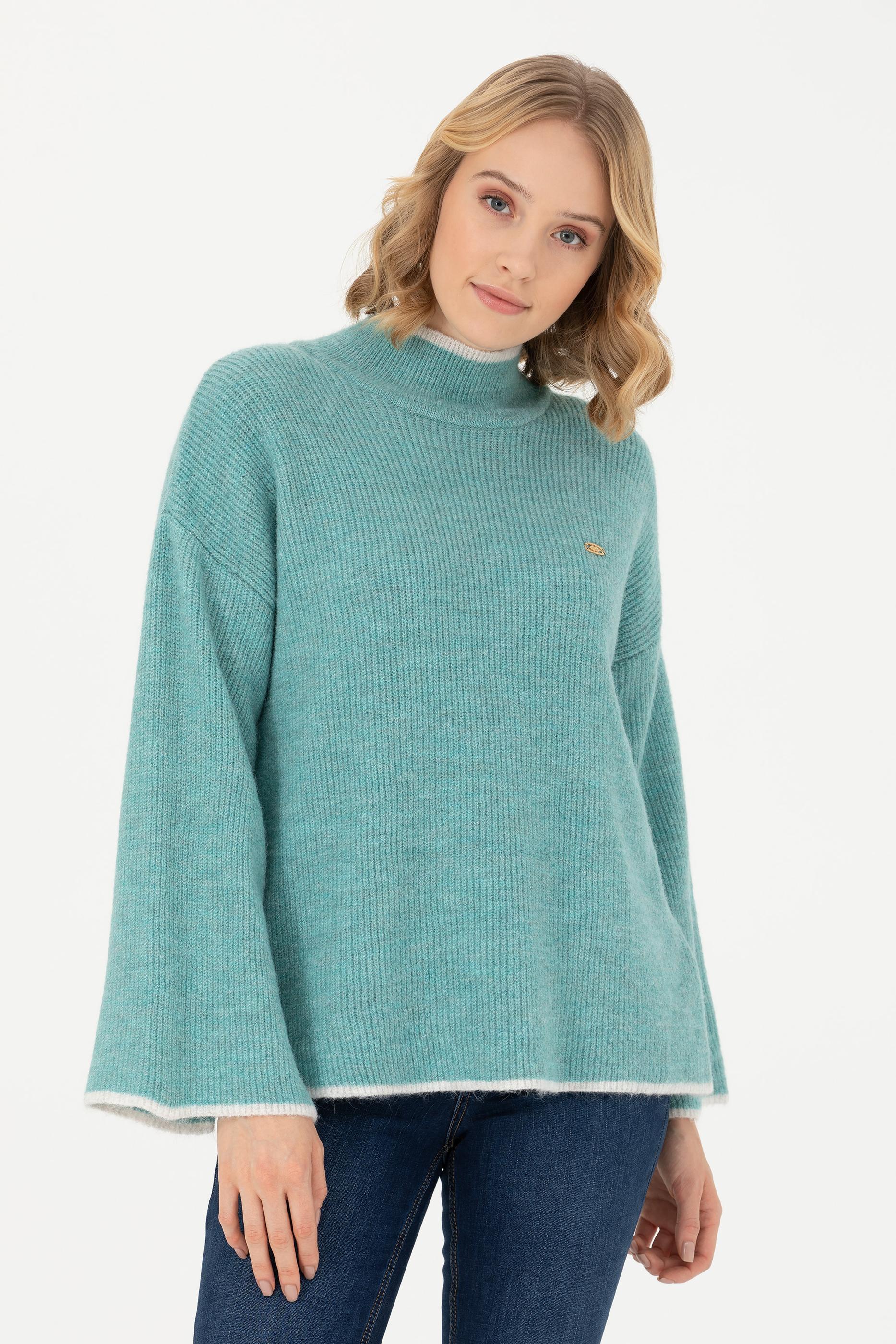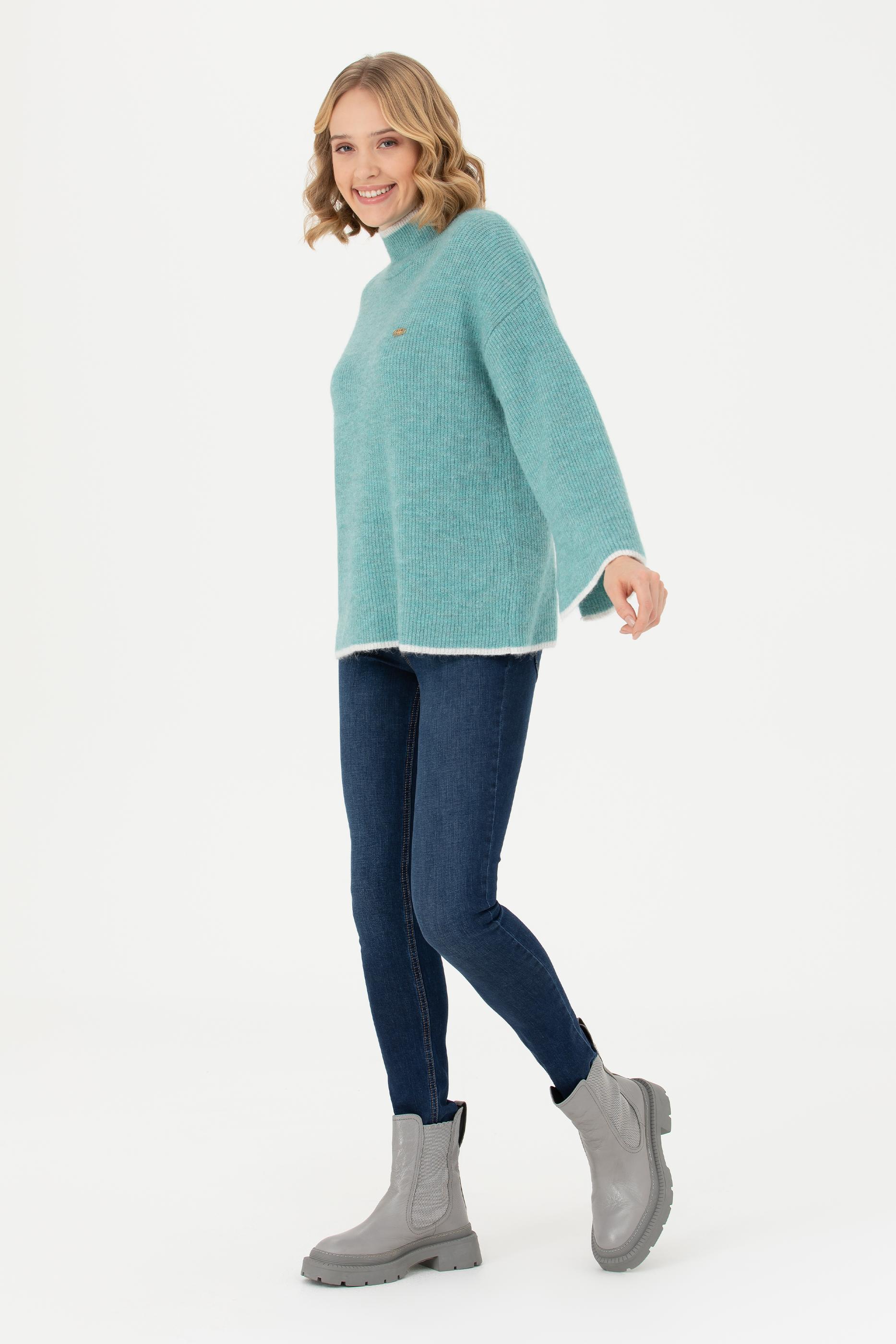 Kadın Mint Balıkçı Yaka Kazak
