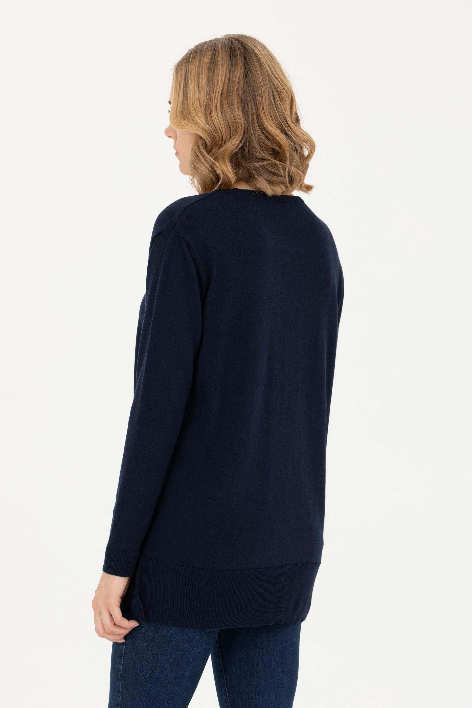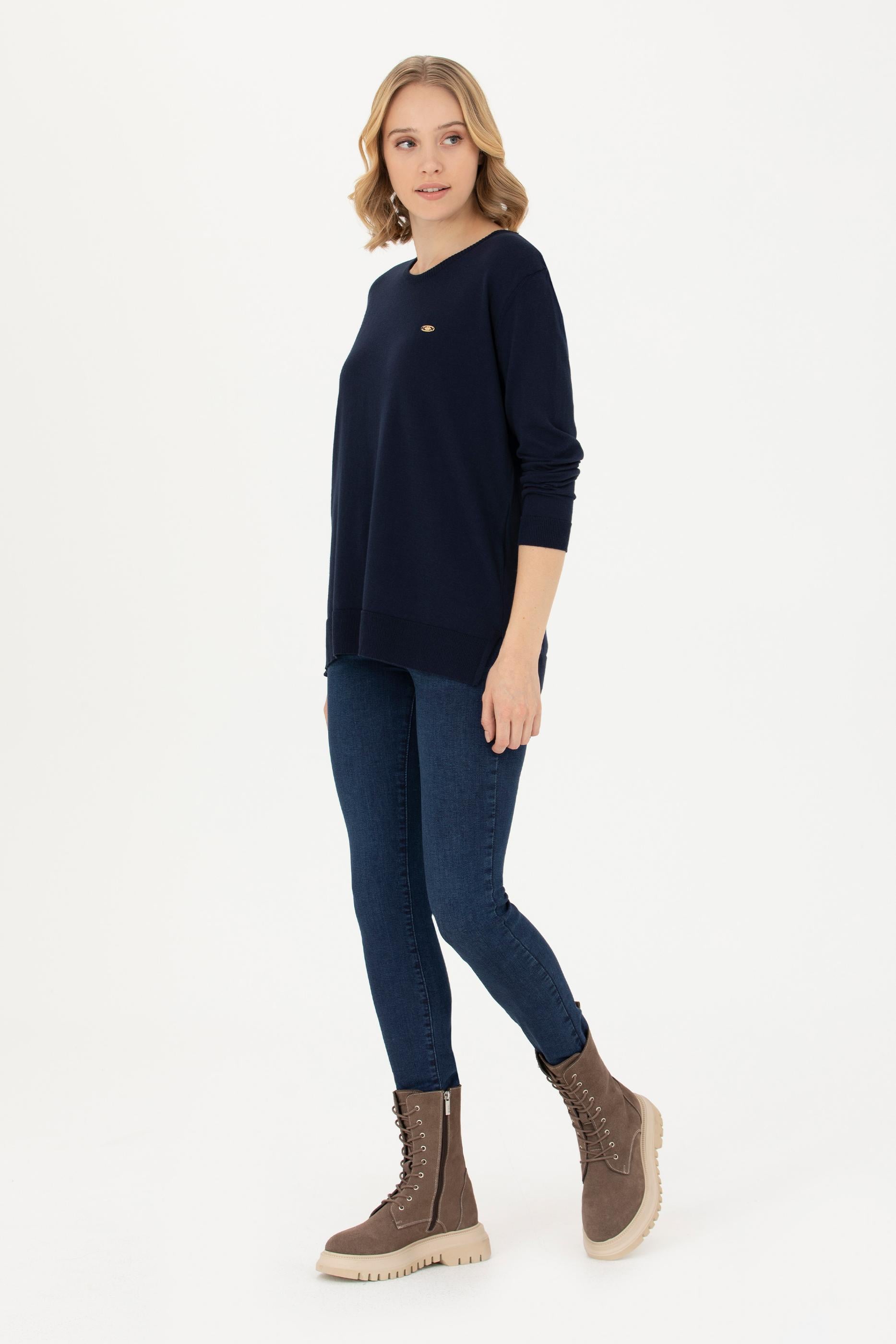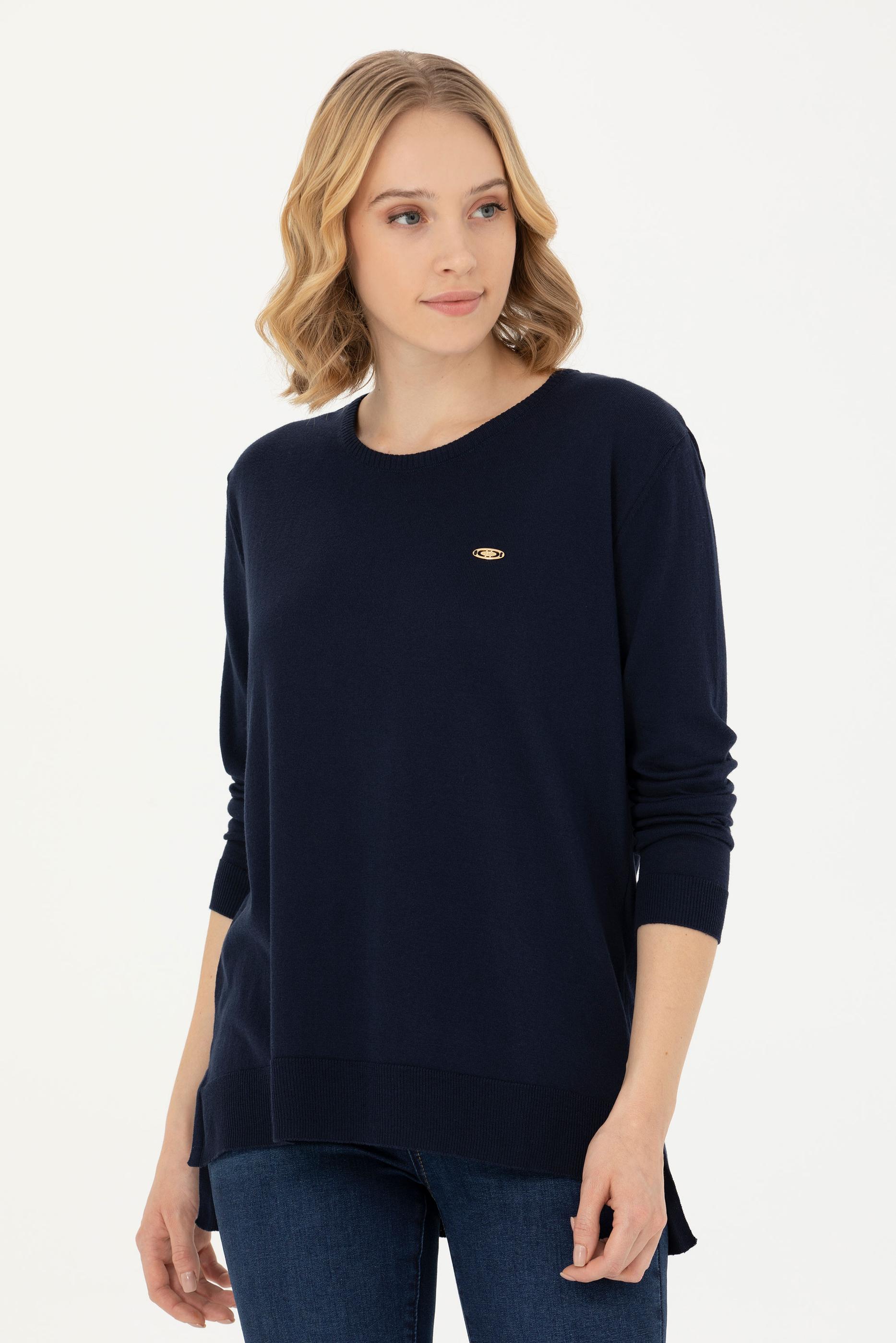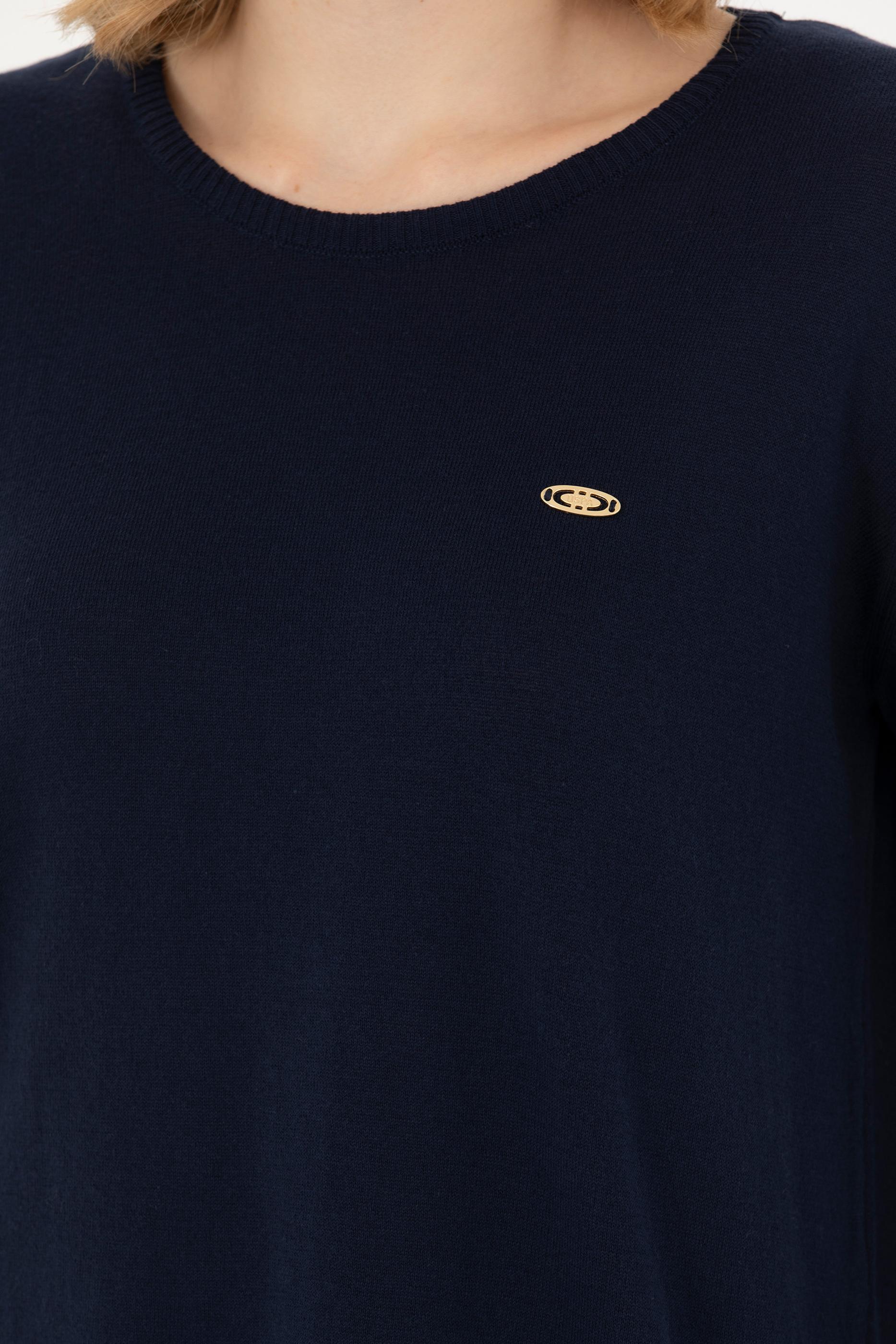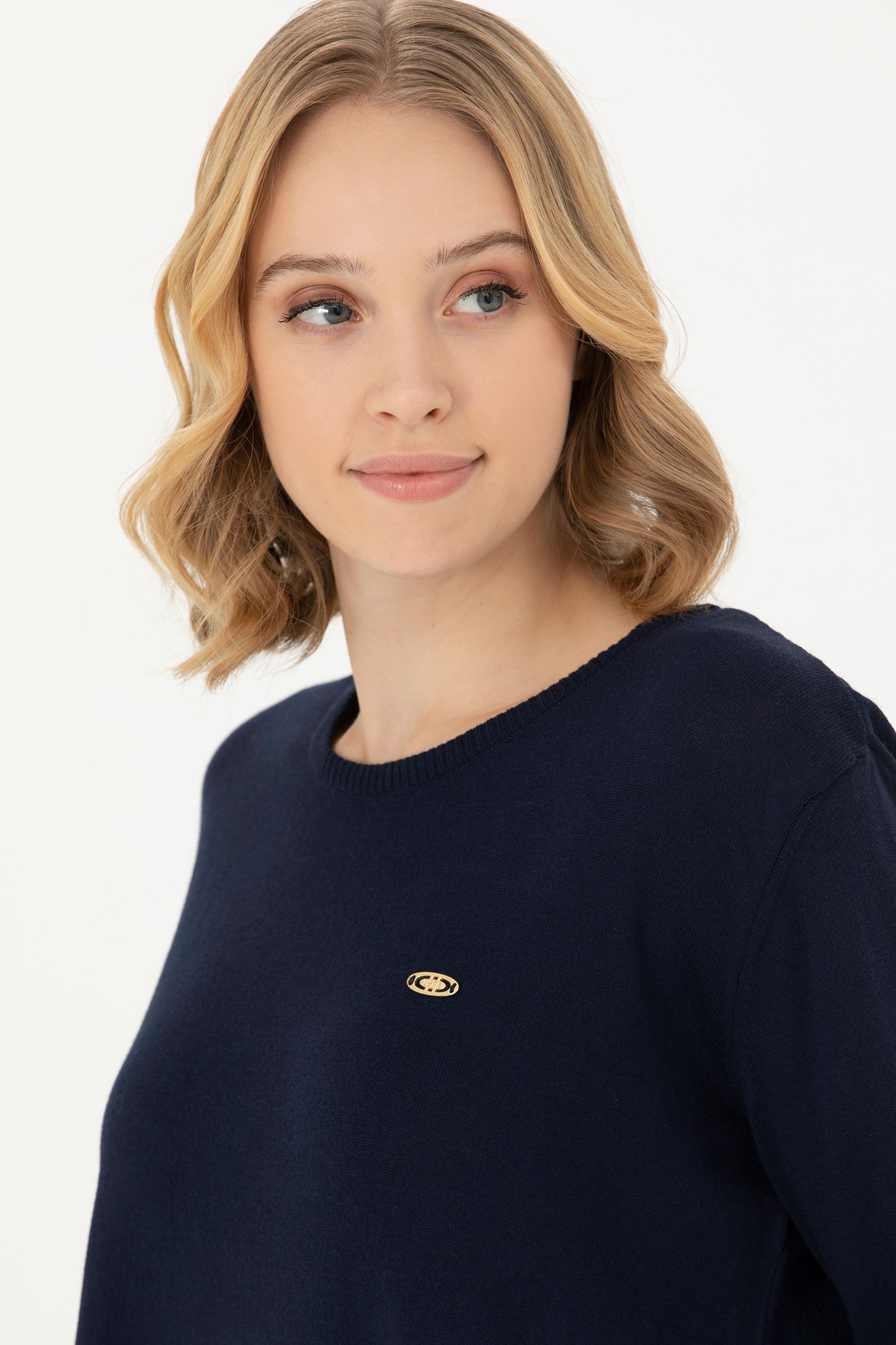 Kadın Lacivert Bisiklet Yaka Basic Kazak