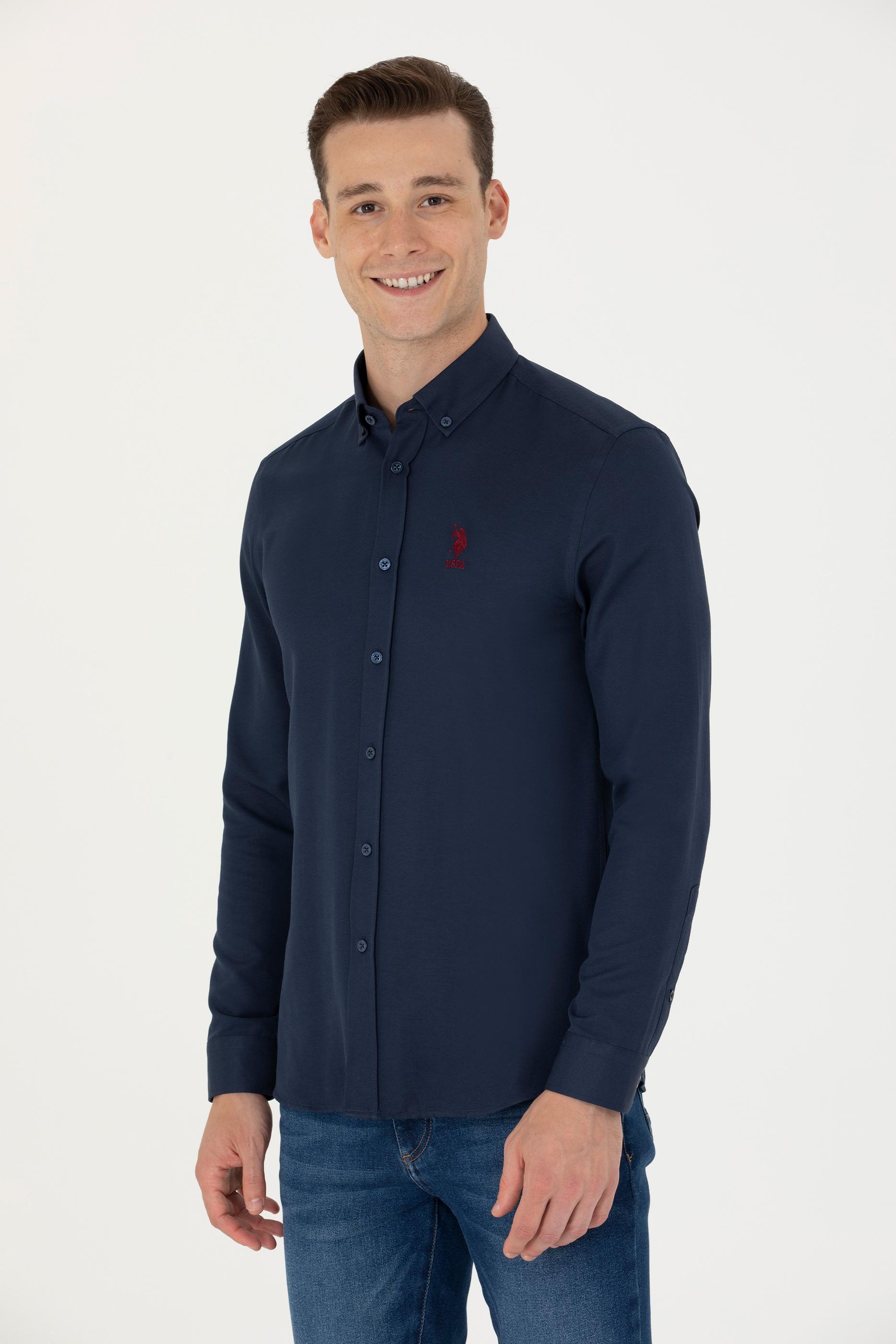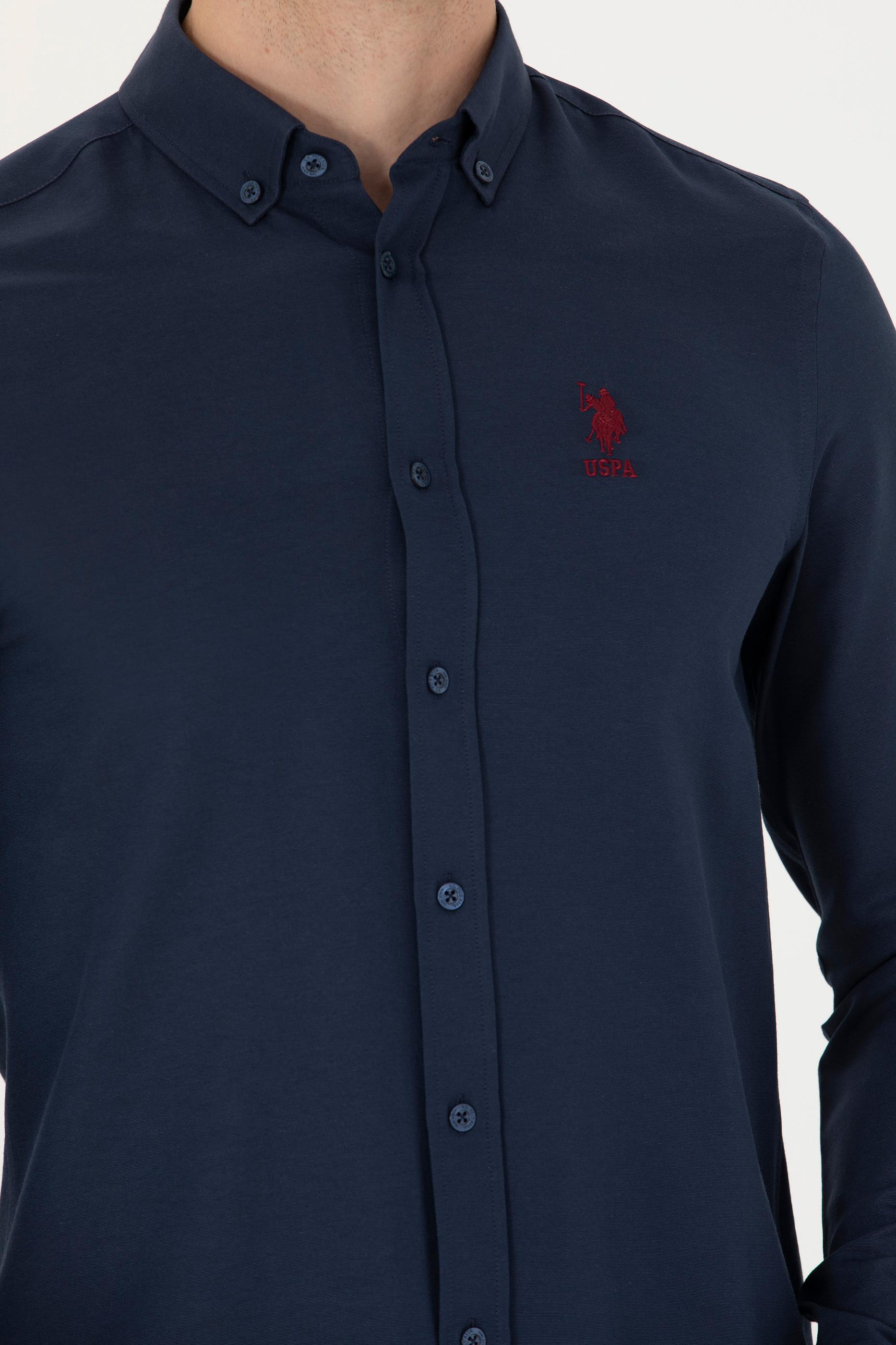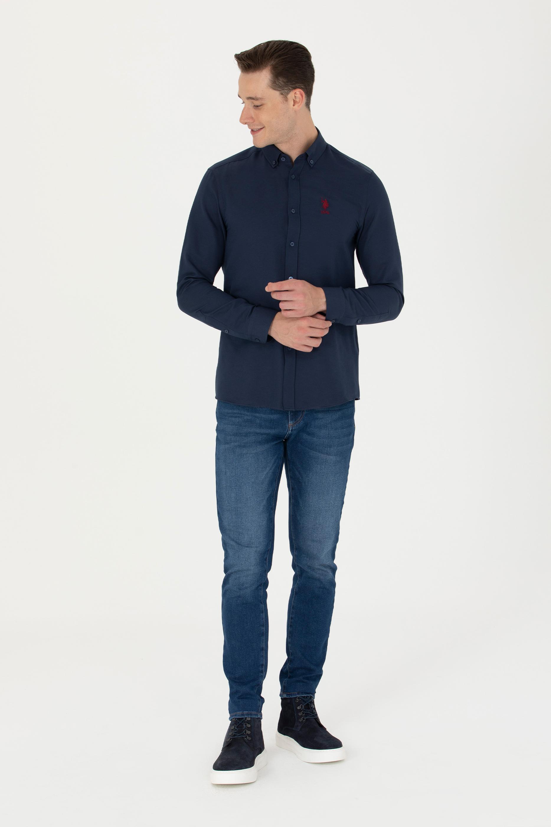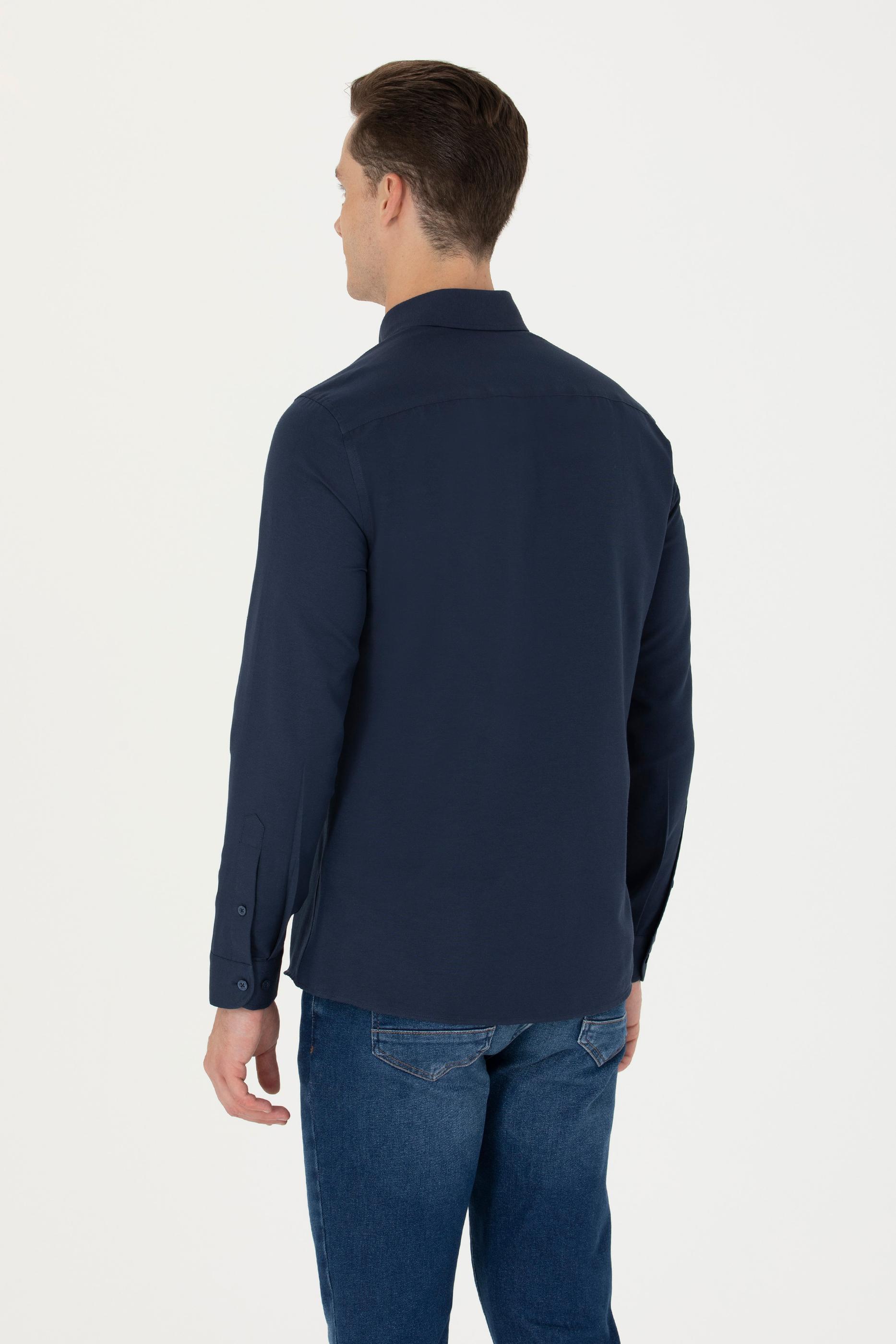 Erkek Lacivert Uzun Kollu Basic Gömlek