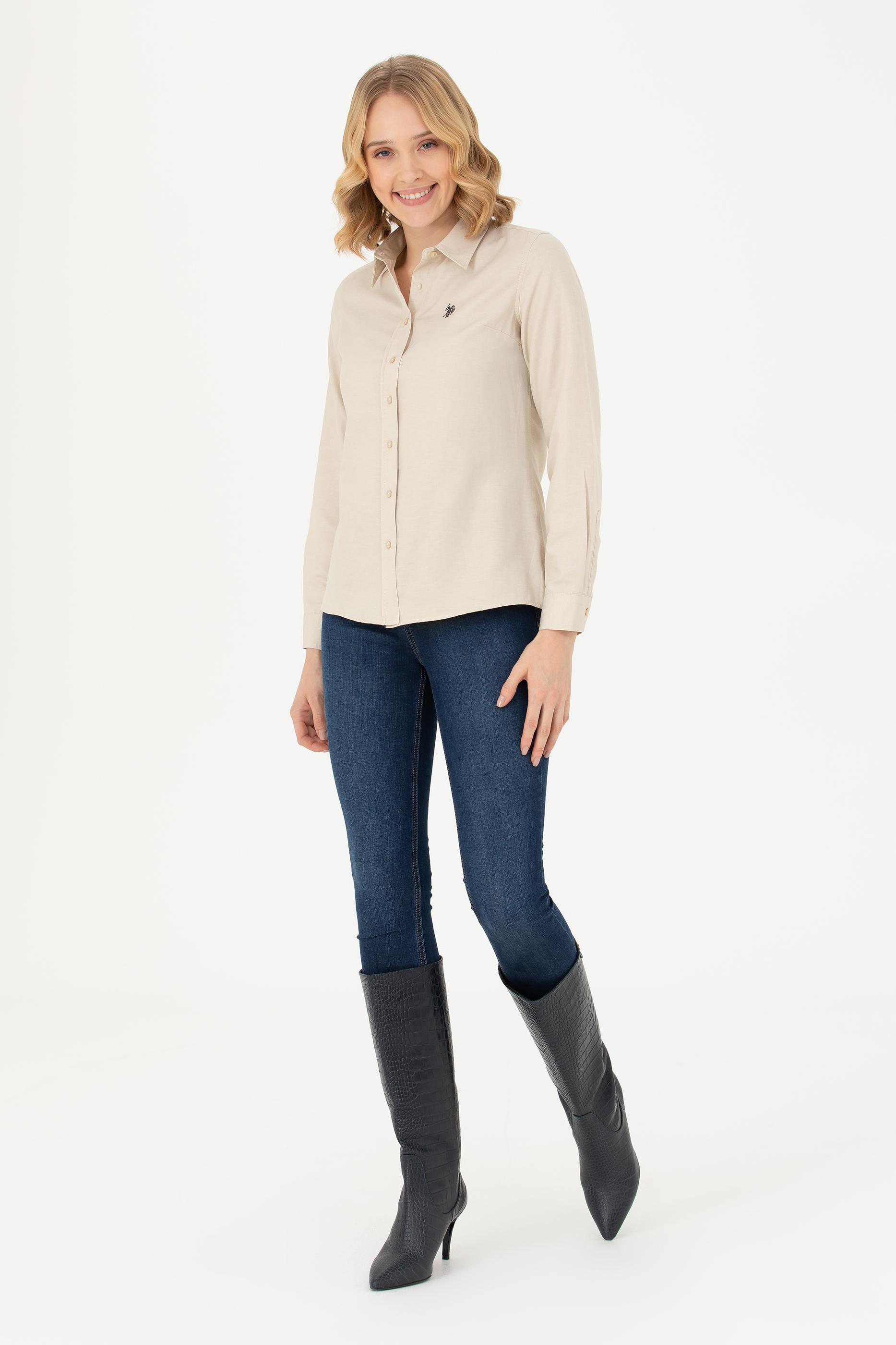 - Kadın Camel Uzun Kollu Basic Gömlek