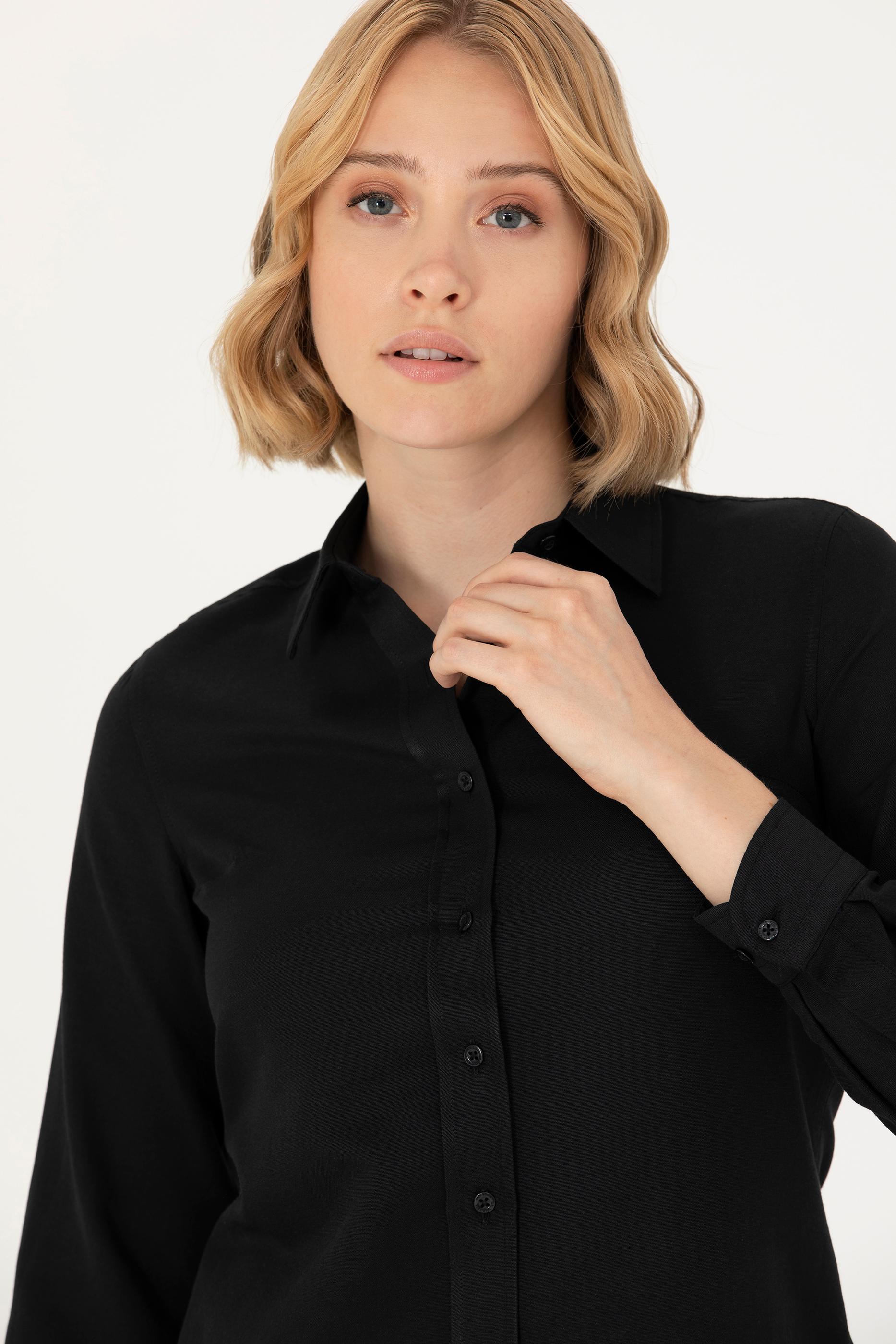 Kadın Siyah Uzun Kollu Basic Gömlek