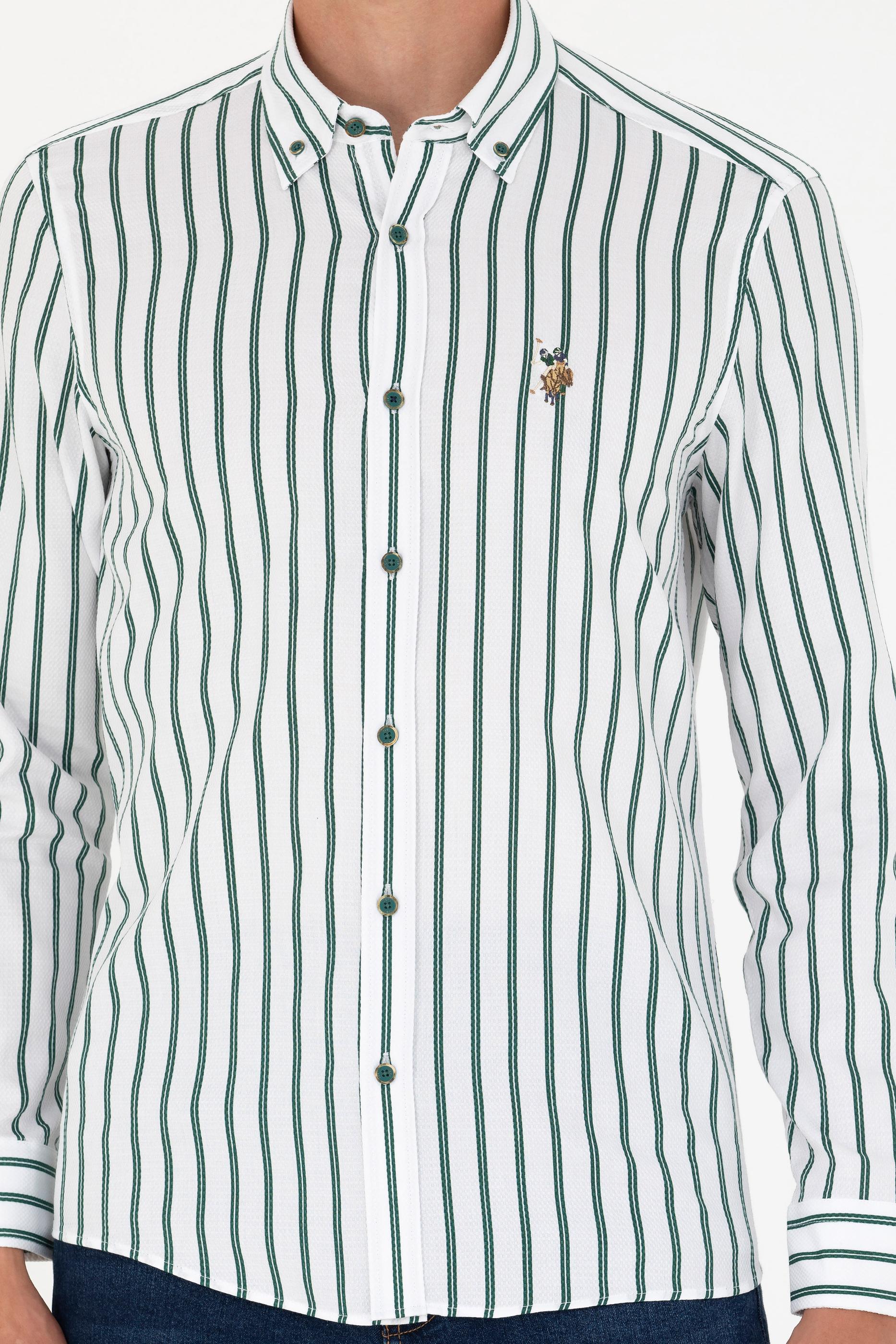 - Erkek Yeşil Çizgili Beyaz Gömlek