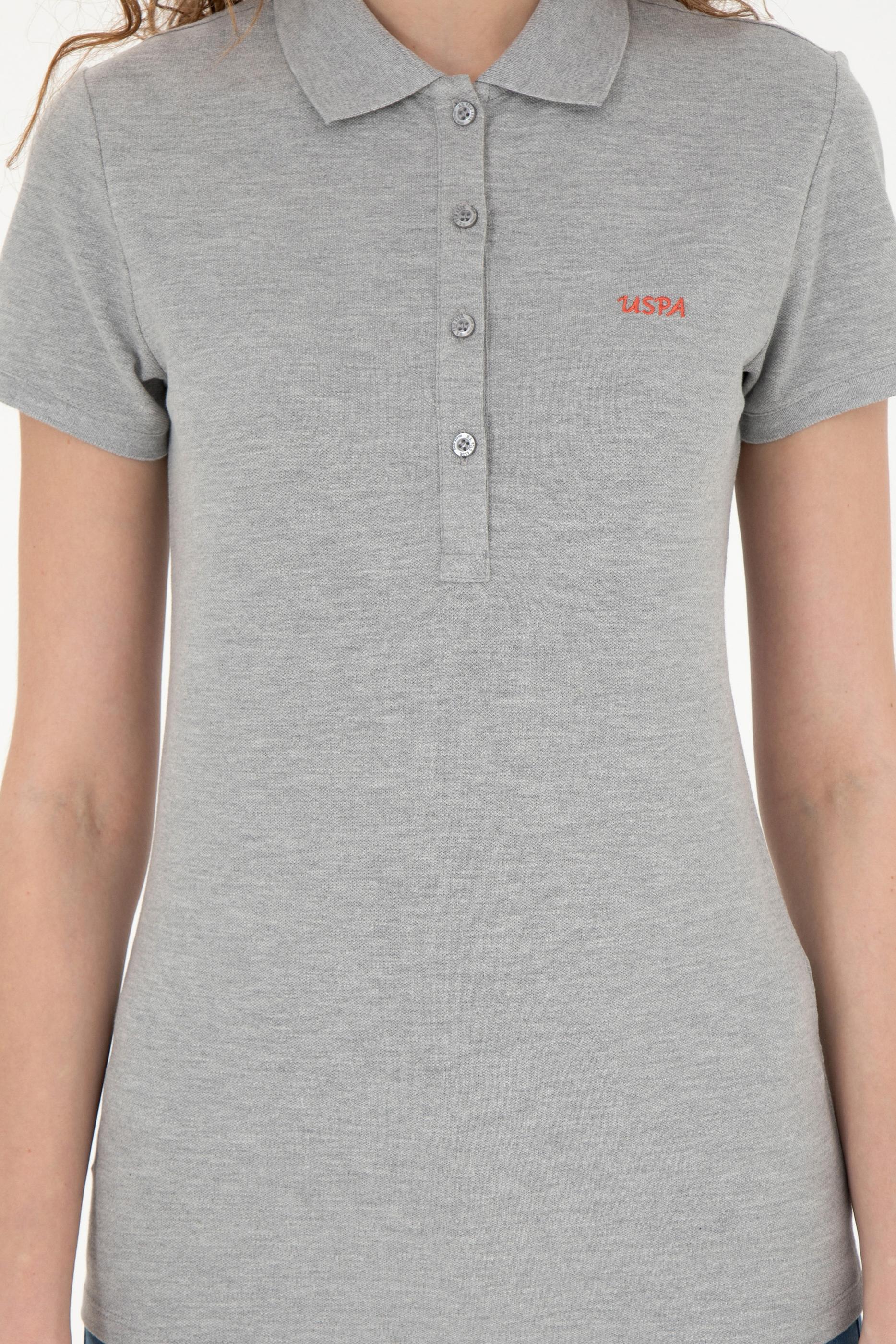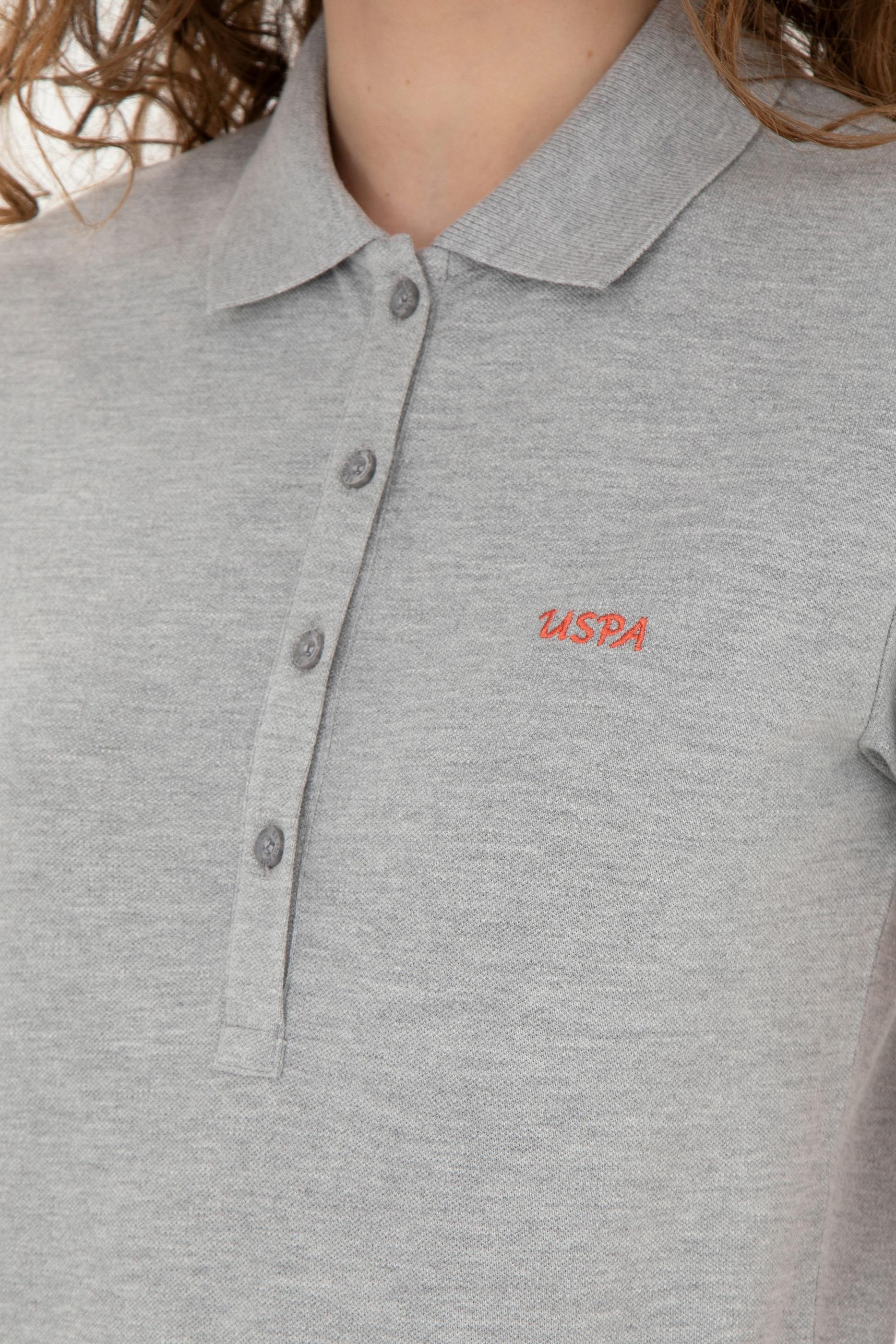 Kadın Gri Melanj Basic Polo Yaka Tişört