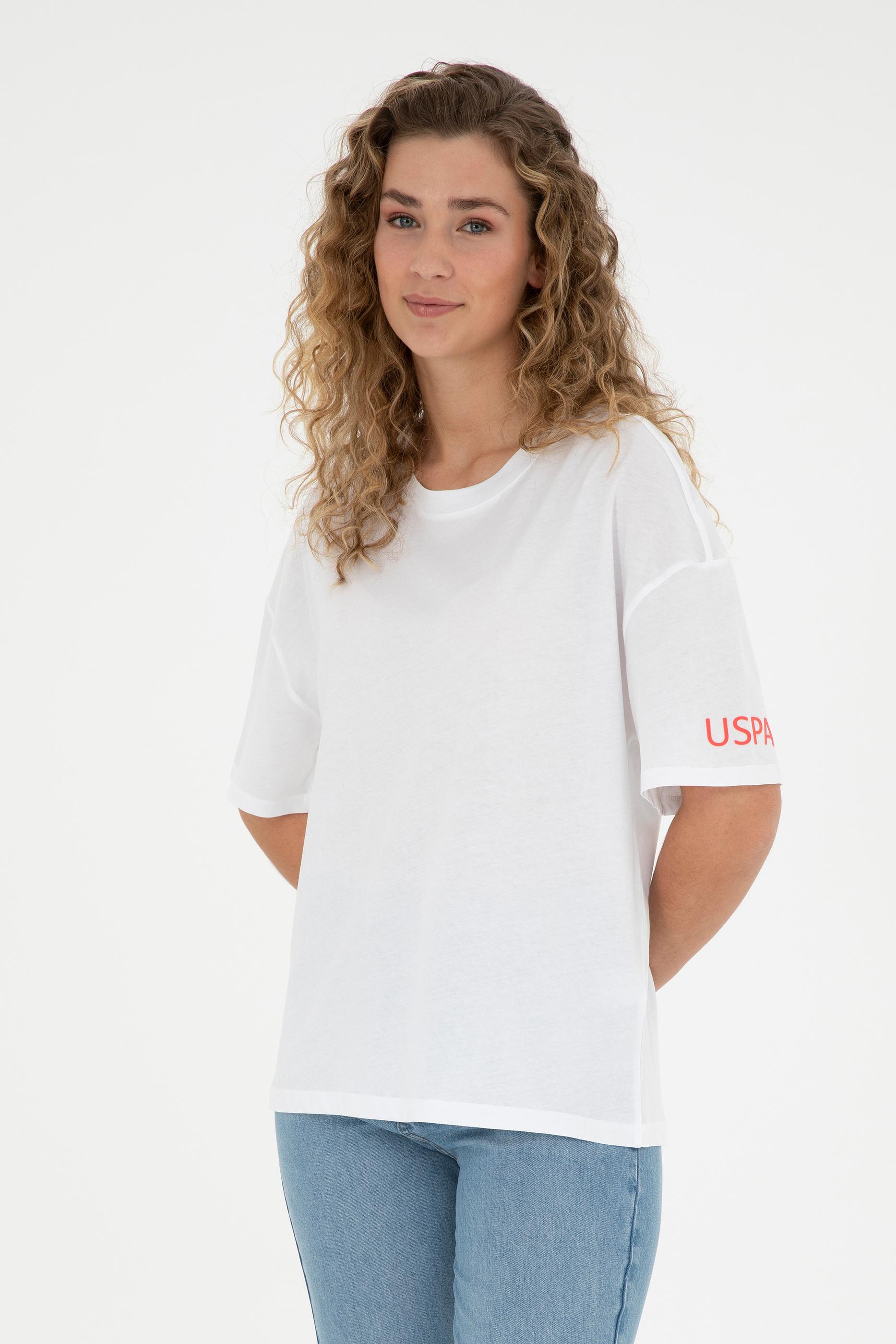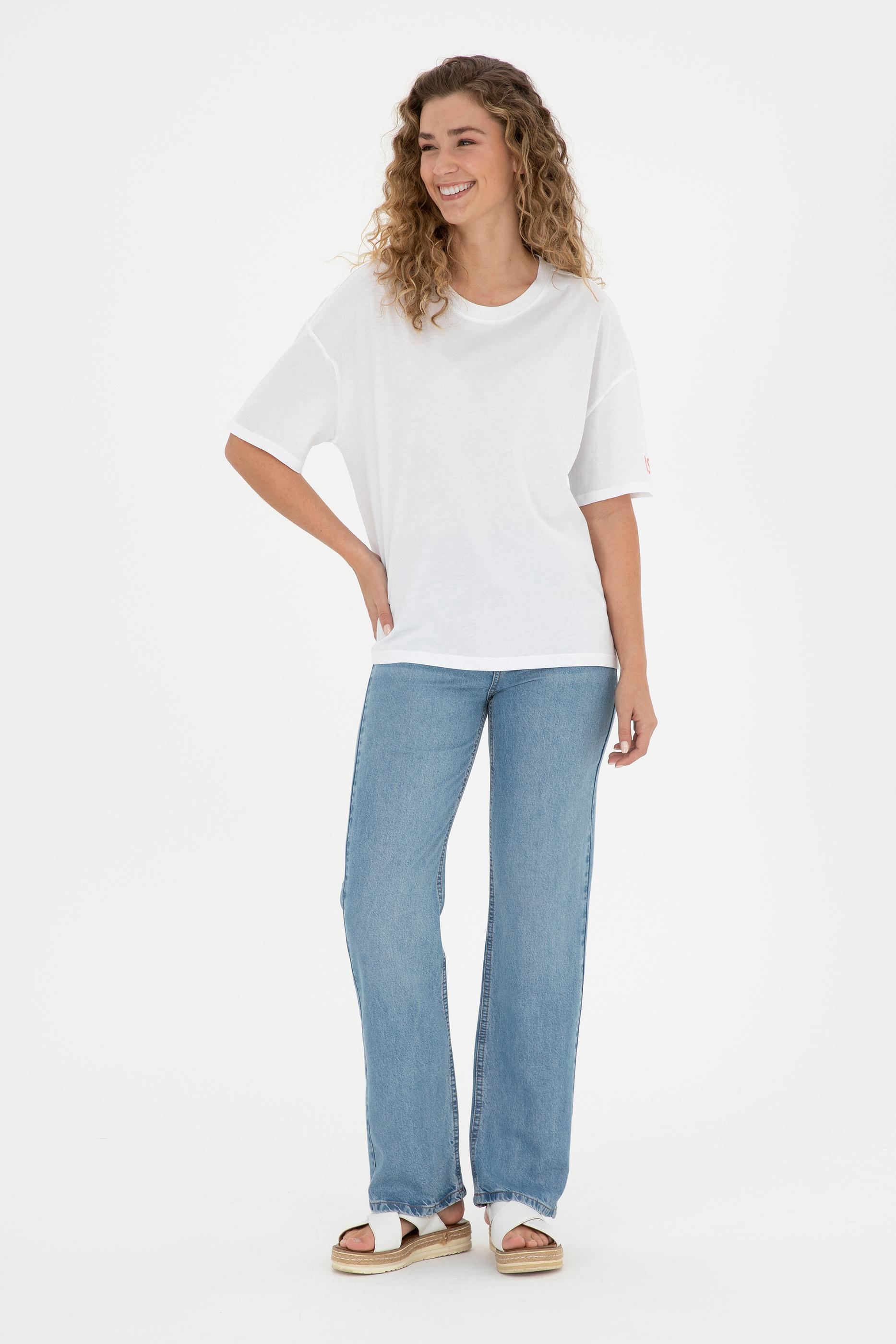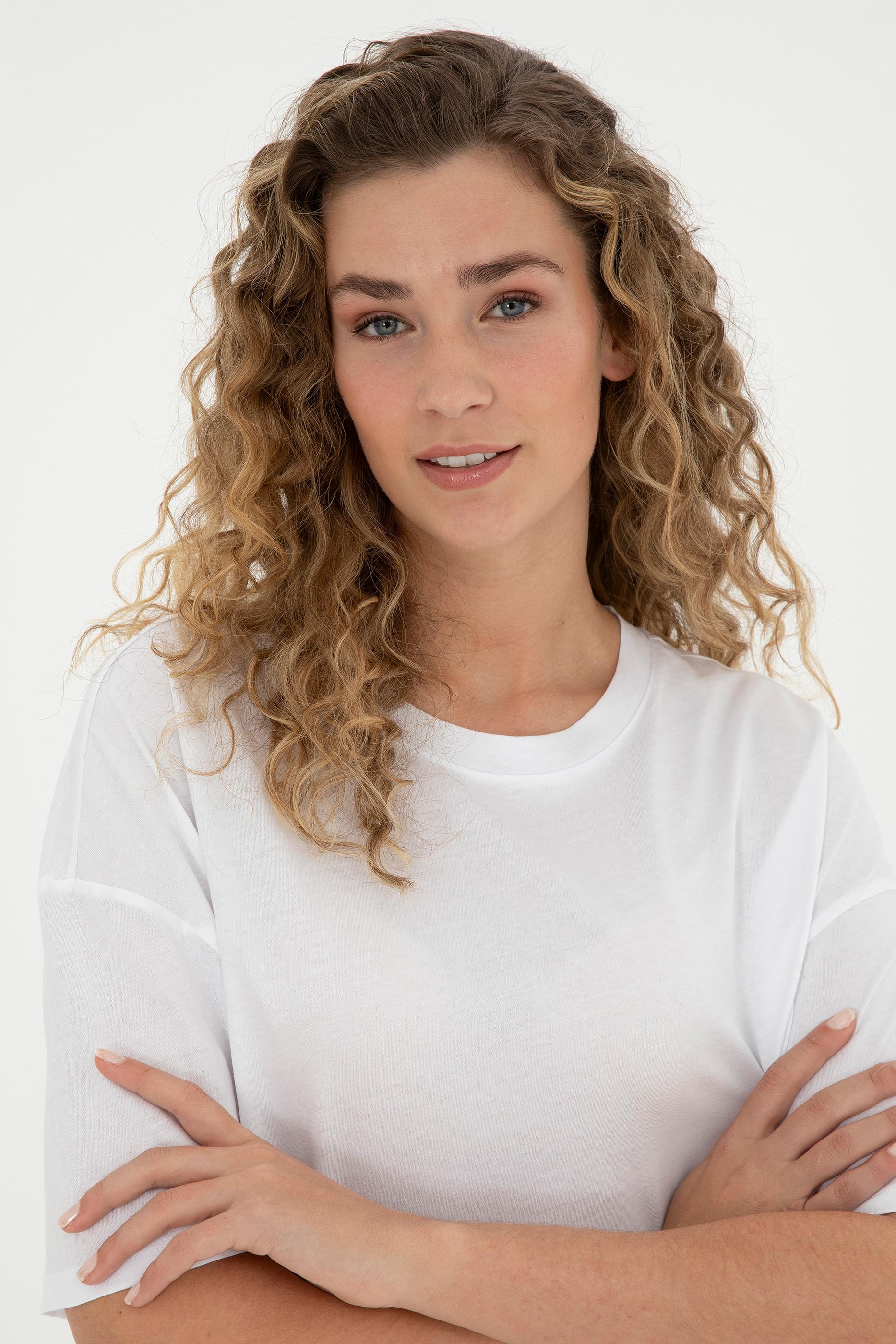 Kadın Beyaz Oversize Bisiklet Yaka Tişört