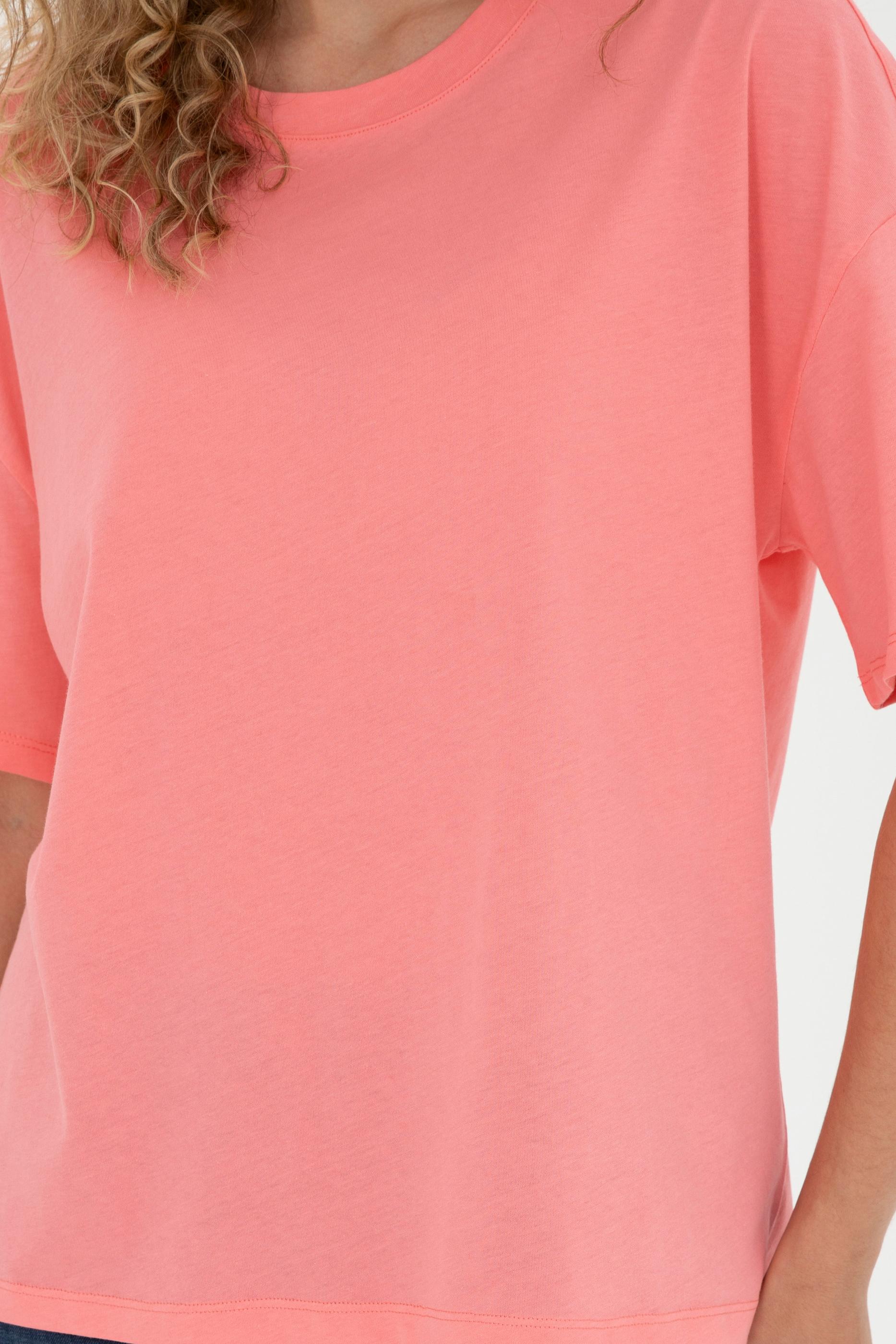 - Kadın Neon Pembe Oversize Bisiklet Yaka Tişört