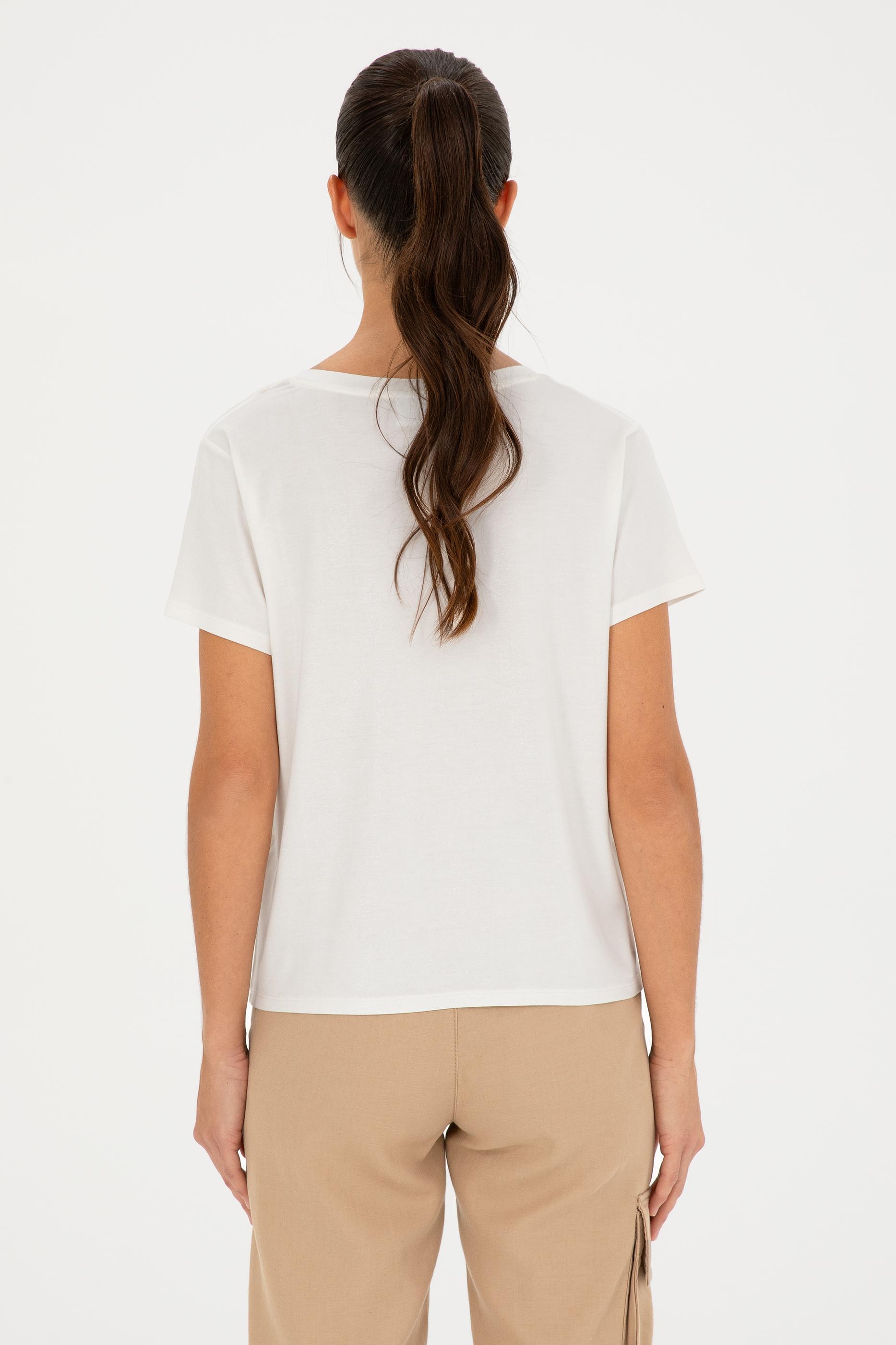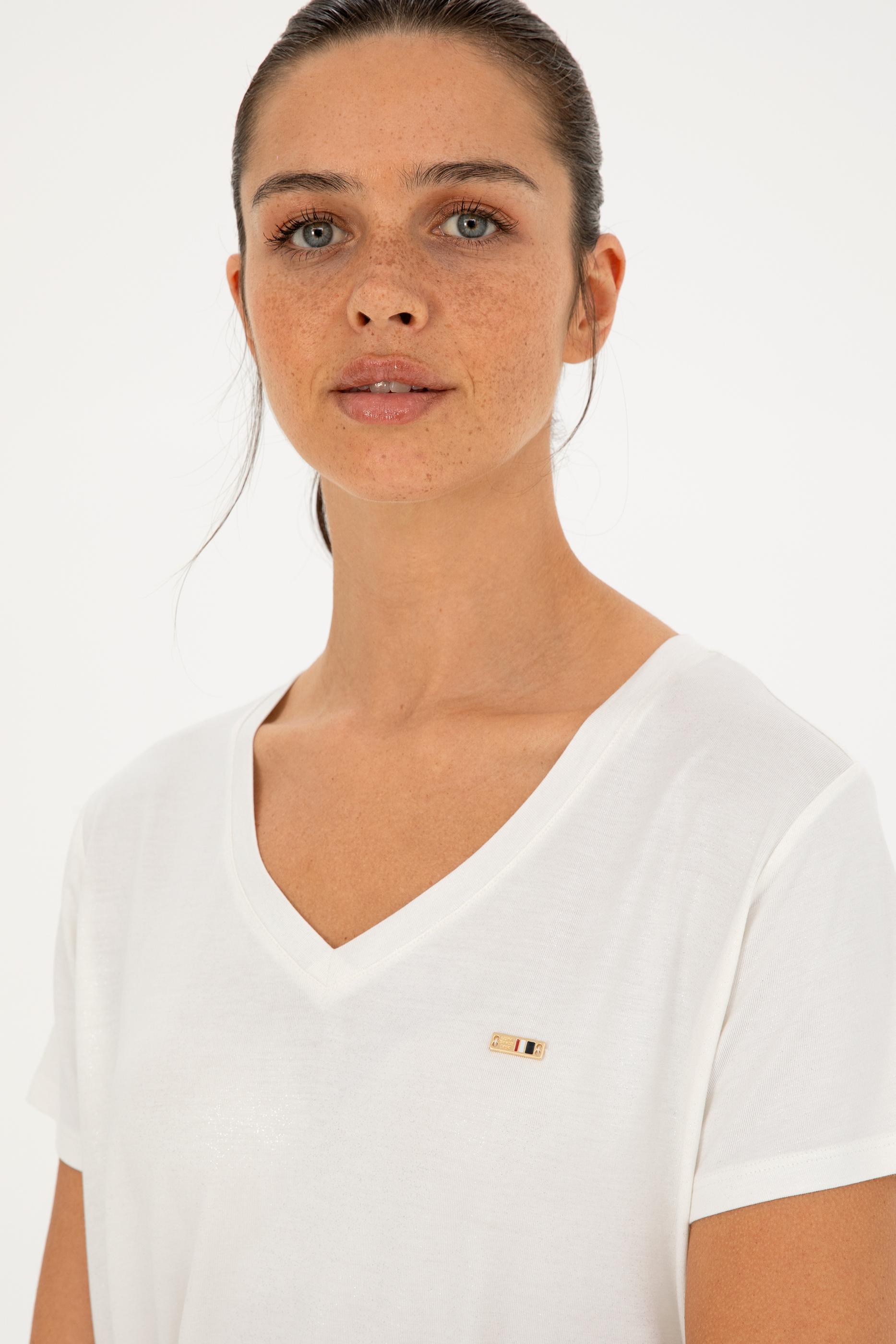Kadın Simli Beyaz V Yaka Tişört