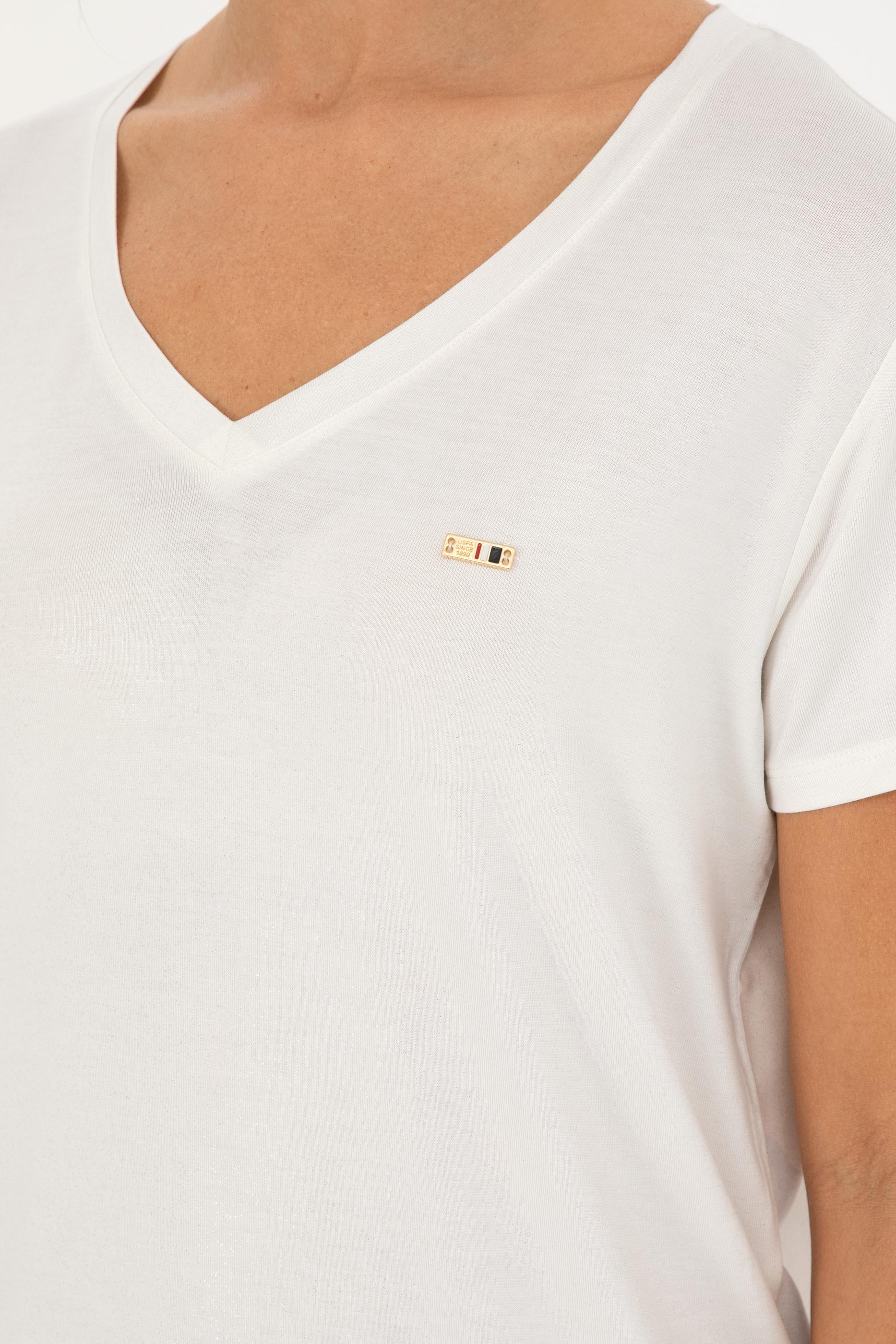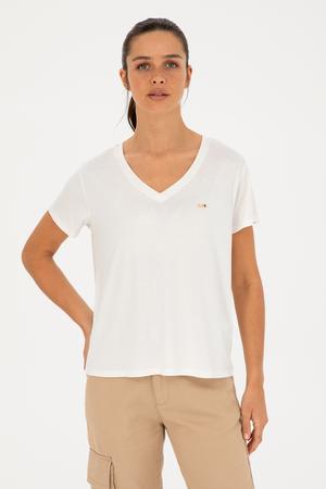 - Kadın Simli Beyaz V Yaka Tişört