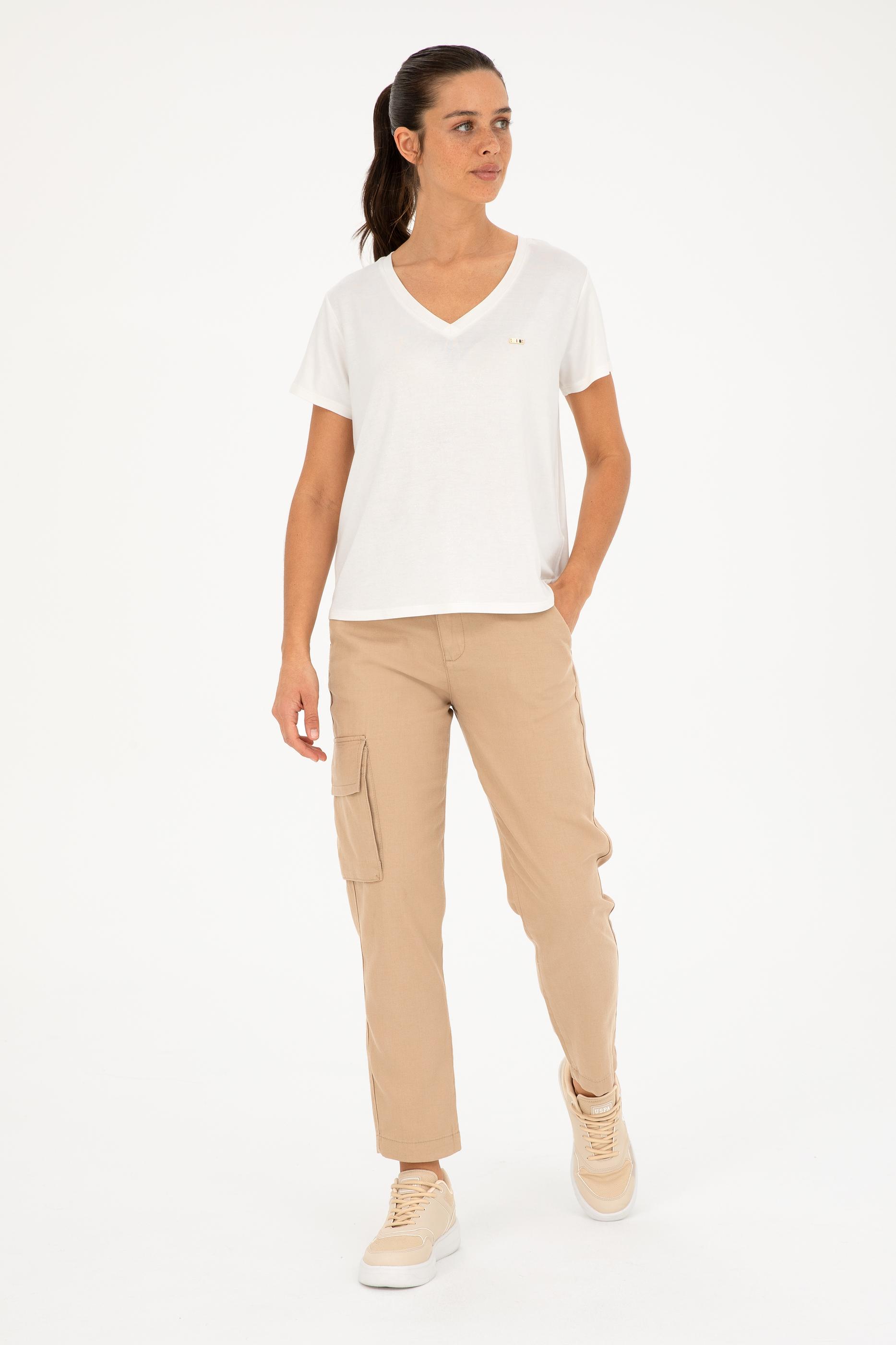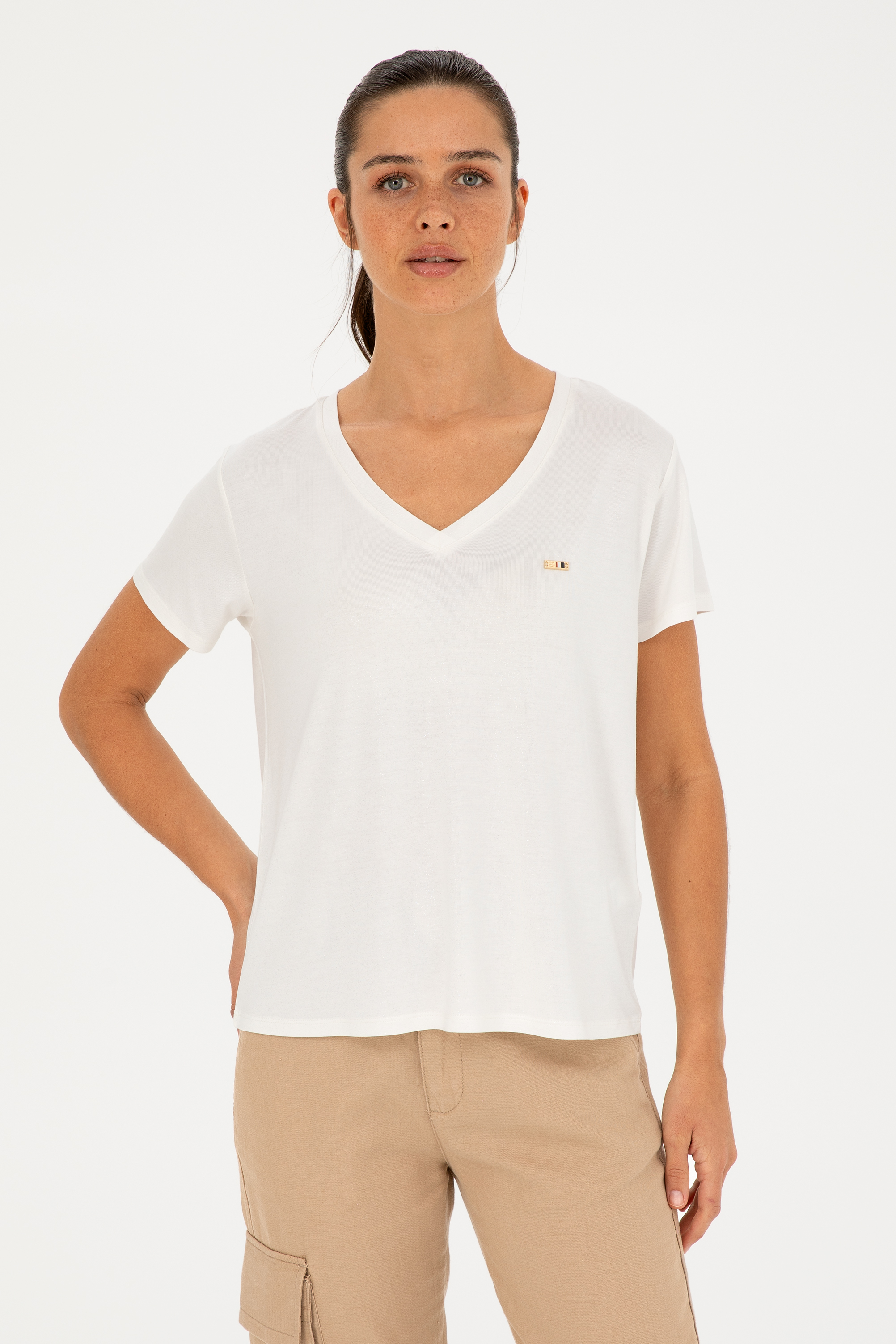 Beyaz rengin sade ve zarif duruşu her türlü kombinle uyum sağlar. Viskoz kumaşın doğal parlaklığı ve akıcılığı tişörtün genel görünümüne şıklık katar. Nefes alabilir yapısı sayesinde sıcak yaz günlerinde serin kalmanızı sağlar ve gün boyu rahat bir kullanım sunar. Minimal logo detayı tişörtün genel tasarımını tamamlar ve şıklığını pekiştirir.