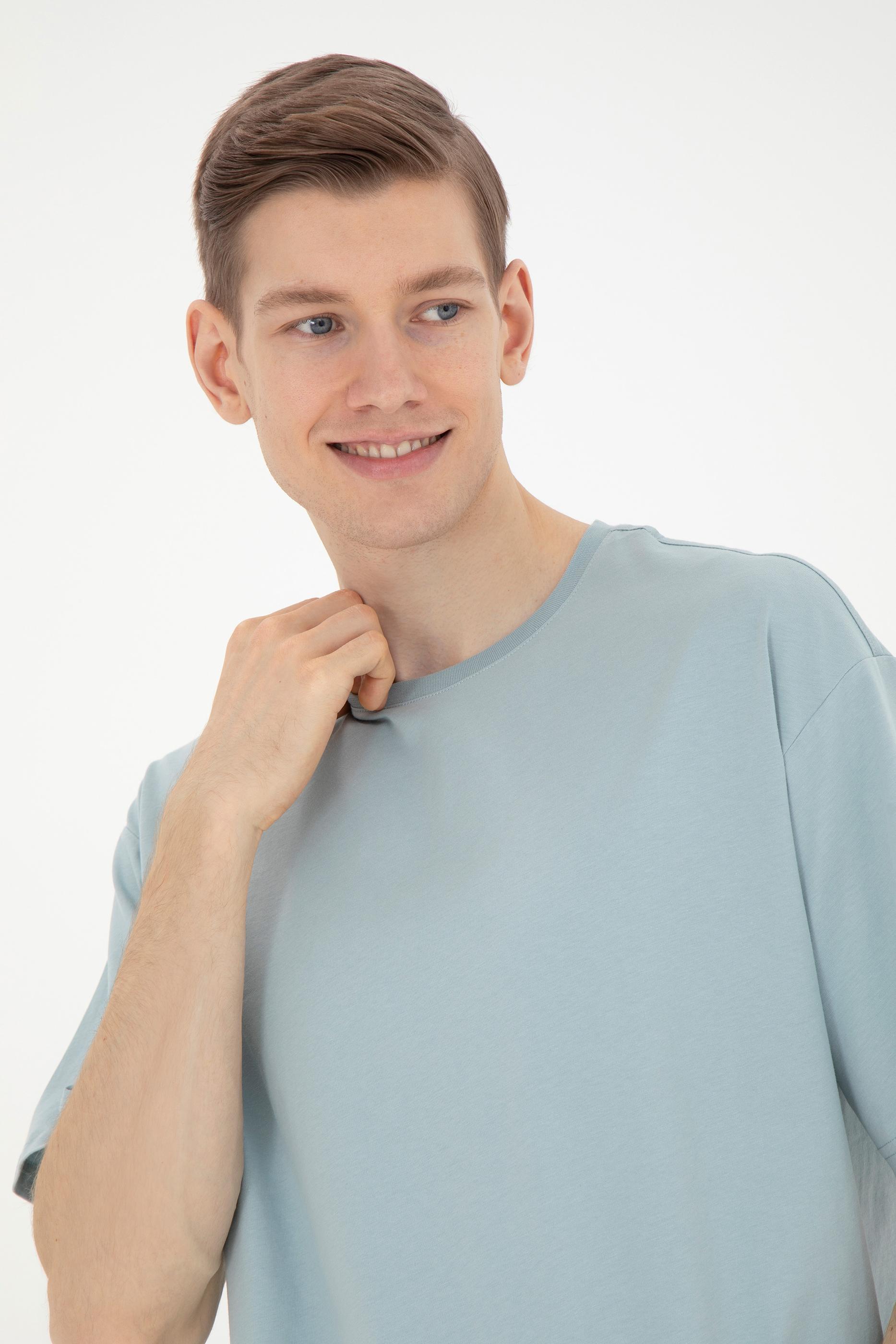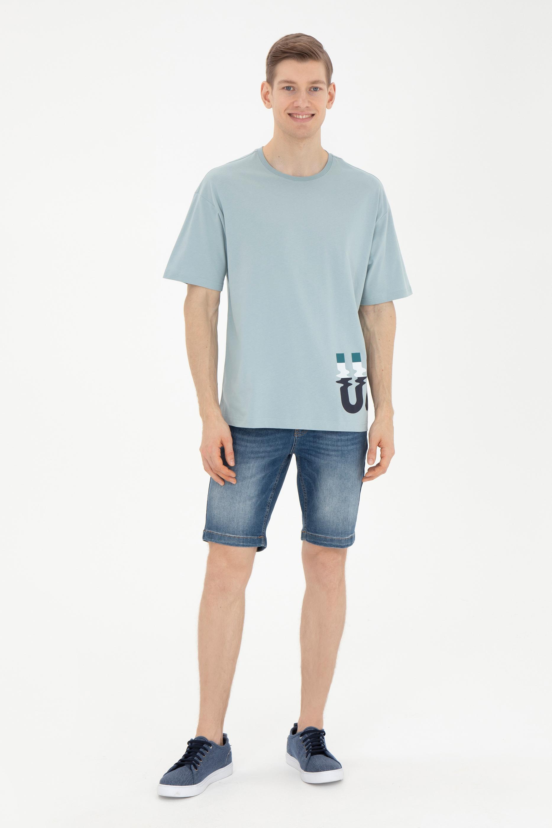 Su yeşili tişörtün alt kısmındaki baskı detayı sade tasarıma hareketlilik katıyor. Bu baskılar tişörte özgün bir görünüm kazandırarak sıradanlıktan uzaklaştırıyor. %100 pamuktan üretilmiş olan tişört, cildinizin nefes almasını sağlar. Comfort fit kalıbı sayesinde vücudu sarmadan rahat bir kullanım sunar. Bisiklet yaka tasarımı ise tişörtü hem spor hem de günlük kombinlerde rahatlıkla kullanabileceğiniz bir parça haline getirir.