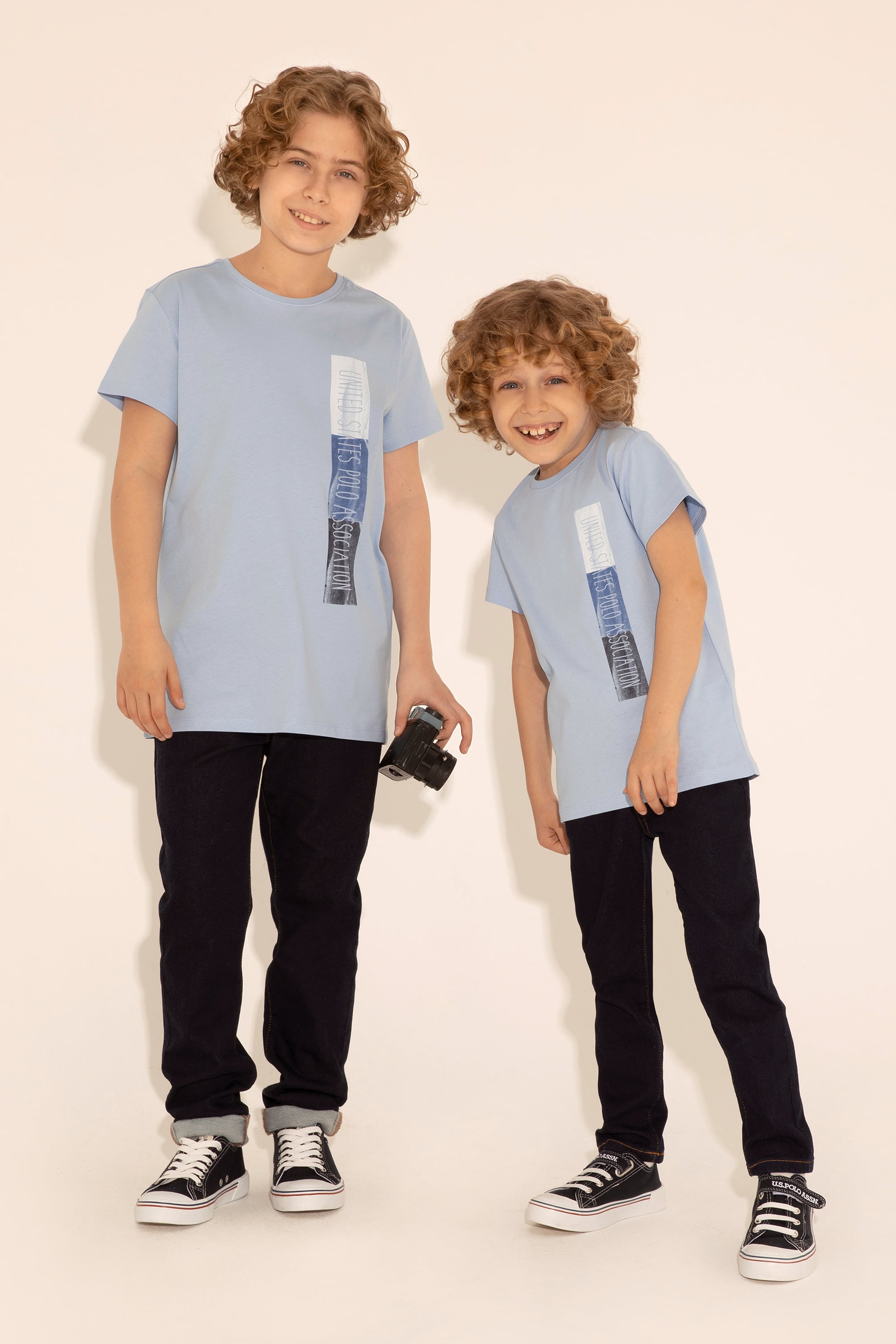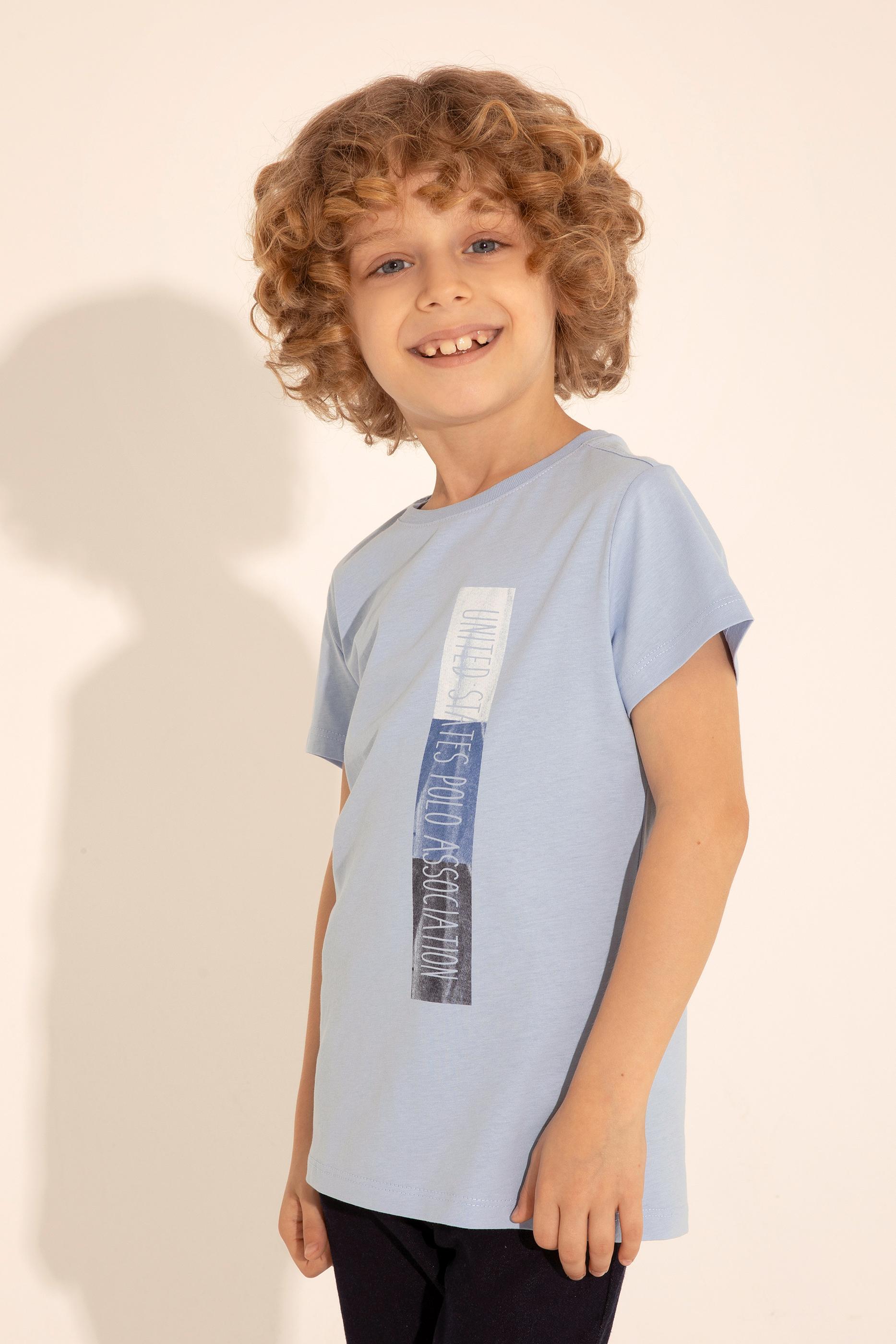 Erkek Çocuk Açık Mavi Bisiklet Yaka Tişört
