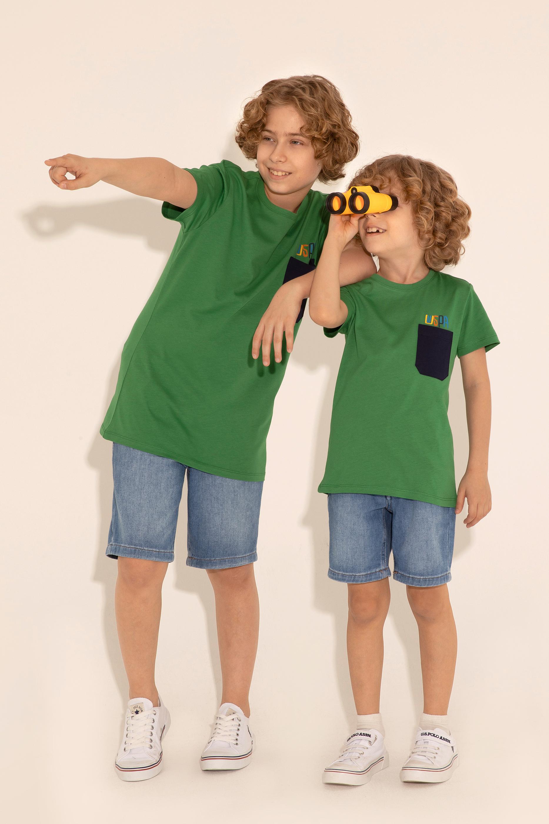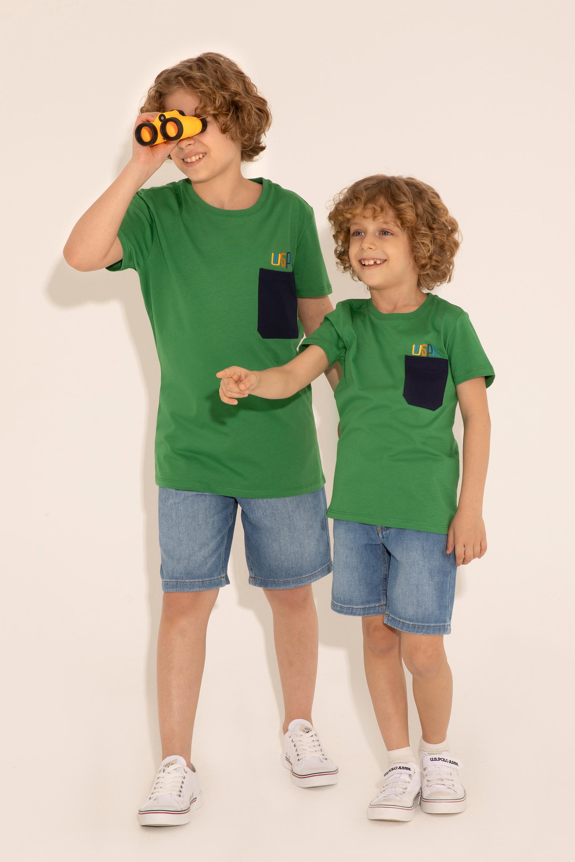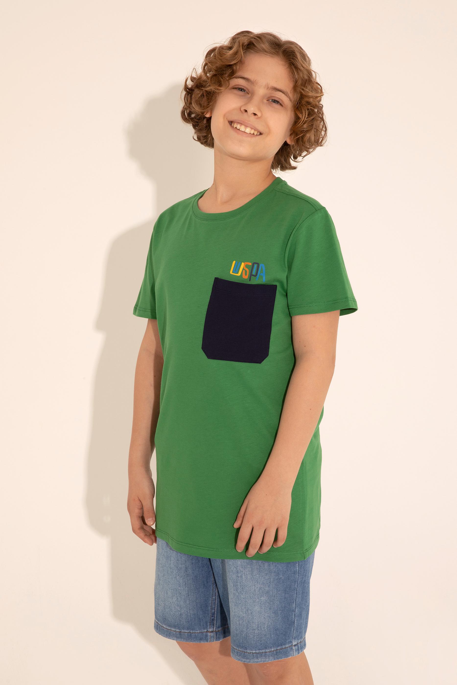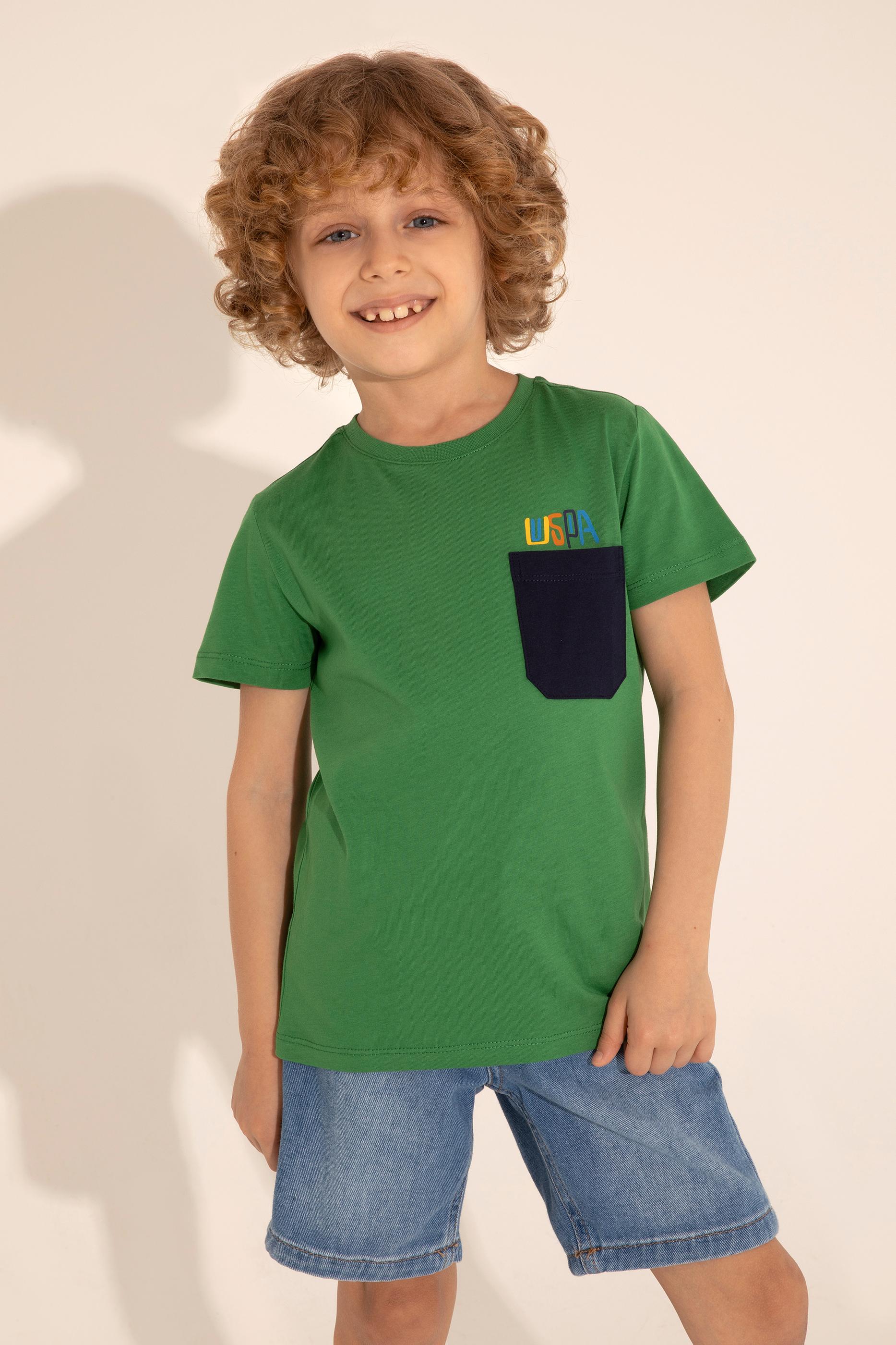 Erkek Çocuk Yeşil Bisiklet Yaka Tişört