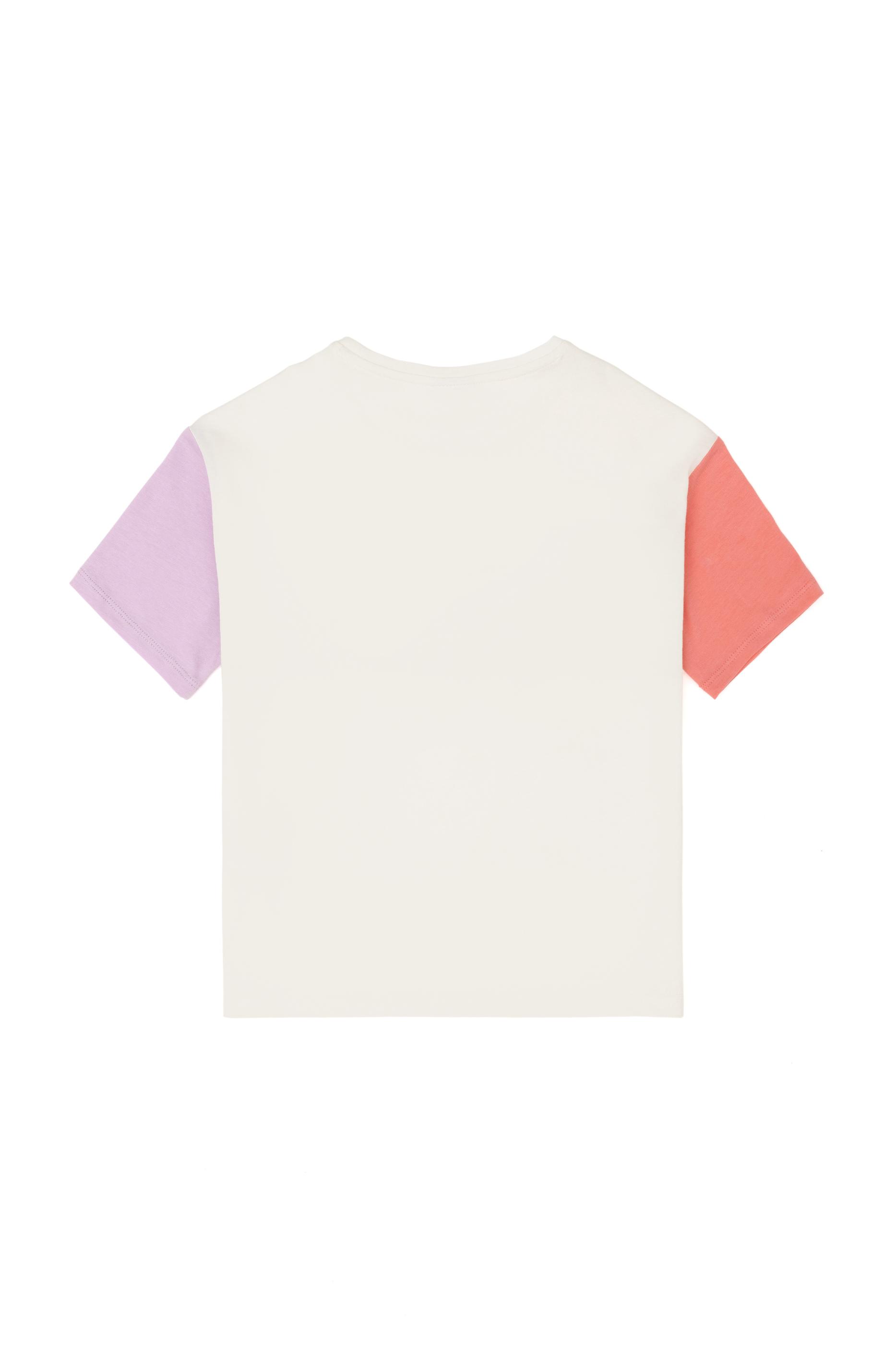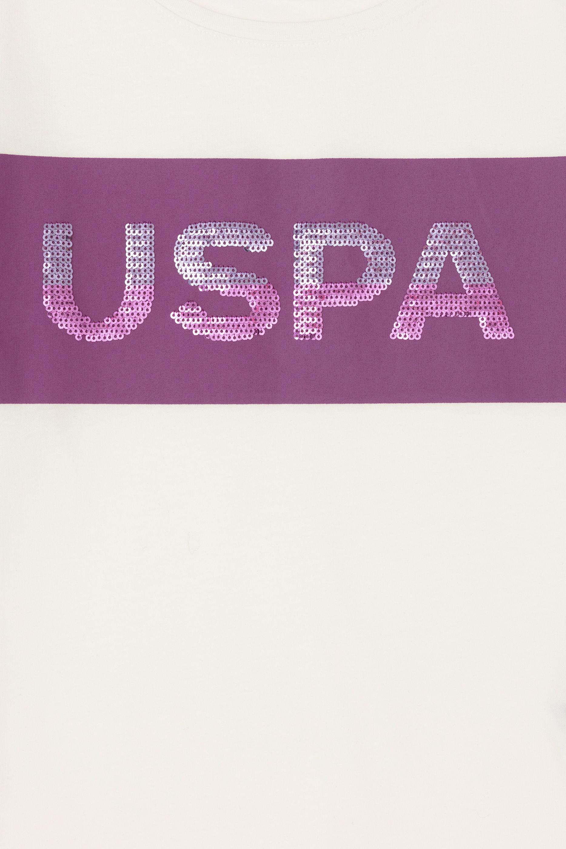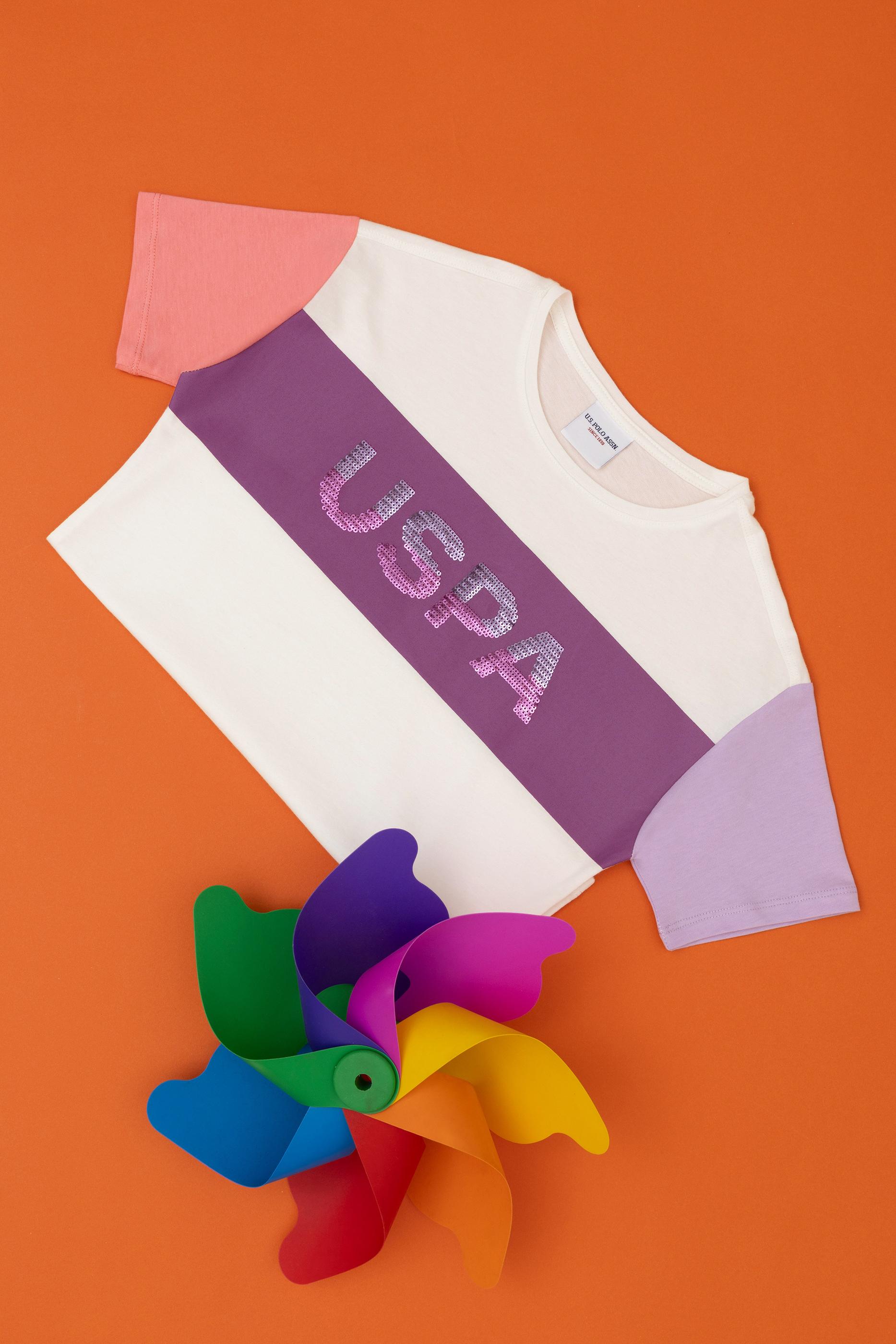 Tişörtün ön yüzünde yer alan canlı renklerdeki USPA baskısı, enerjik bir görünüm katarken, tişörtün ekru ana rengi ile mükemmel bir kontrast oluşturur. Renk bloklu kolları ve gövdesiyle fark yaratan tasarımı, çocukların stilini bir adım öne taşır. Bisiklet yaka detayı, rahat bir giyim deneyimi sunar ve tişörtün çok yönlü kombin seçeneklerini artırır.