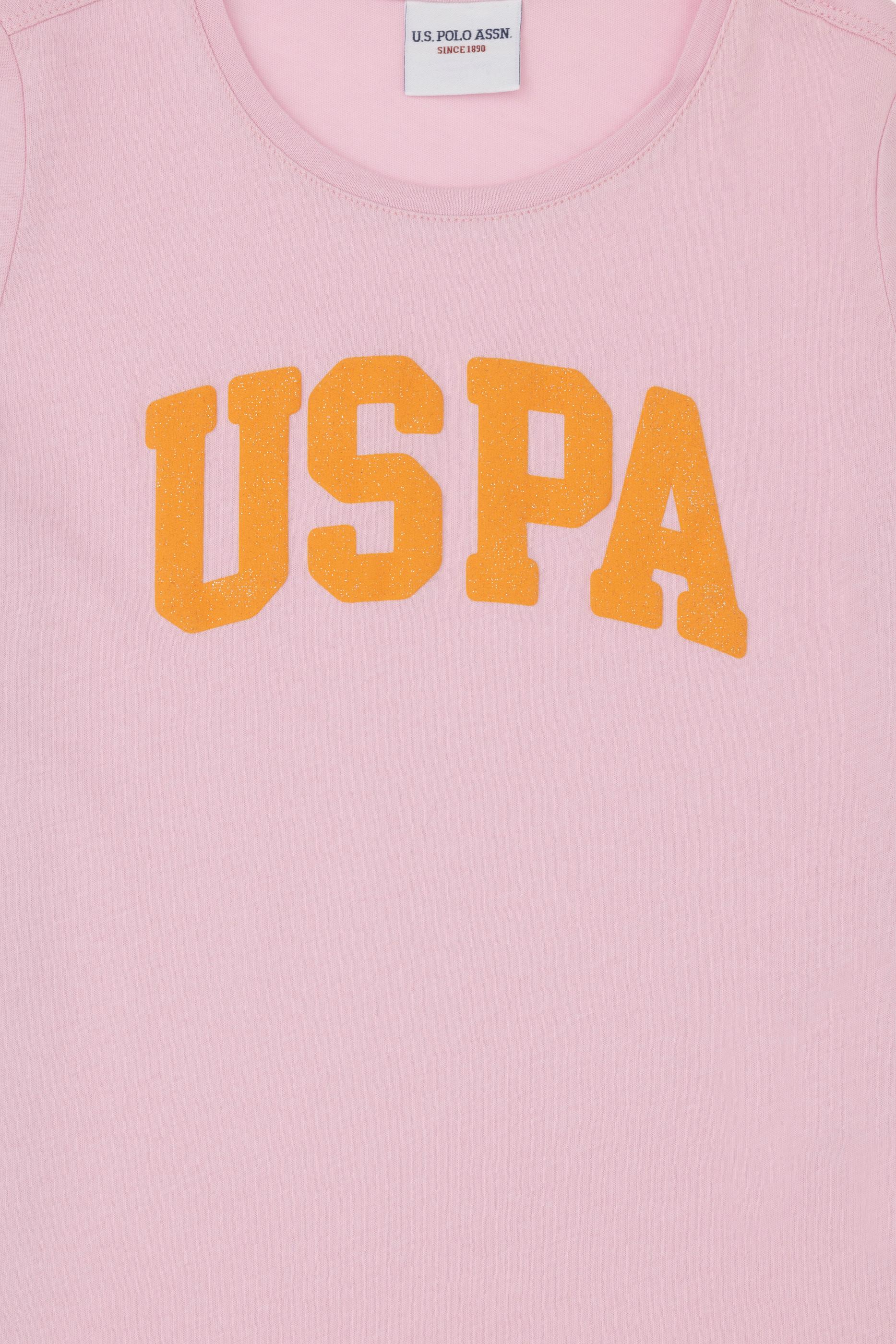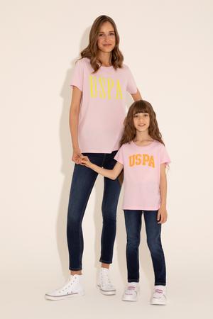 Tişörtün ön yüzünde yer alan büyük “USPA” baskısı, enerjik bir hava katarken, sarı rengiyle pembe tonuna hoş bir kontrast oluşturur. Bisiklet yaka detayı, tişörte sade ama dikkat çekici bir stil kazandırır, günlük kullanım için idealdir. Tişört, okul günlerinden hafta sonu aktivitelerine, parkta oyun oynarken ya da arkadaş buluşmalarında rahatlıkla tercih edilebilir.