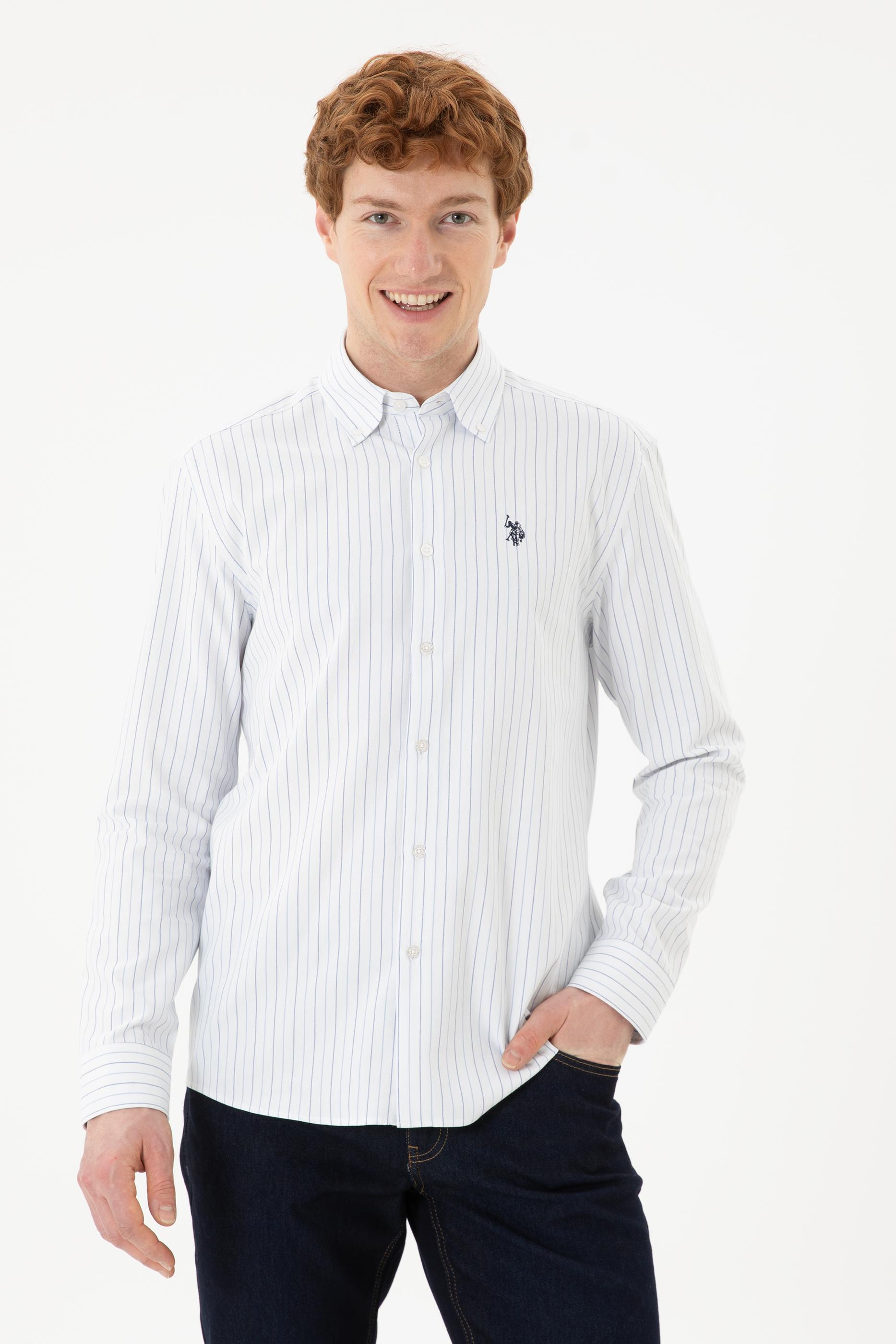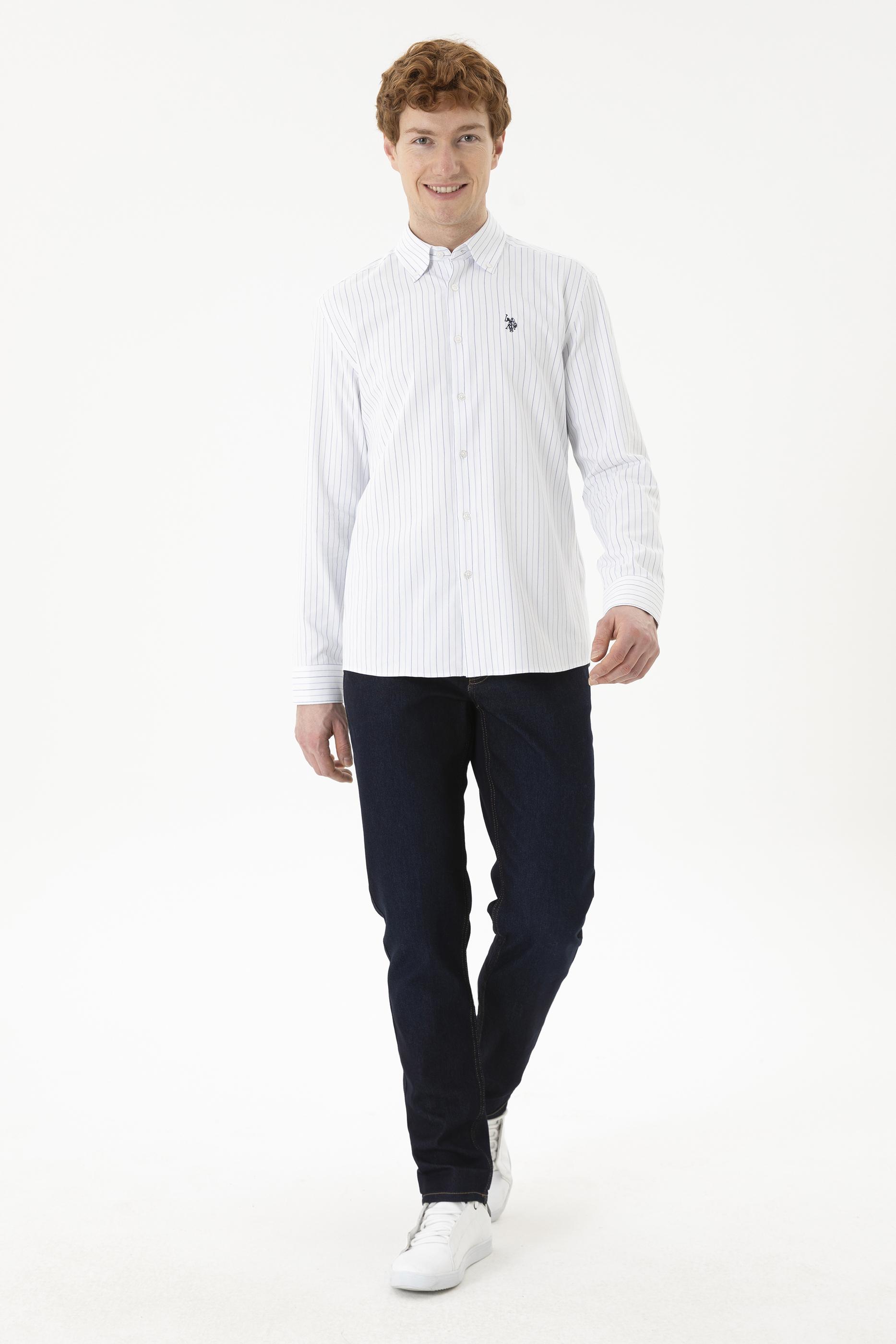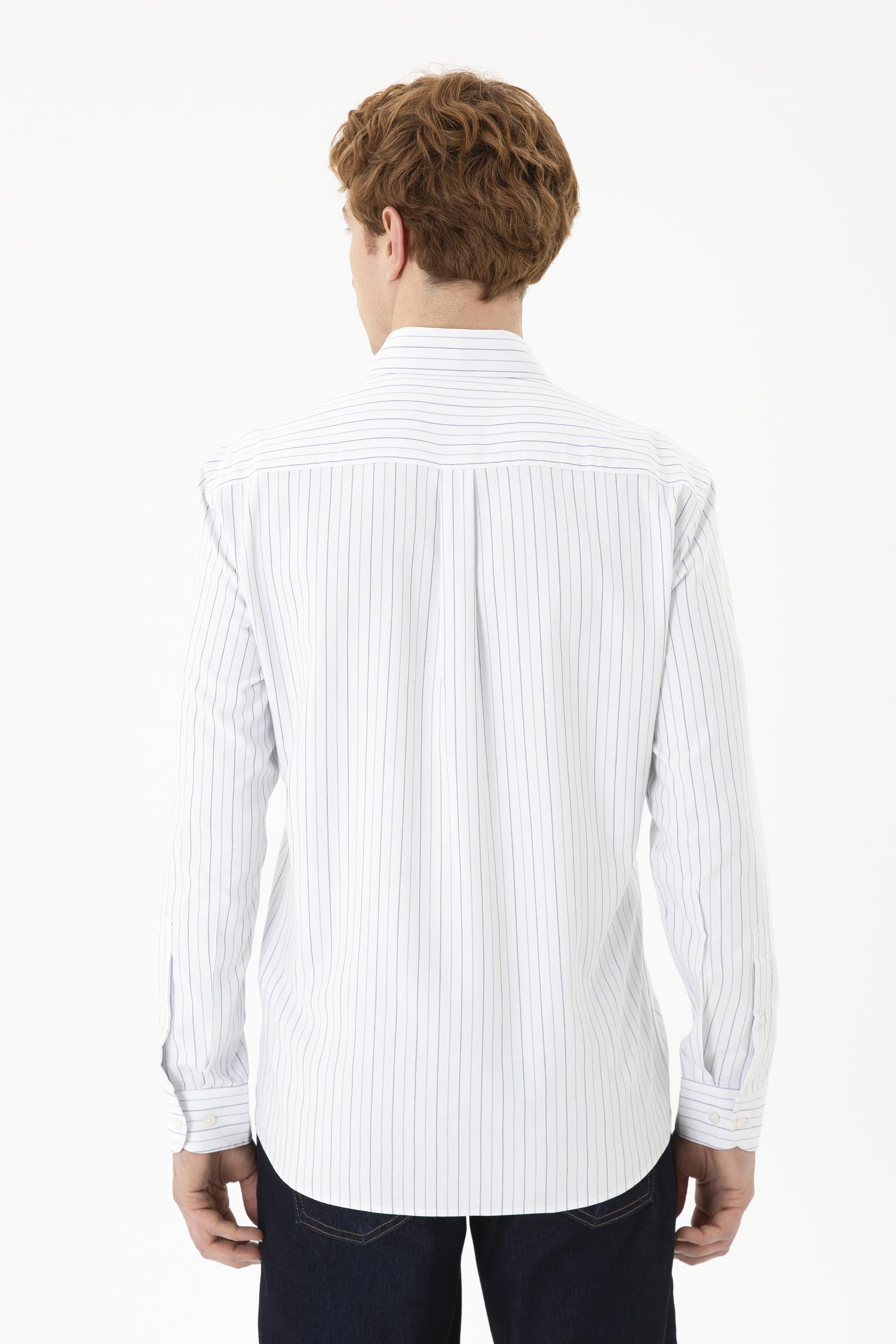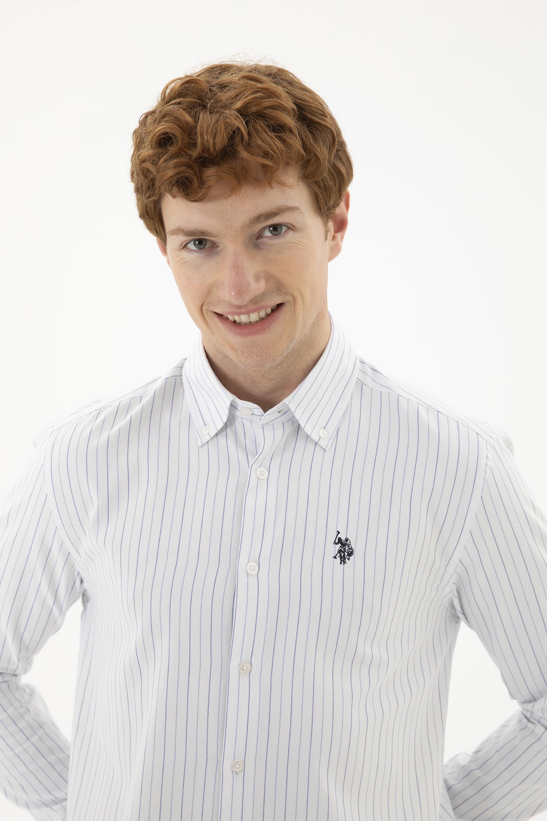 - Erkek Mavi Çizgili Beyaz Gömlek