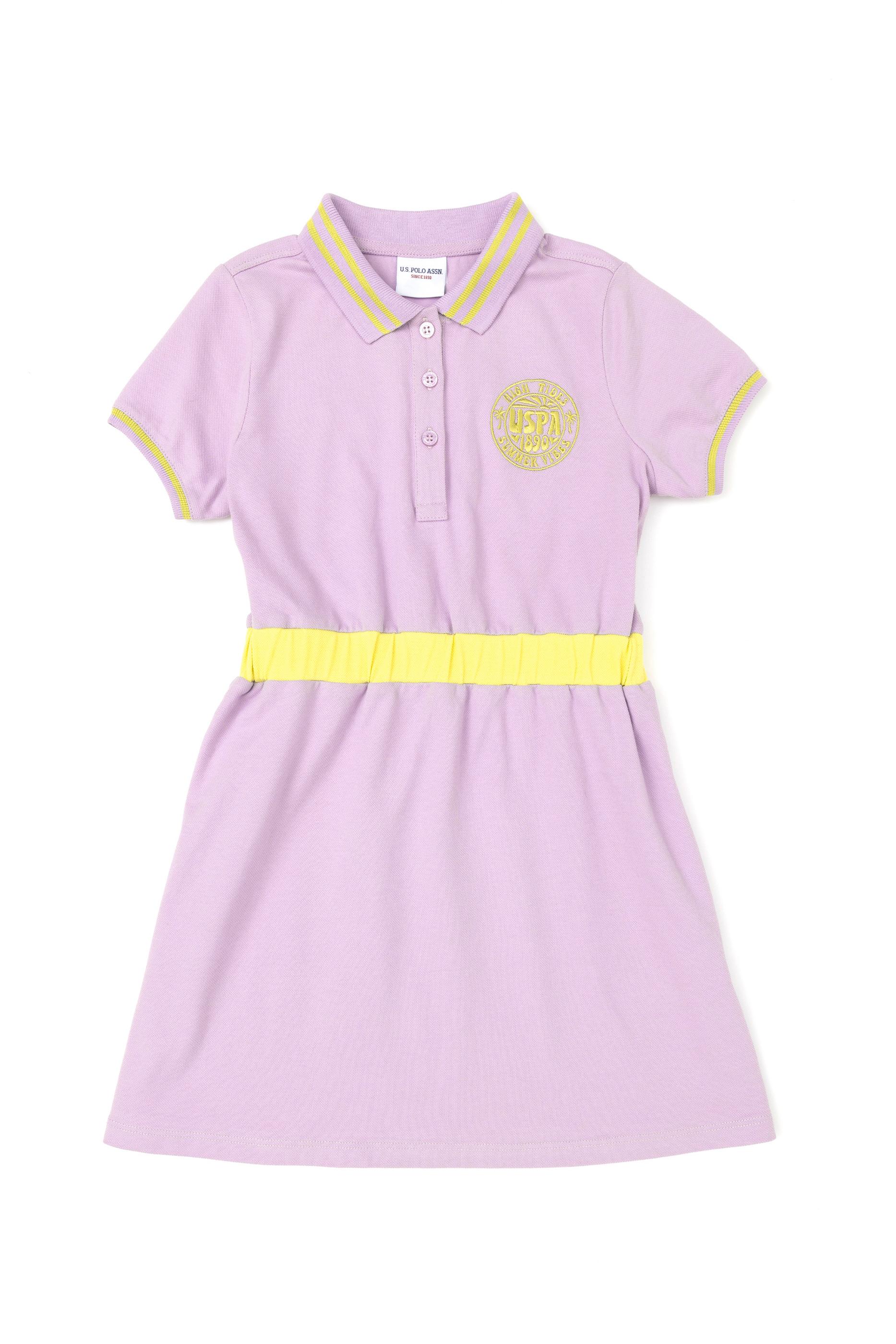 - Kız Çocuk Lila Polo Yaka Kısa Kollu Örme Elbise