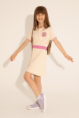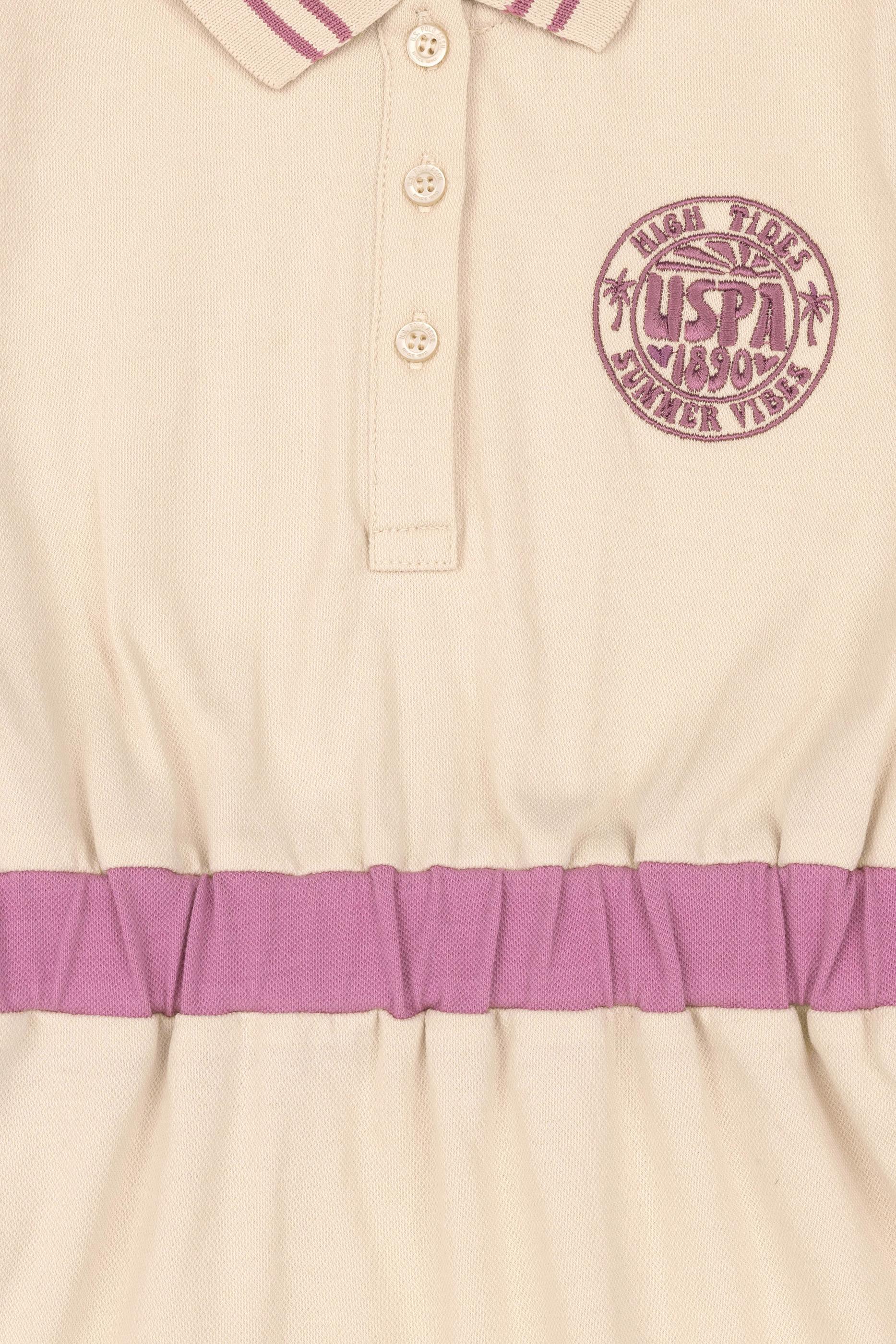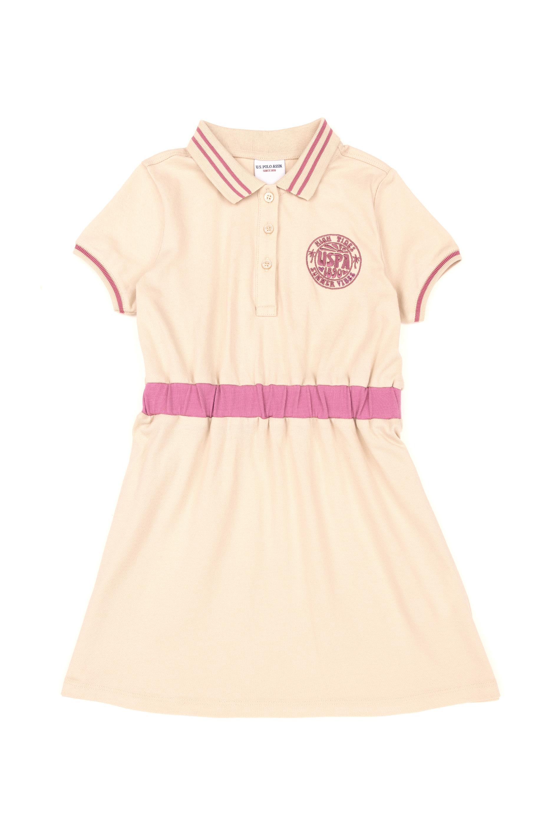 - Kız Çocuk Krem Polo Yaka Kısa Kollu Örme Elbise