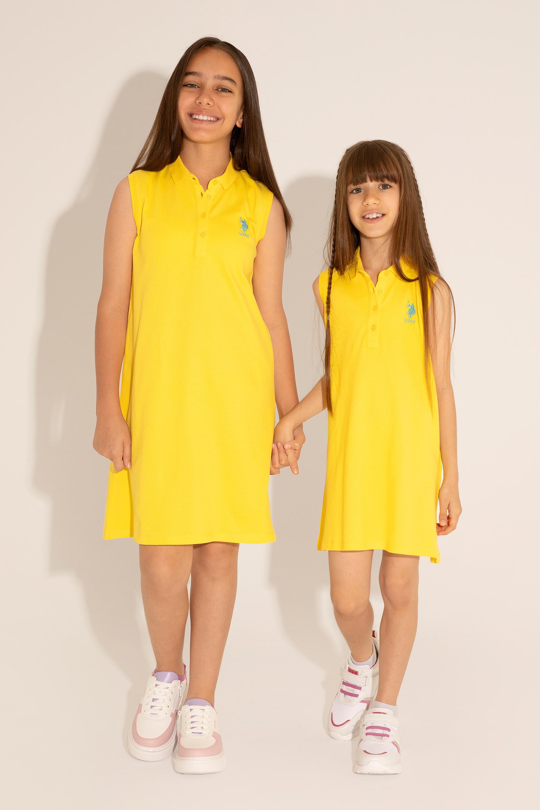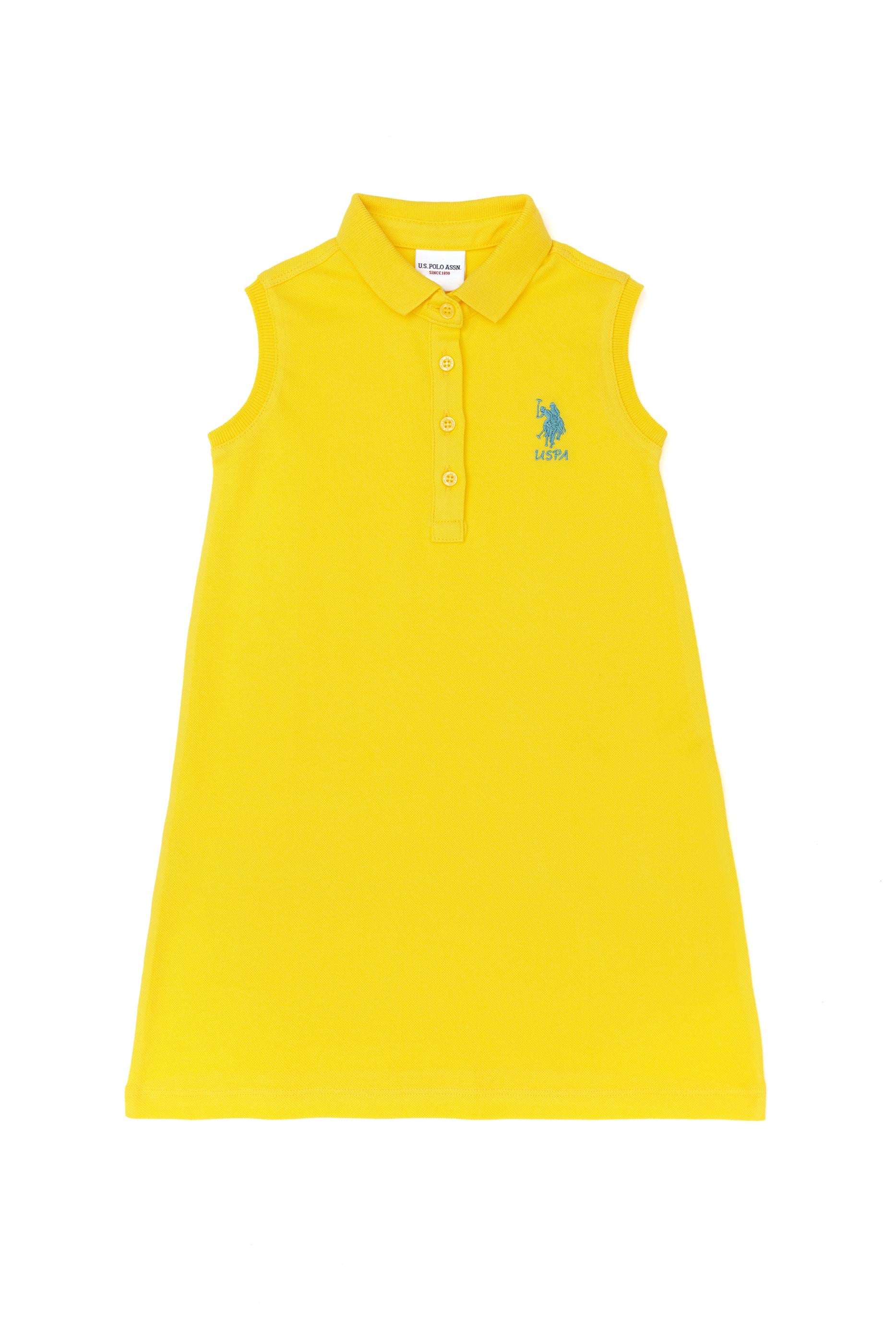 - Kız Çocuk Sarı Polo Yaka Kolsuz Örme Elbise