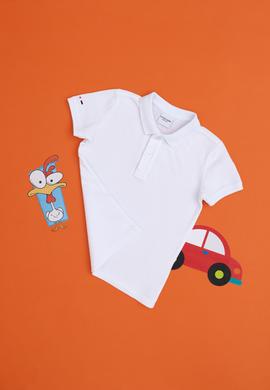 - Erkek Çocuk Beyaz Basic Polo Yaka Tişört