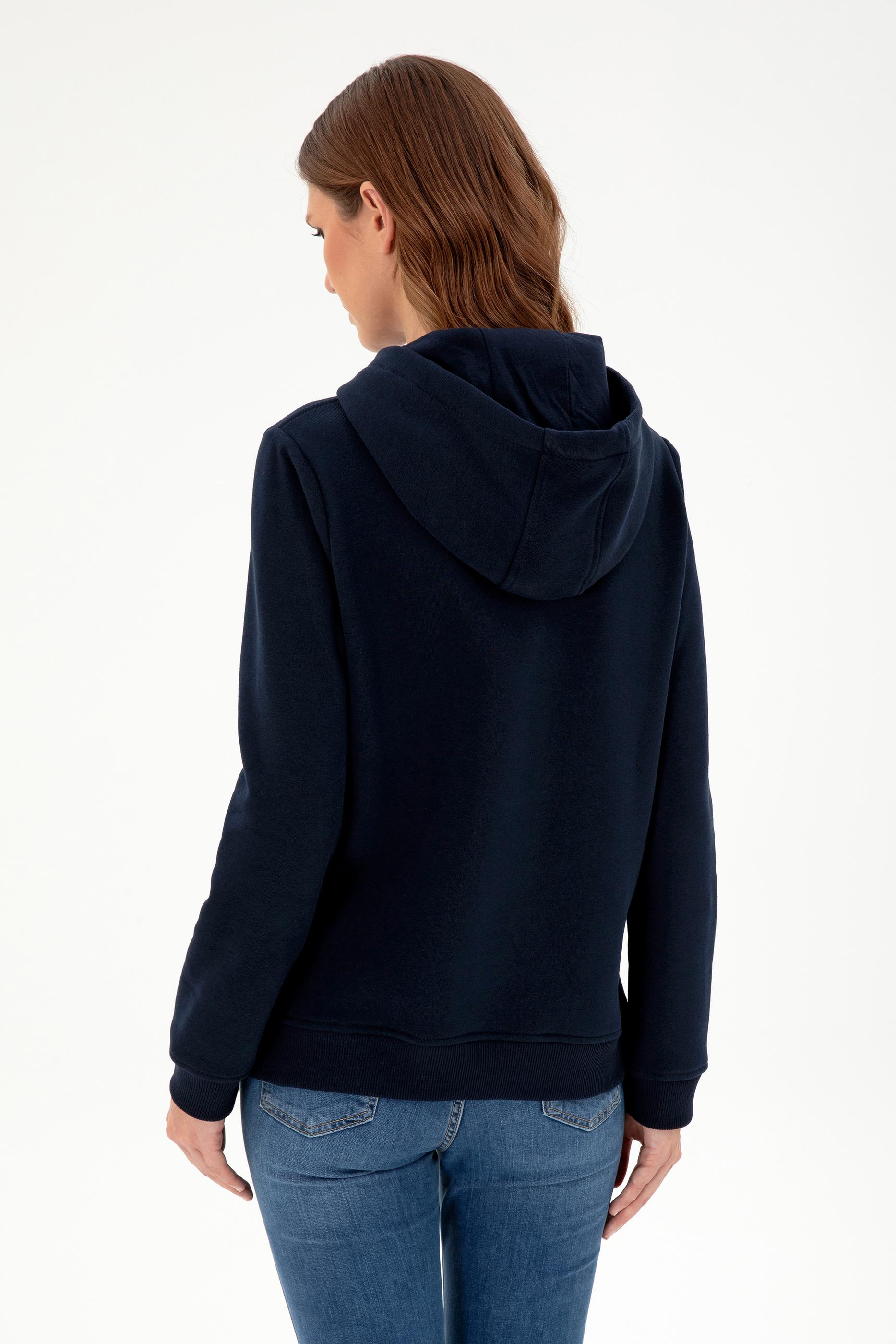 Kadın Lacivert Basic Kapüşonlu Sweatshirt