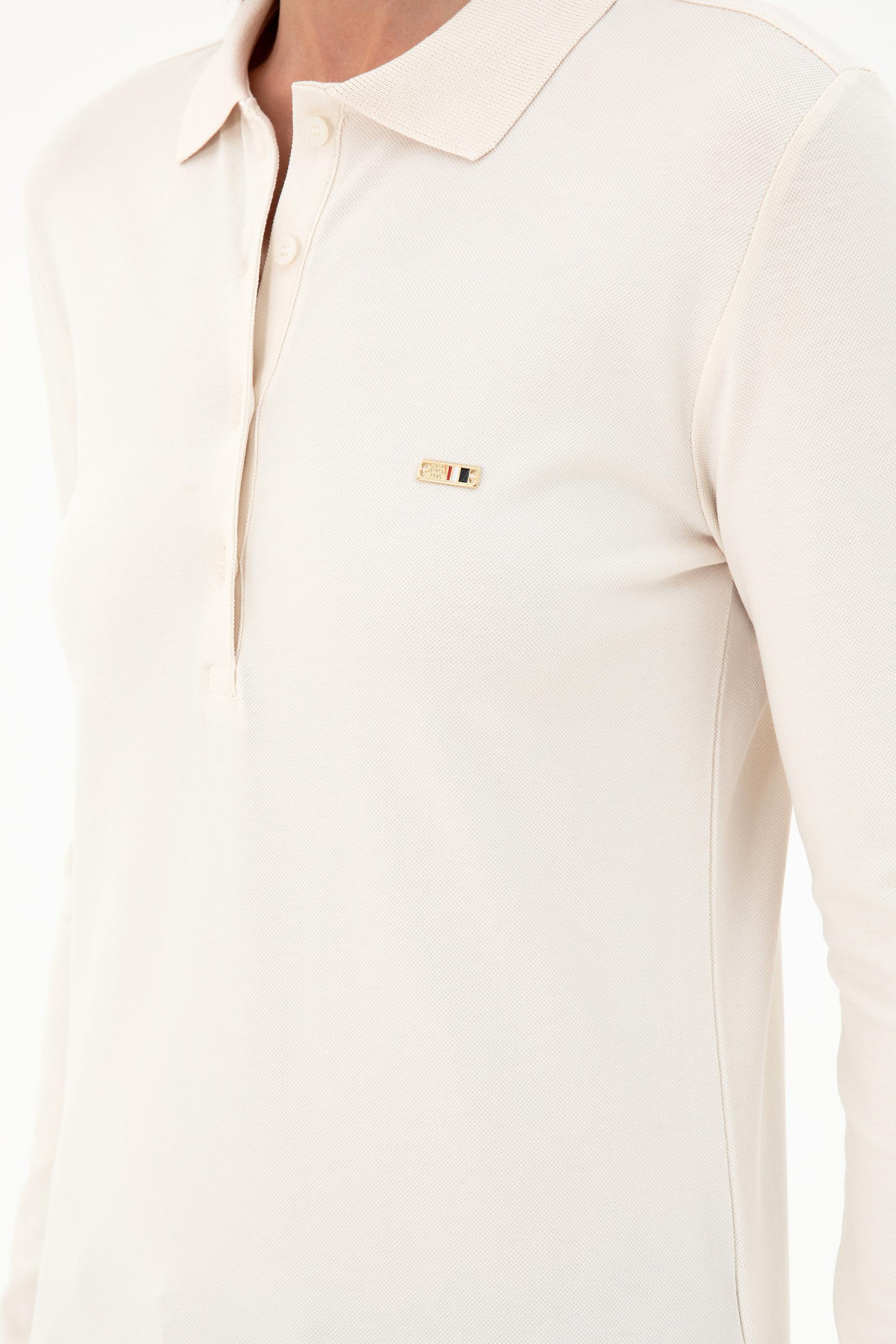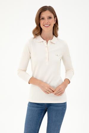 Kadın Krem Basic Polo Yaka Sweatshirt