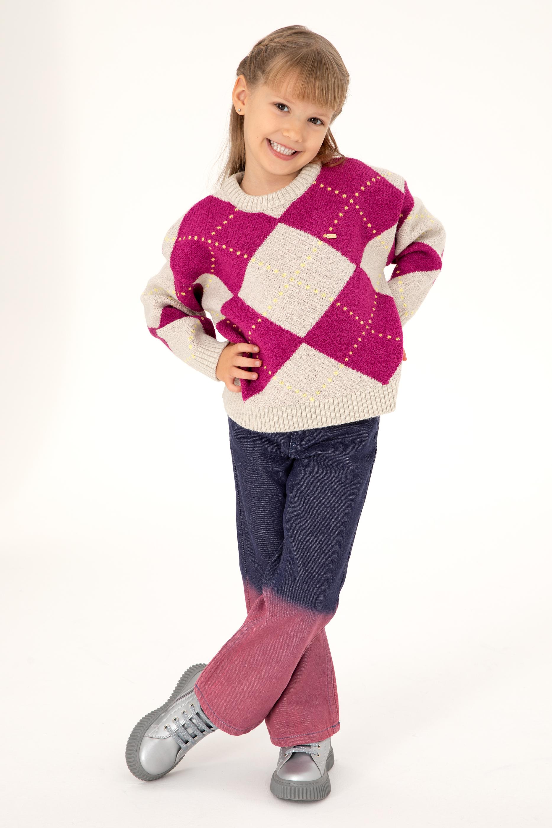 Kız Çocuk Taş Bisiklet Yaka Kazak