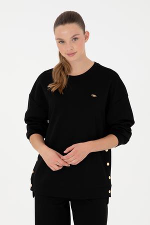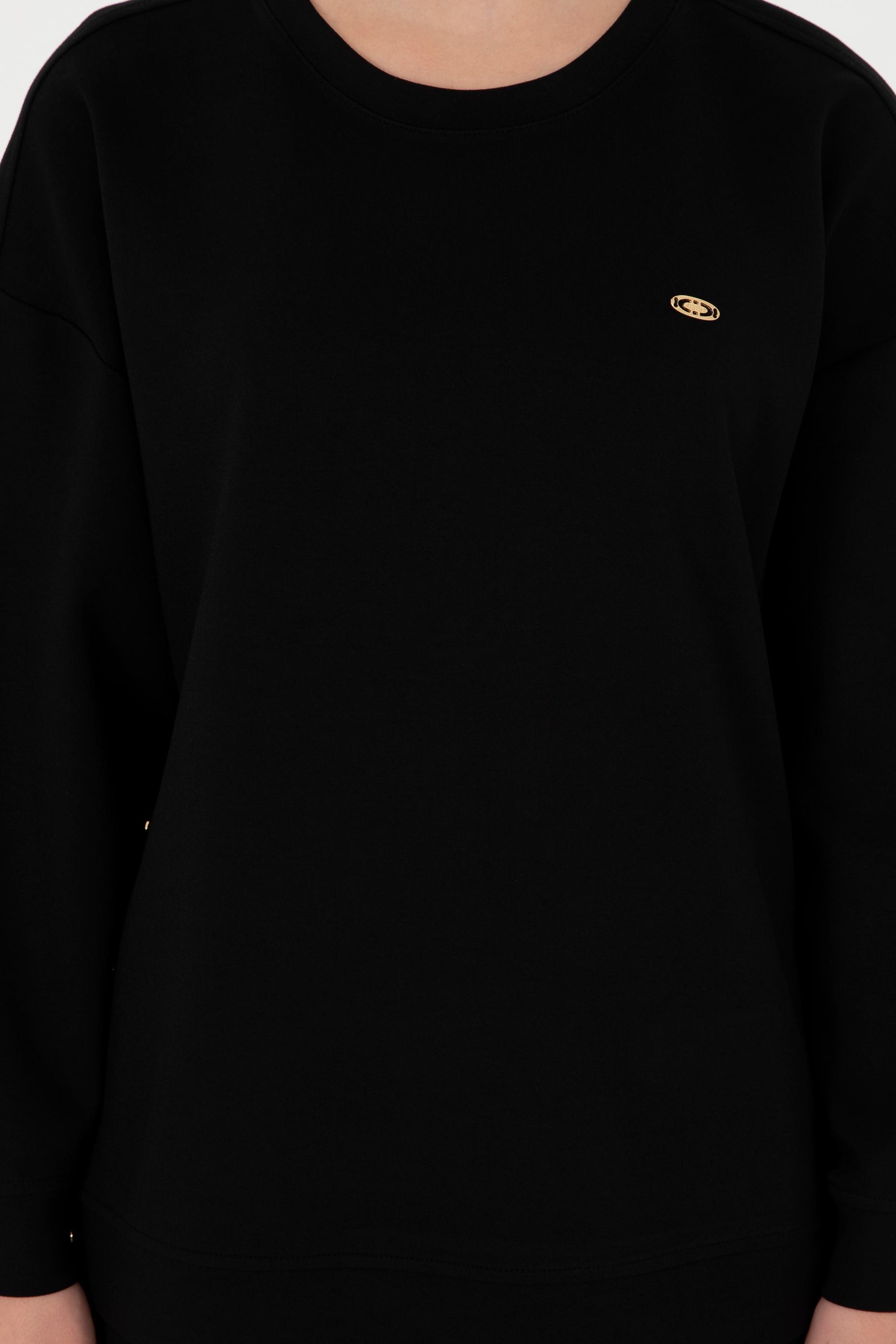 Kadın Siyah Bisiklet Yaka Sweatshirt