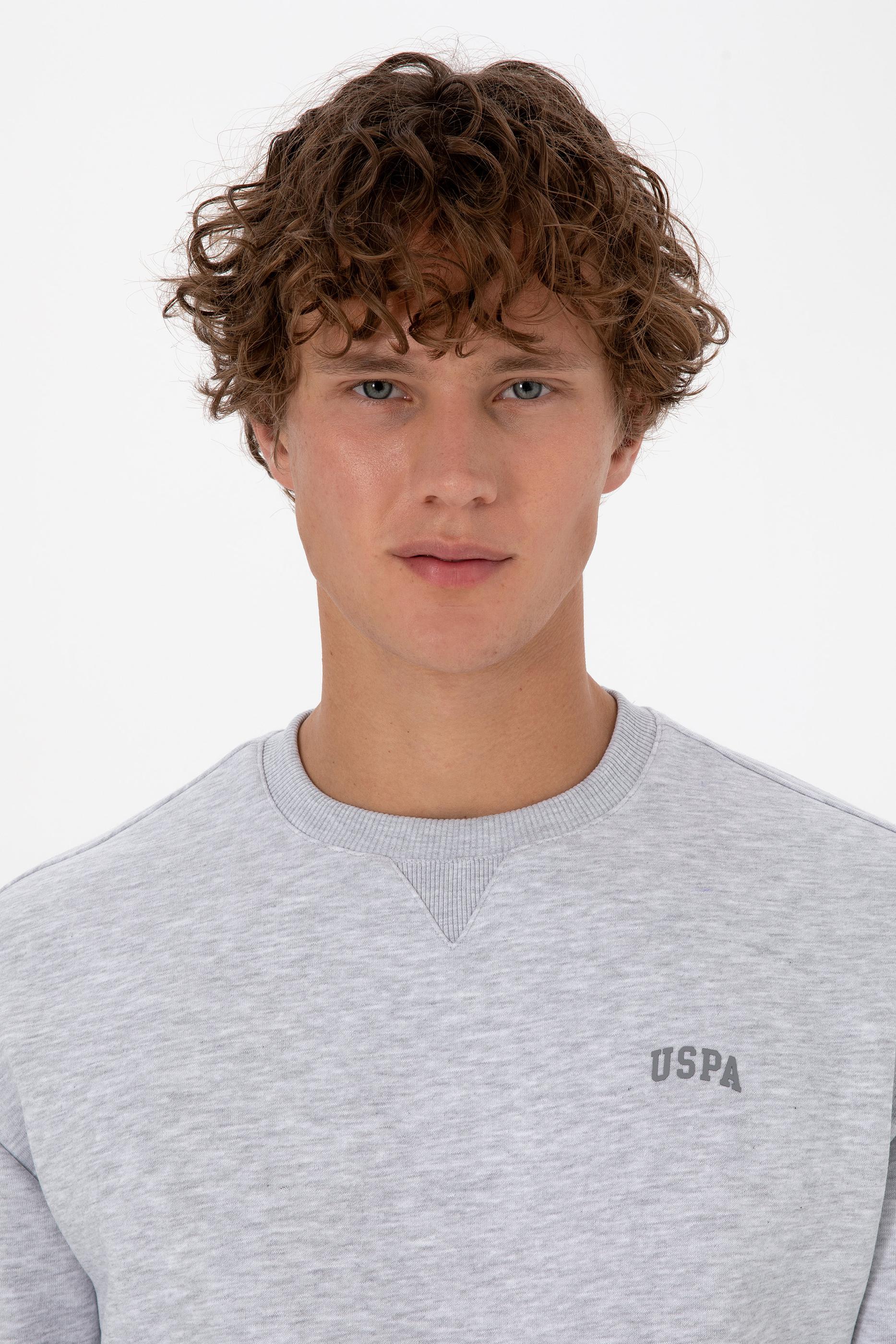 - Erkek Comfort Fit Bisiklet Yaka Şardonlu Açık Gri Basic Sweatshirt