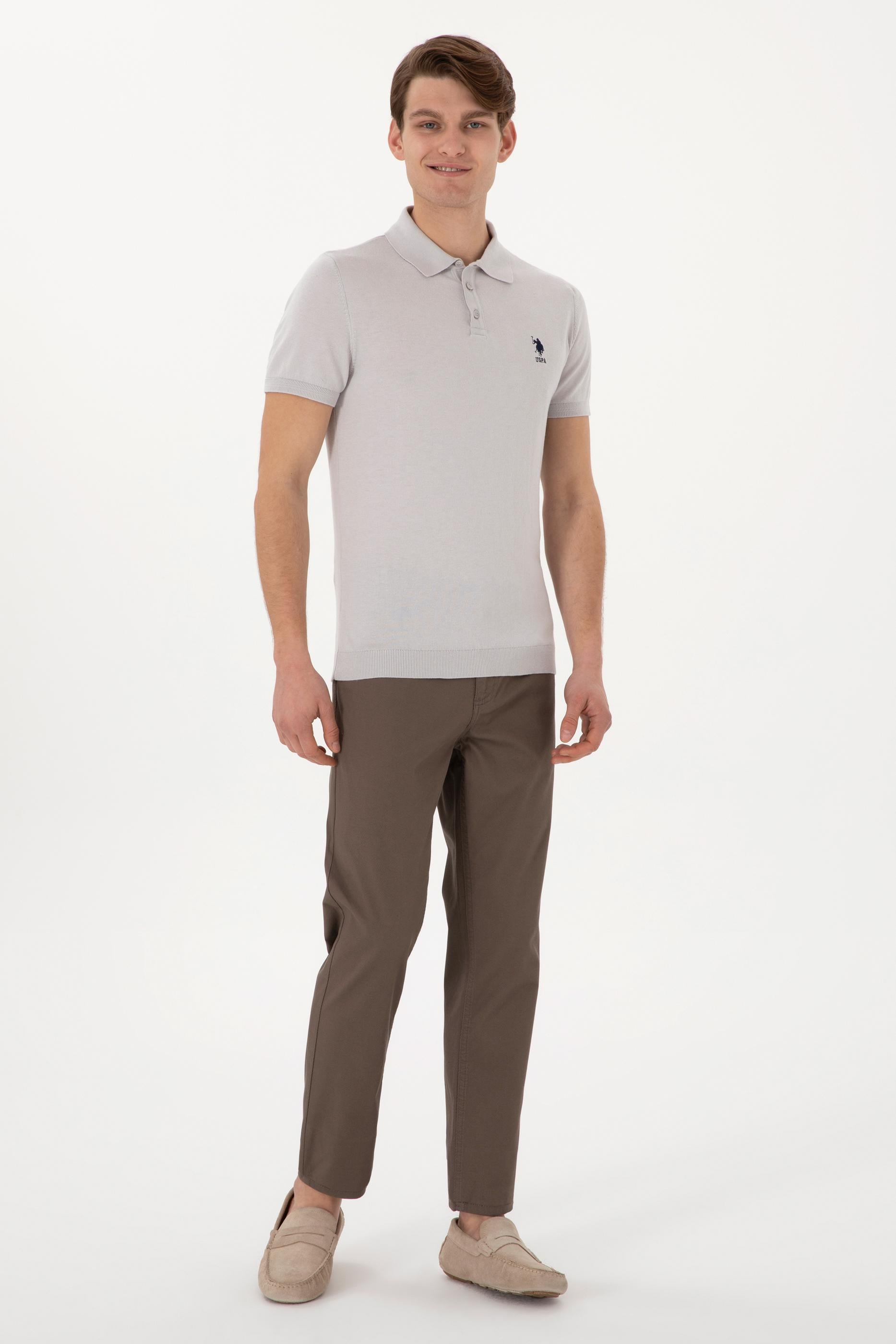 Erkek Slim Fit Polo Yaka Açık Gri Tişört