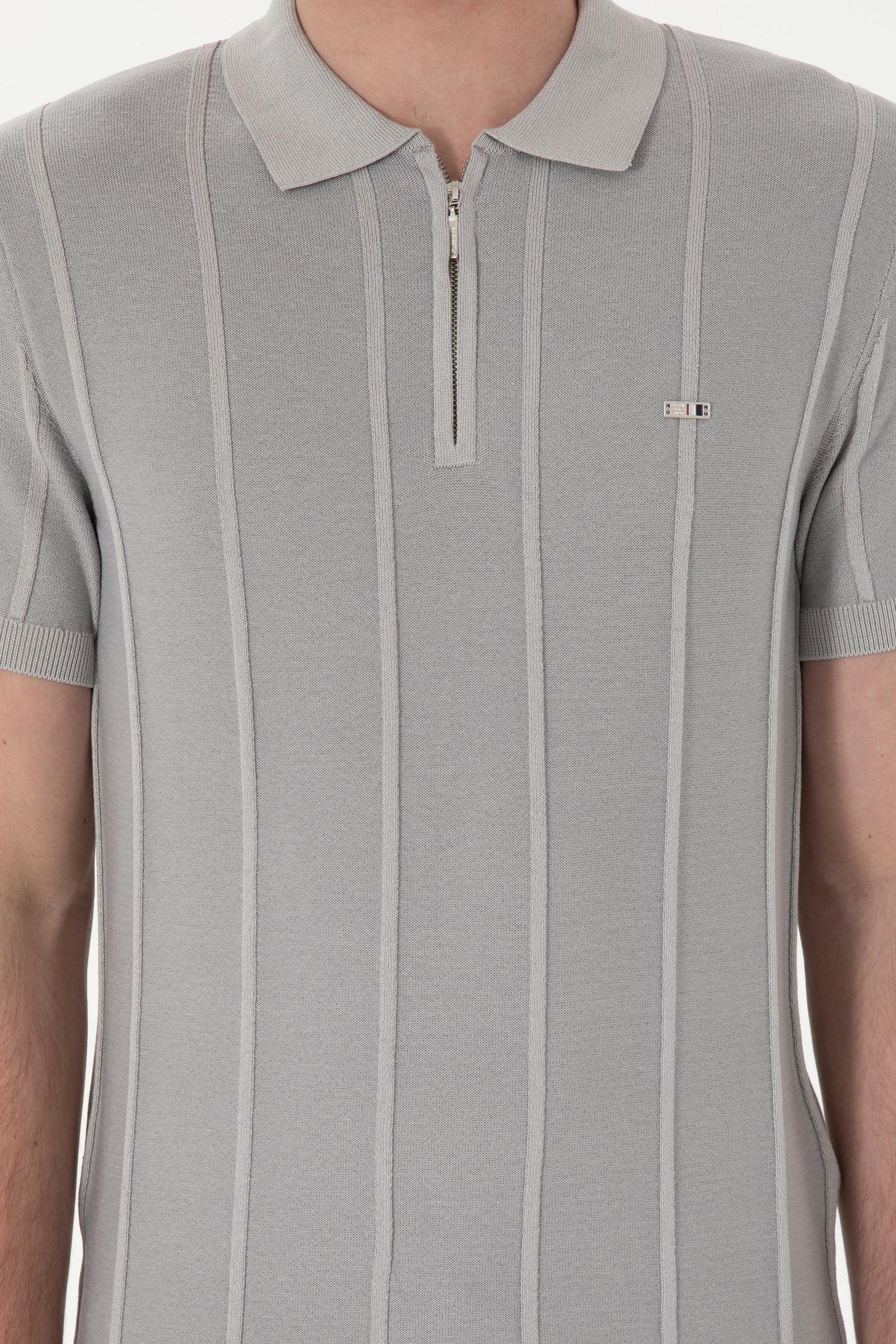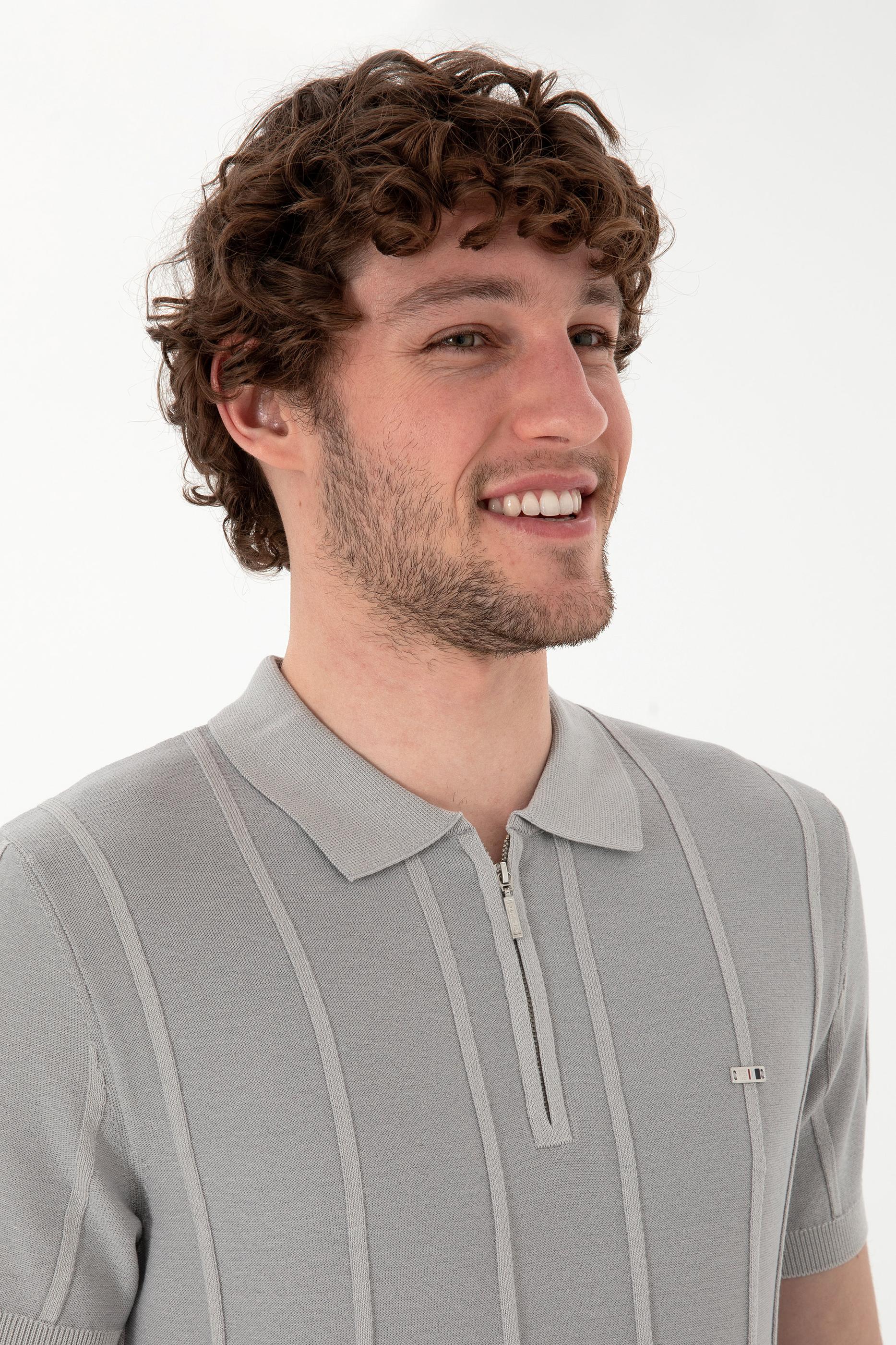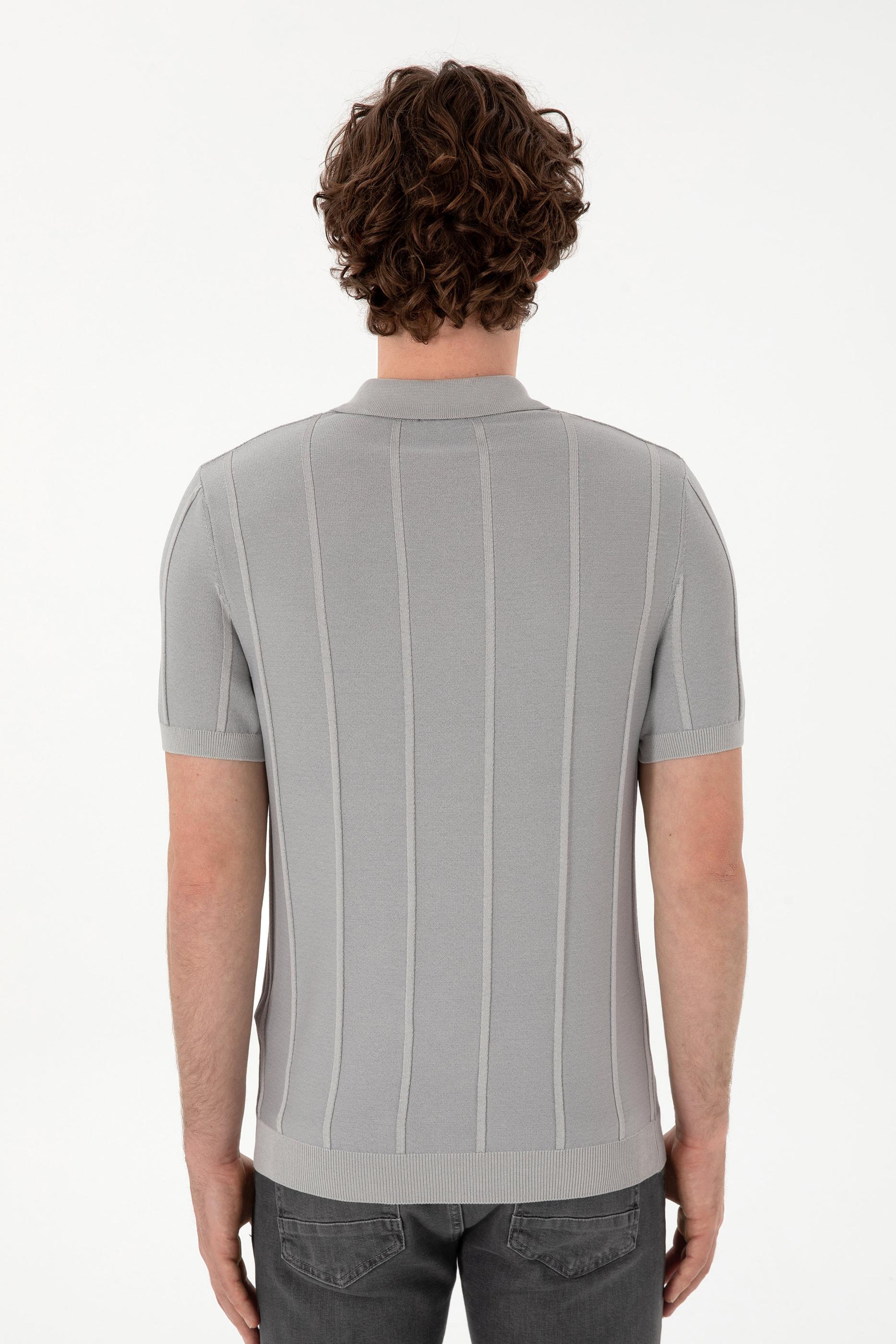 - Erkek Slim Fit Polo Yaka Açık Gri Tişört