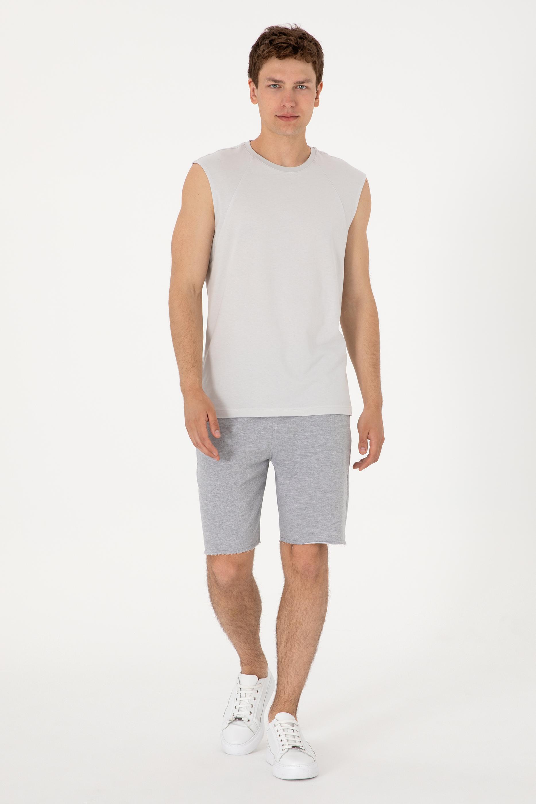- Erkek Regular Fit Bisiklet Yaka Açık Gri Kolsuz Tişört