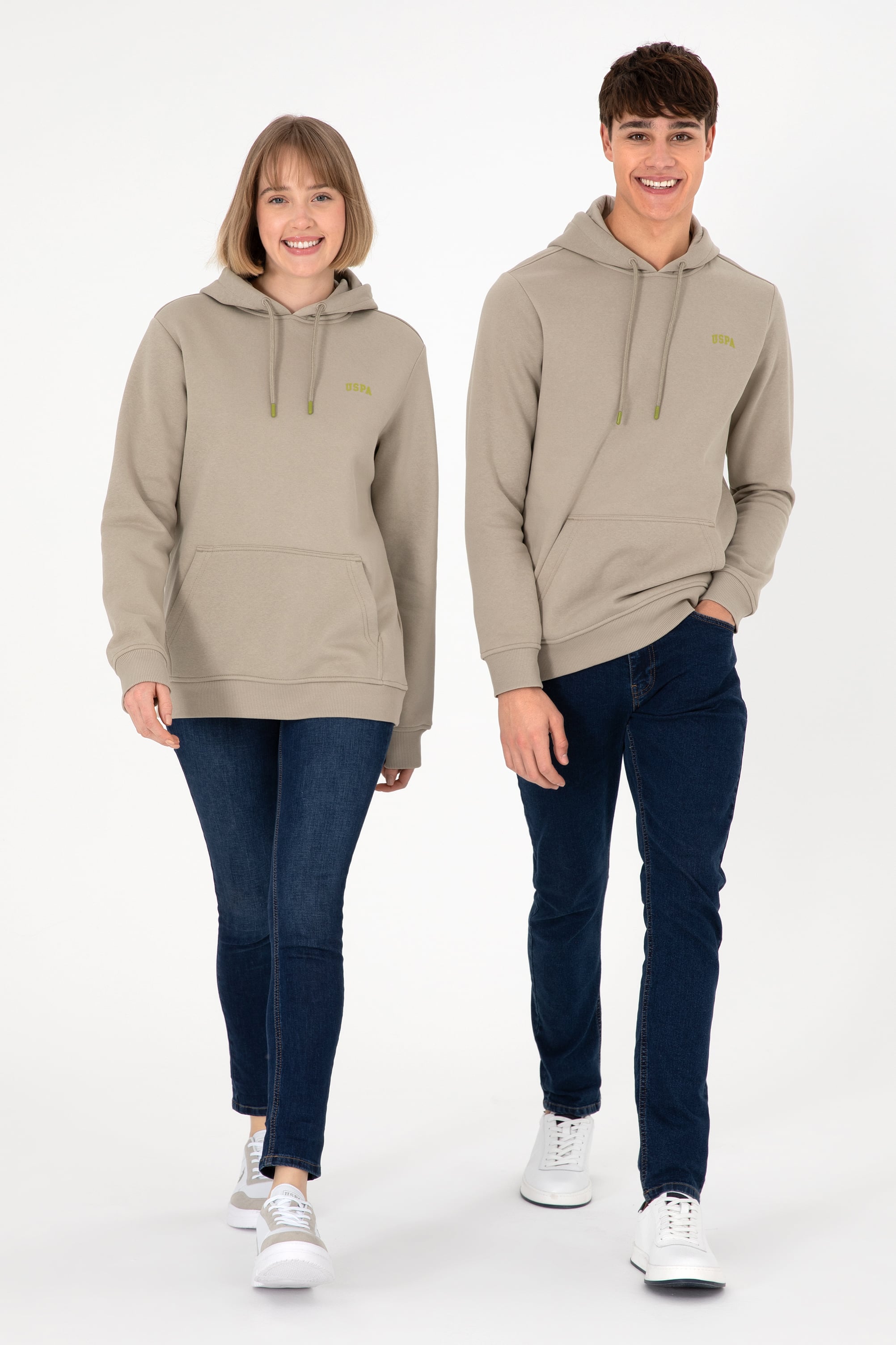 - Erkek Kapüşonlu Açık Haki Basic Şardonlu Sweatshirt