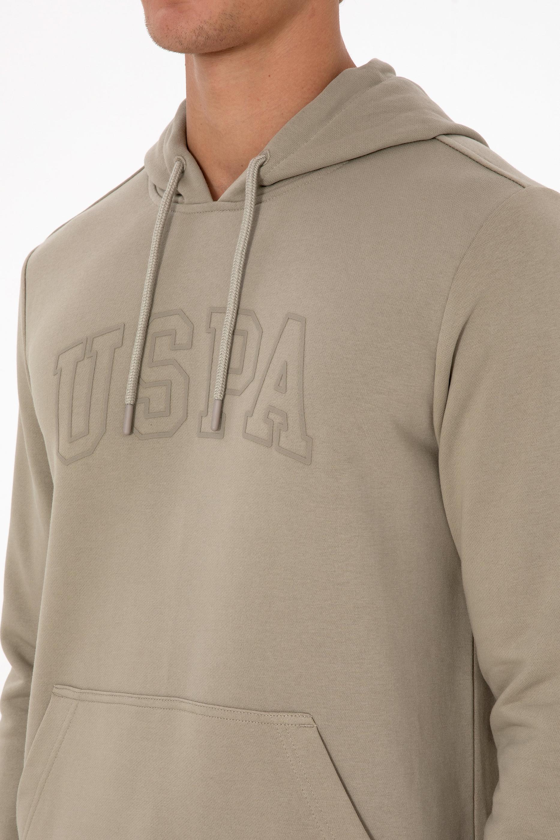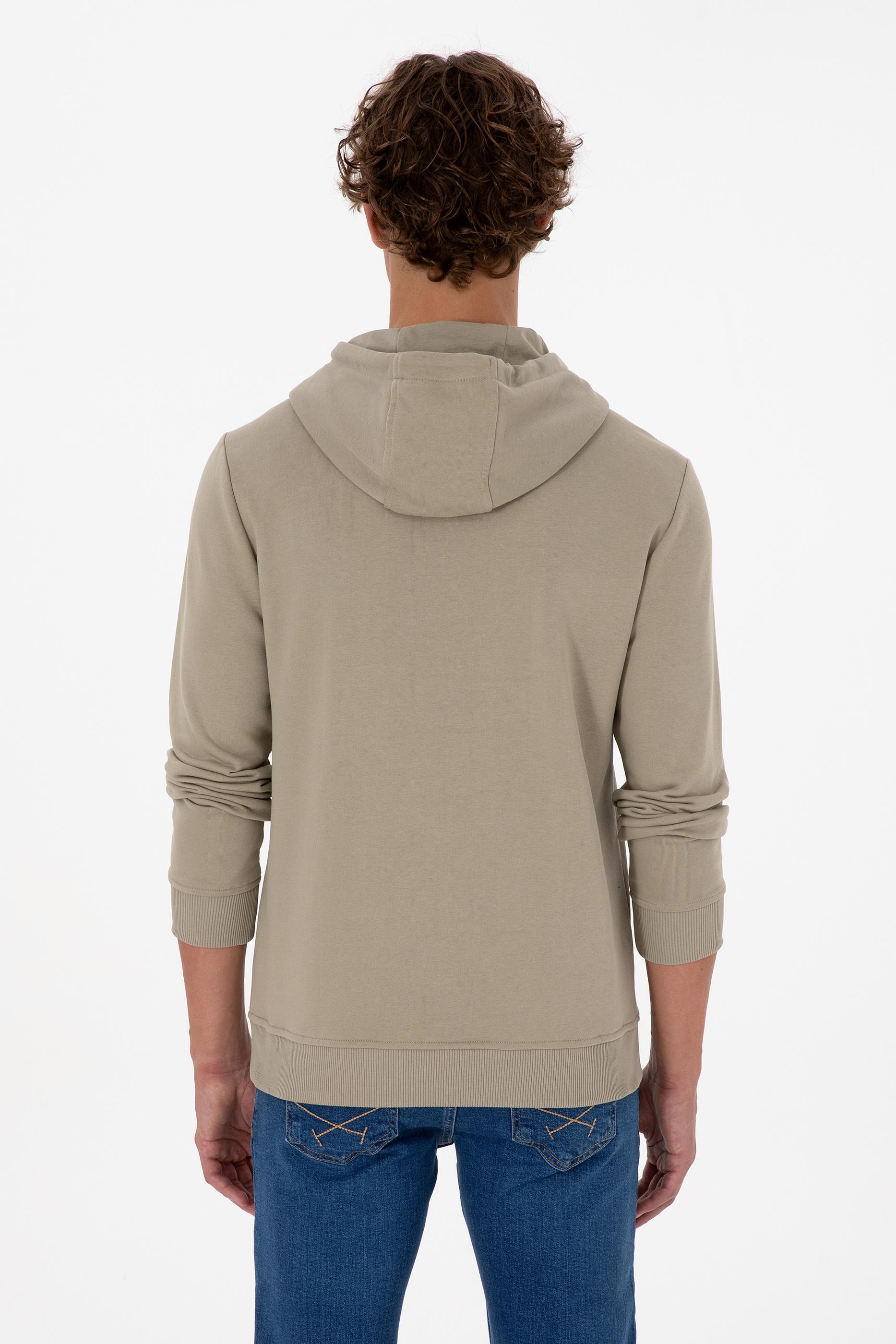 Erkek Regular Fit Kapüşonlu Açık Haki Basic Sweatshirt